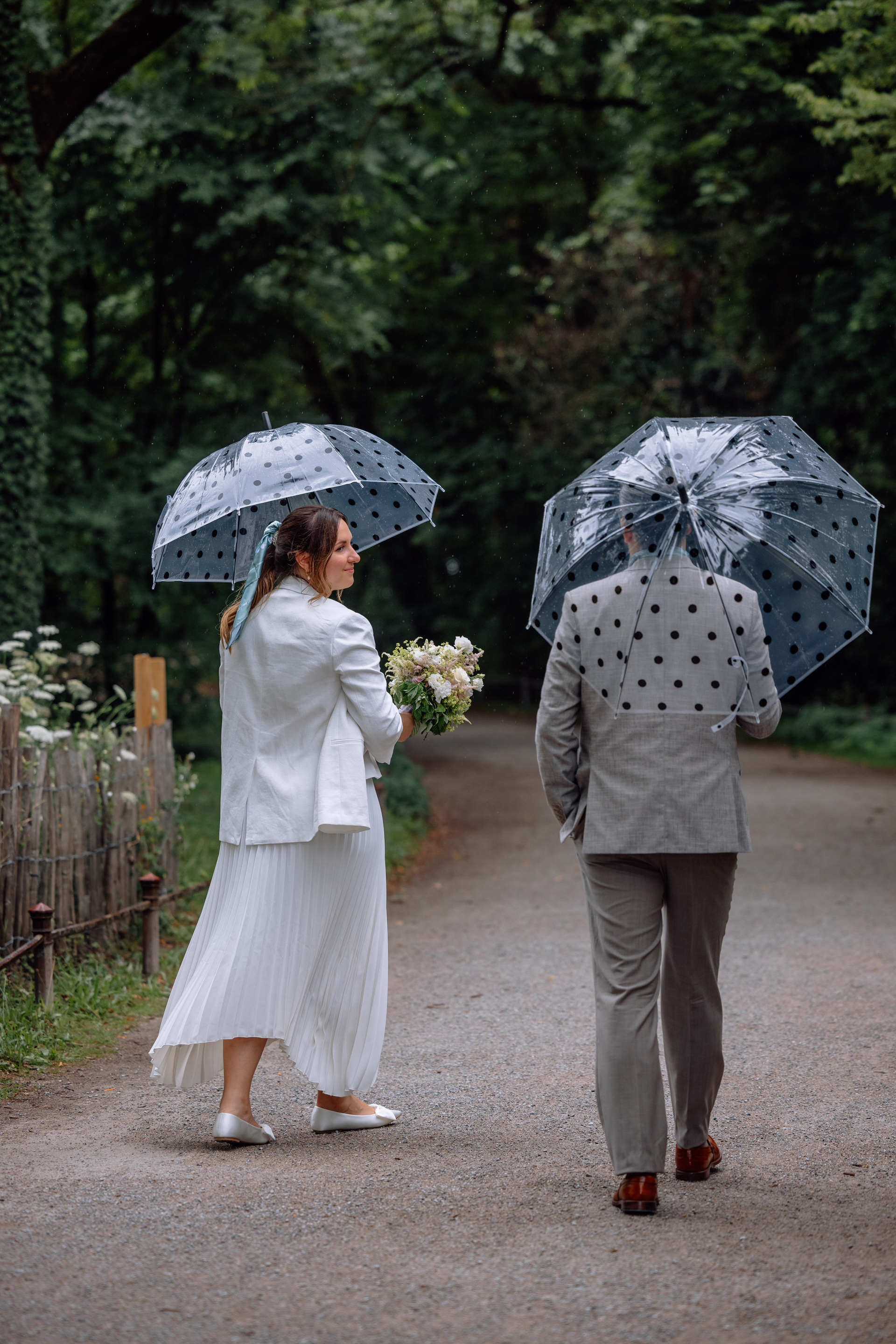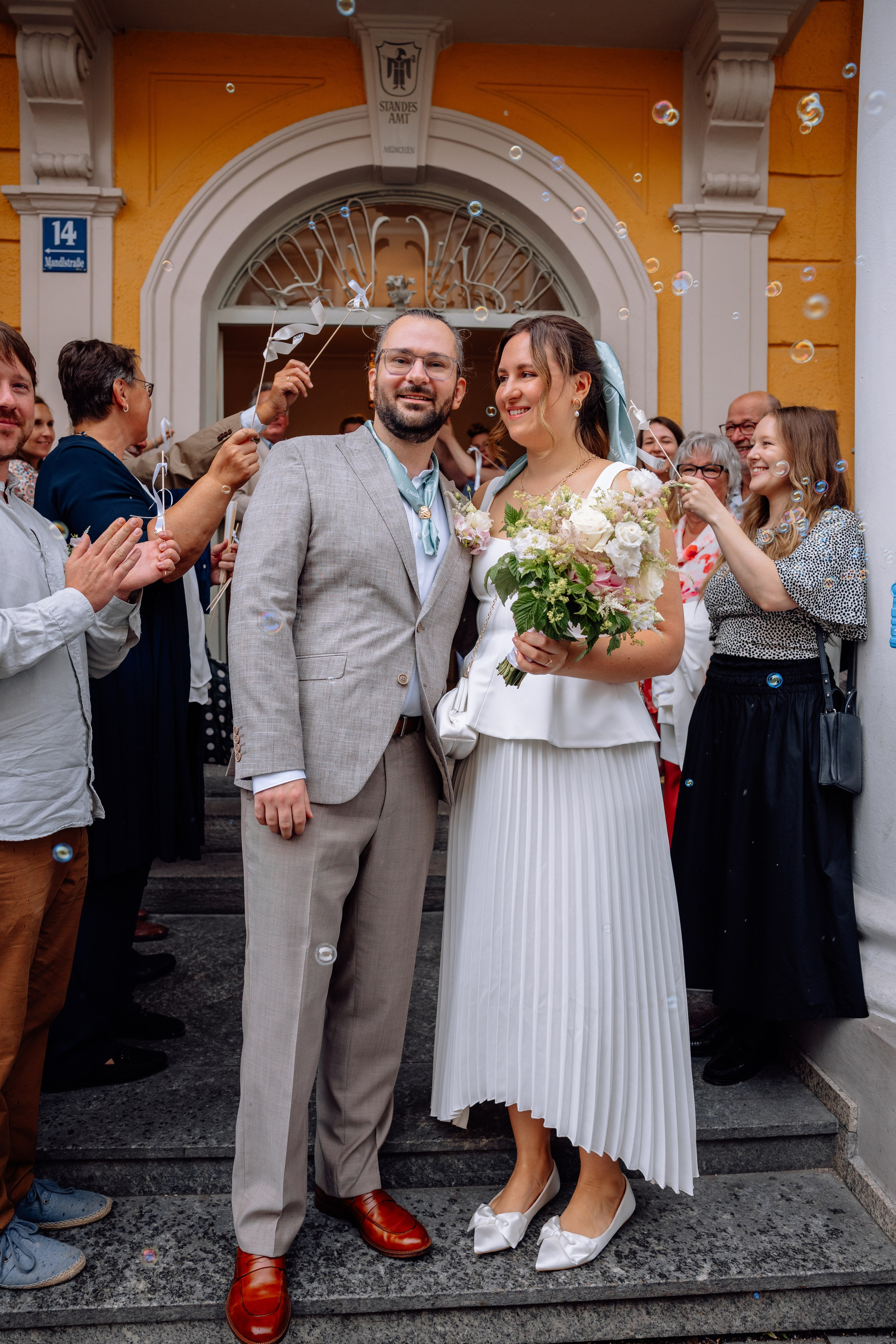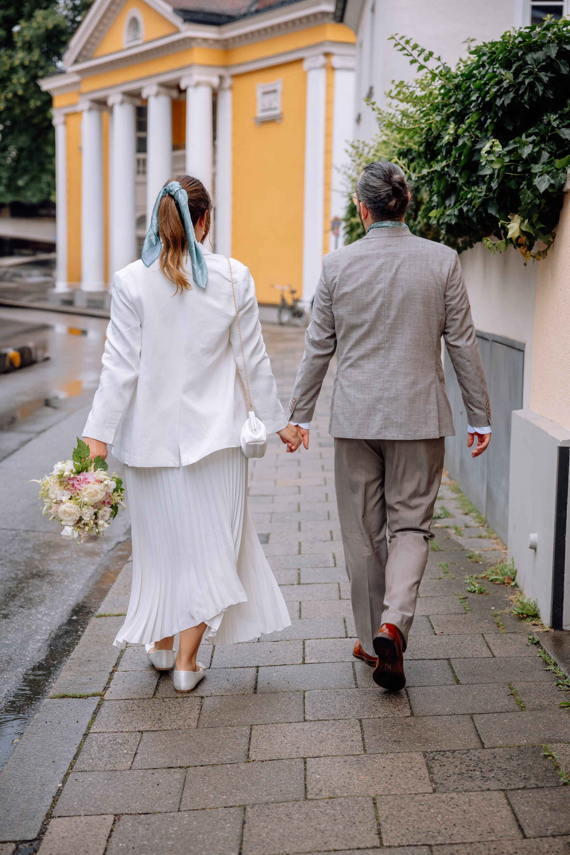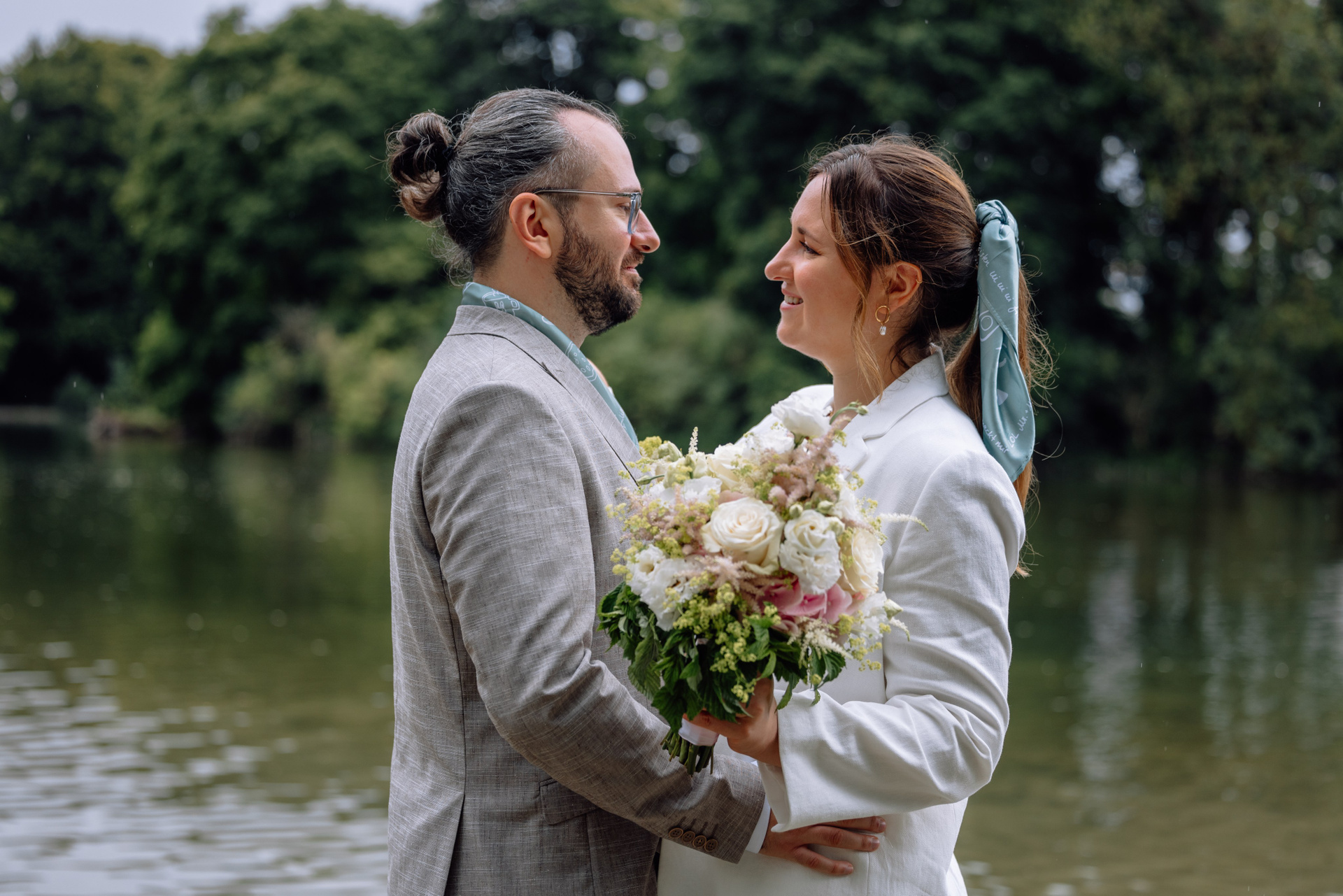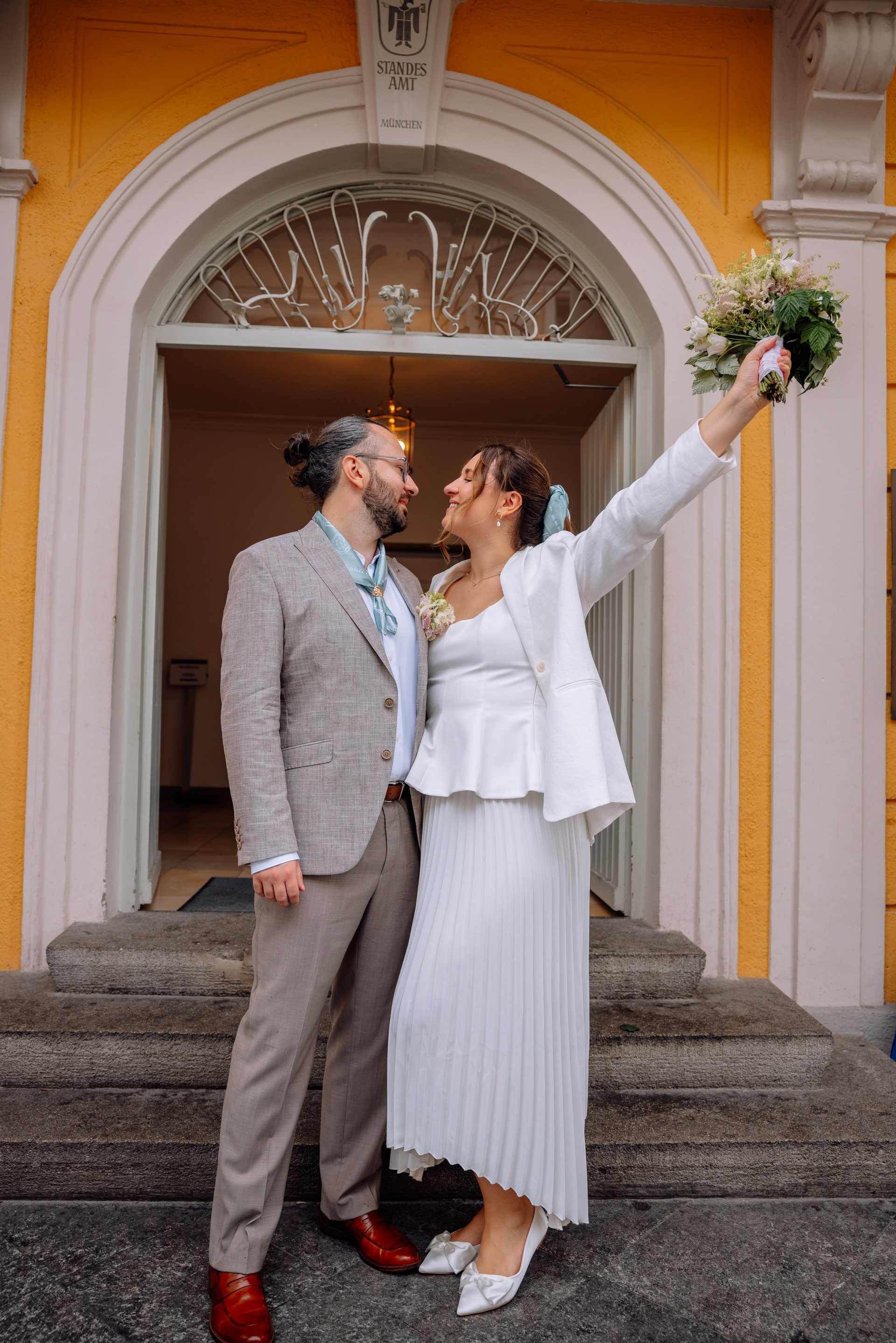 Ein leichter Sommerregen machte diese Trauung im Standesamt Mandlstraße in München noch romantischer. Das junge Brautpaar gab sich in Schwabing das Ja-Wort, bevor wir für Paarfotos in den Englischen Garten gingen. Dort entstanden natürliche Aufnahmen am idyllischen Bachlauf – authentische Hochzeitsbilder, die die besondere Stimmung dieses Tages einfangen.