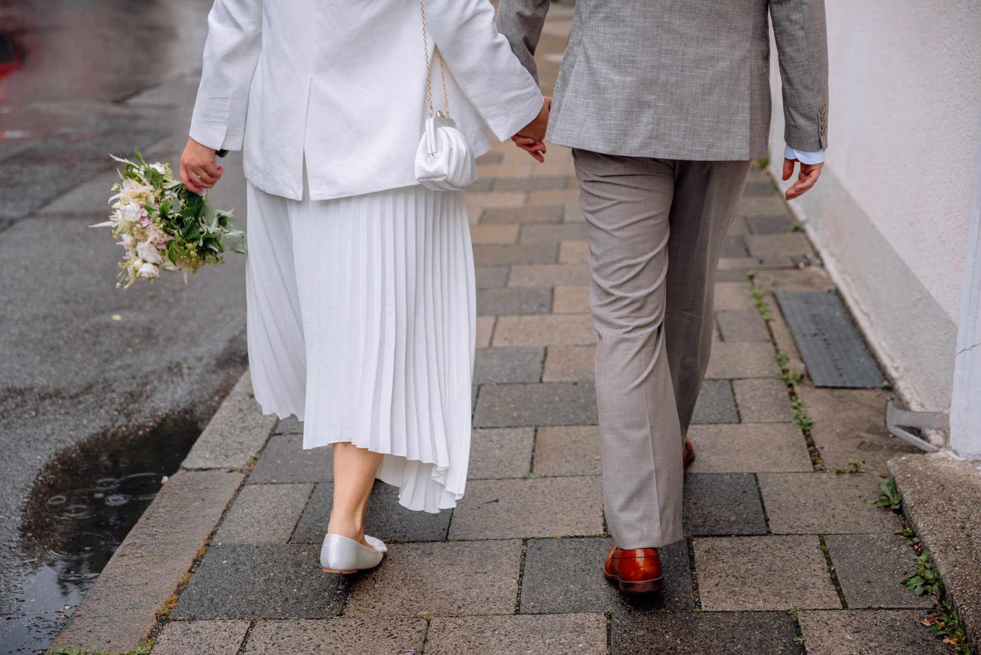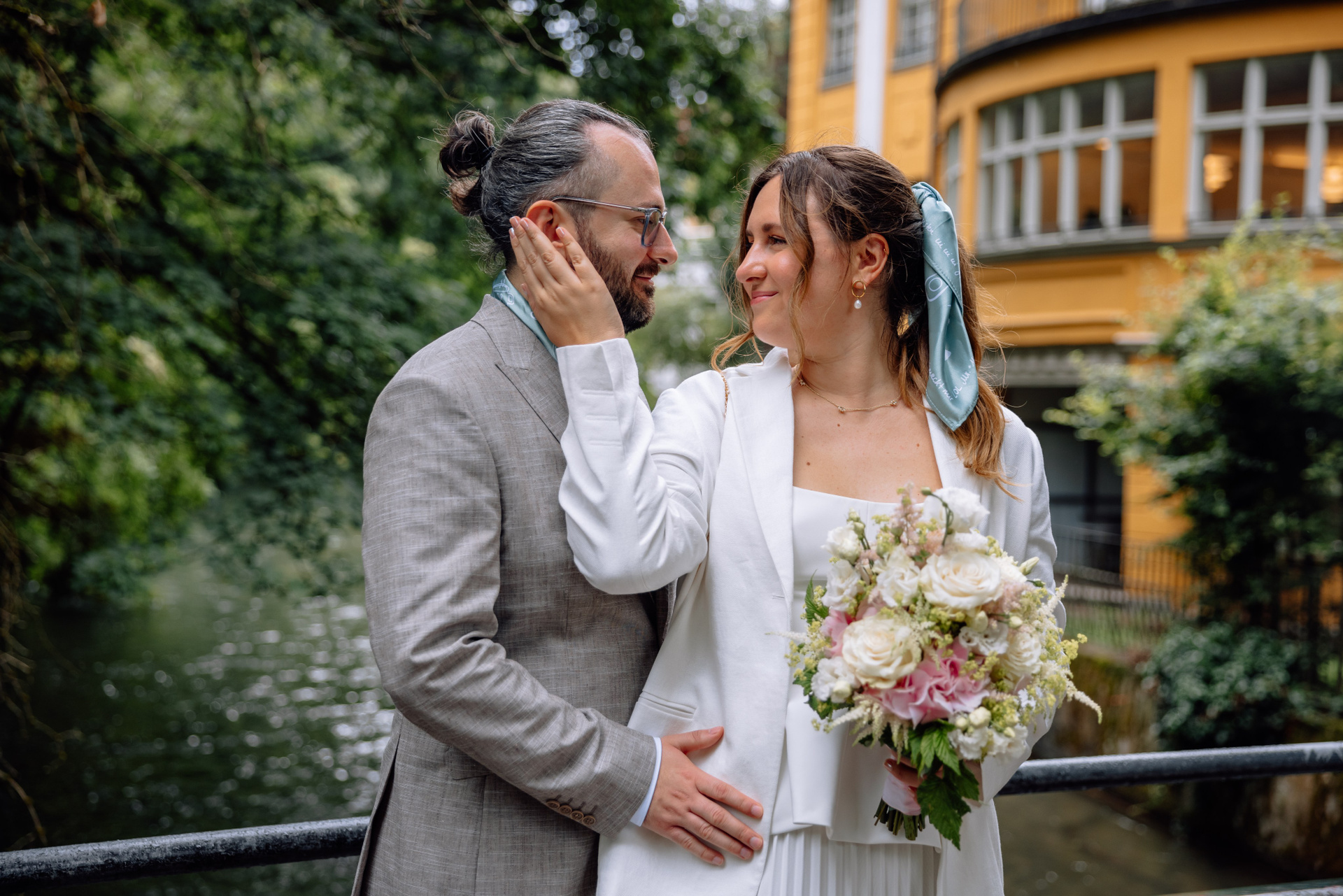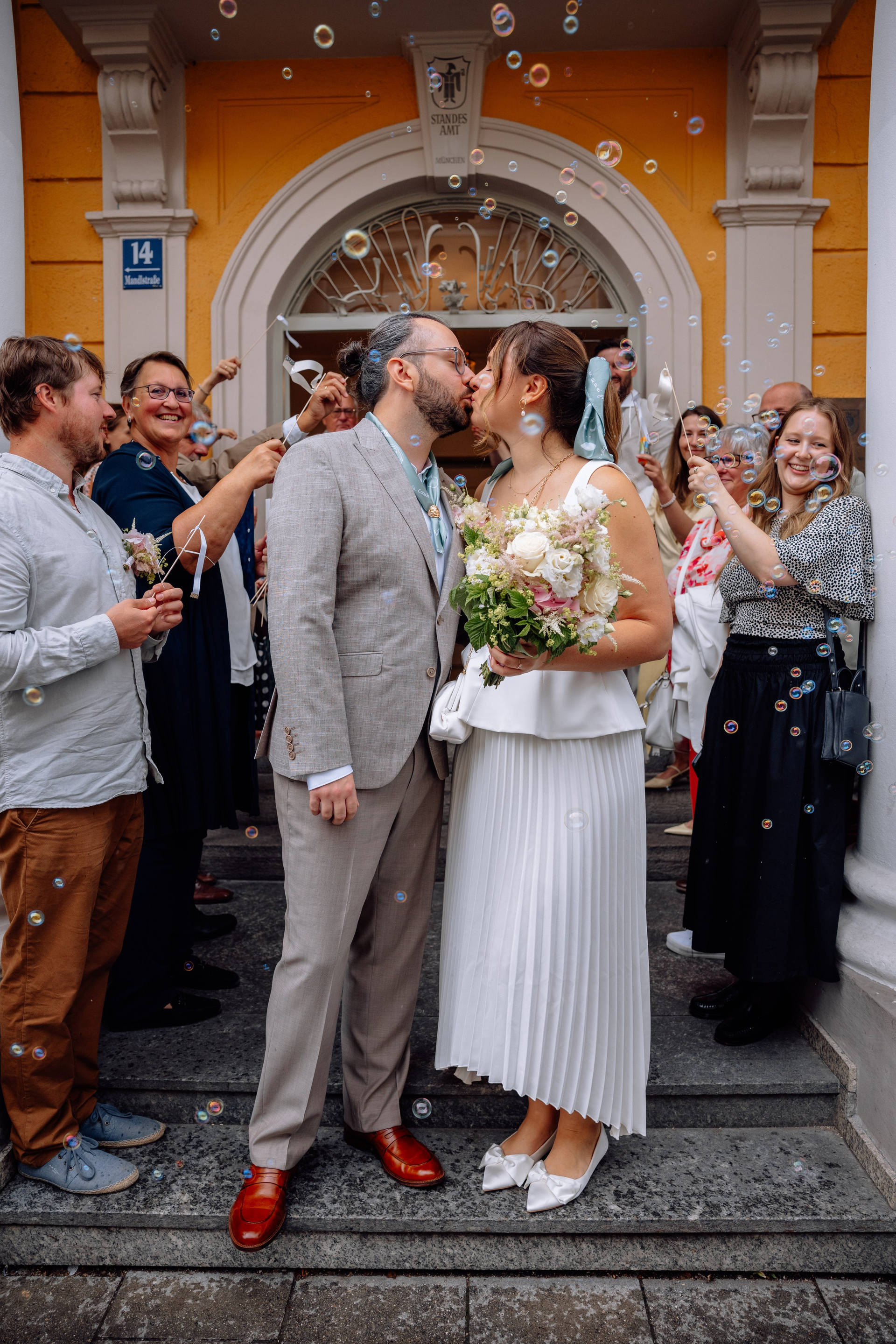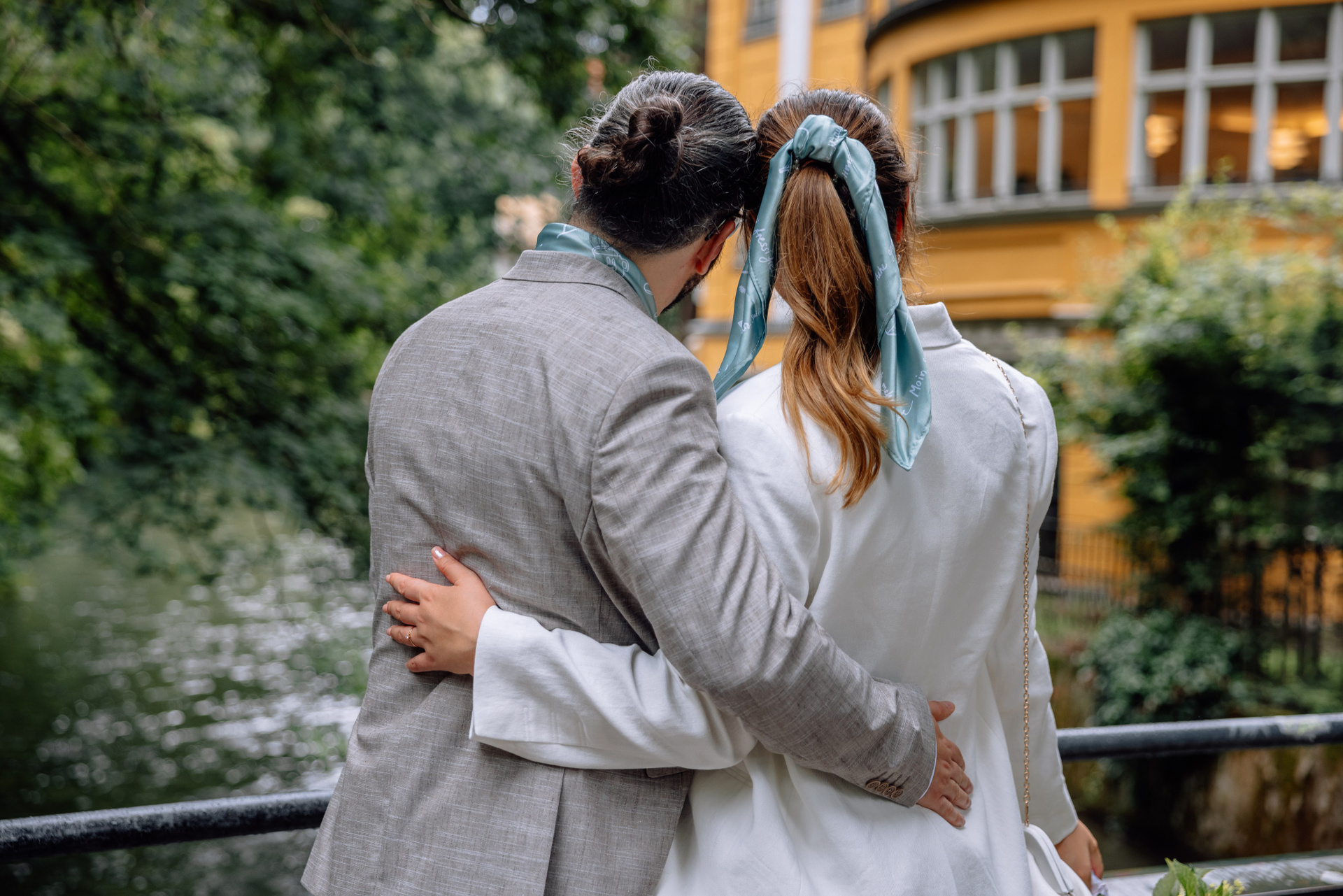 Ein leichter Sommerregen machte diese Trauung im Standesamt Mandlstraße in München noch romantischer. Das junge Brautpaar gab sich in Schwabing das Ja-Wort, bevor wir für Paarfotos in den Englischen Garten gingen. Dort entstanden natürliche Aufnahmen am idyllischen Bachlauf – authentische Hochzeitsbilder, die die besondere Stimmung dieses Tages einfangen.
