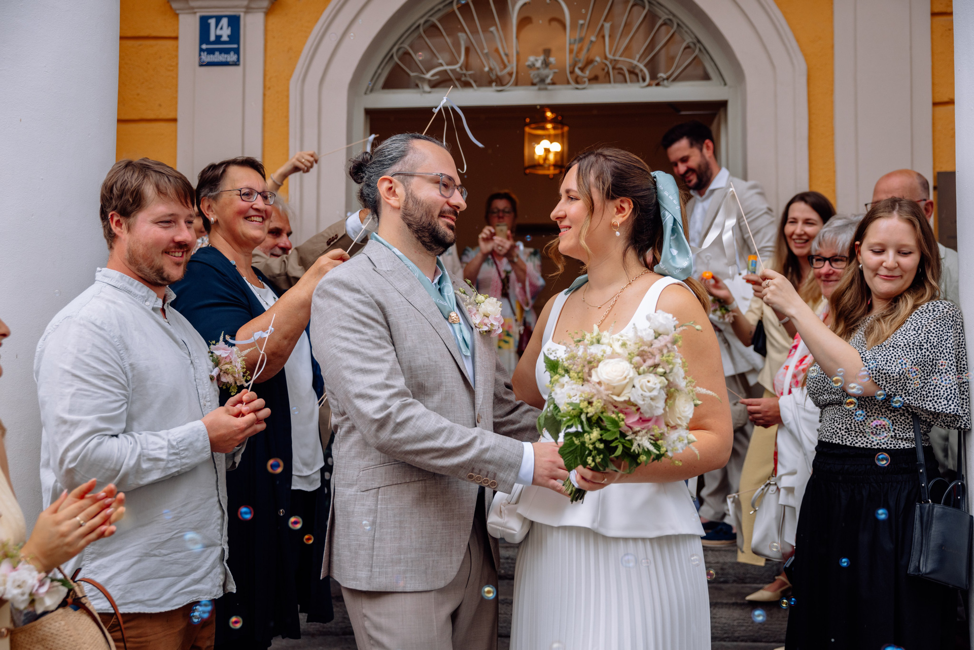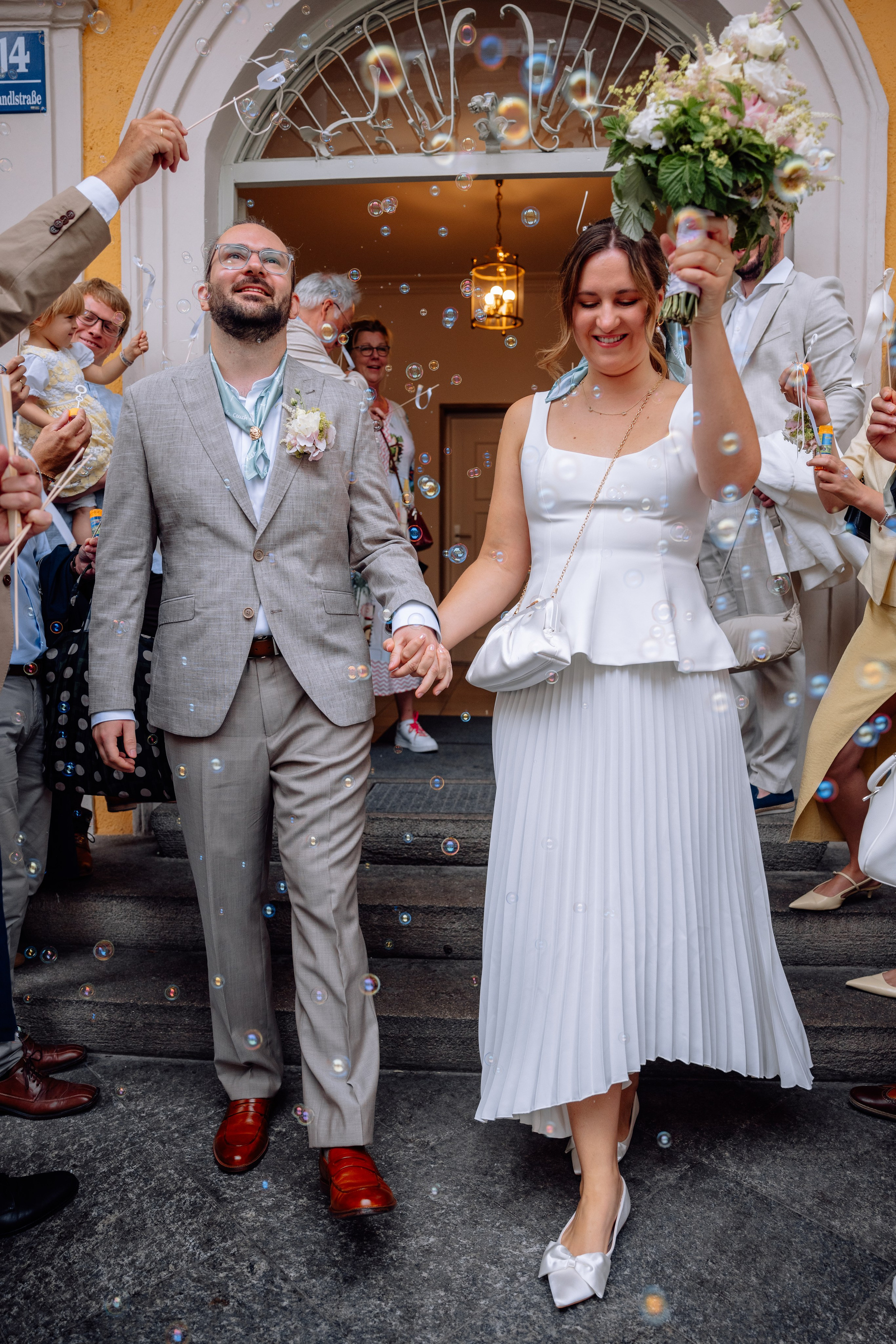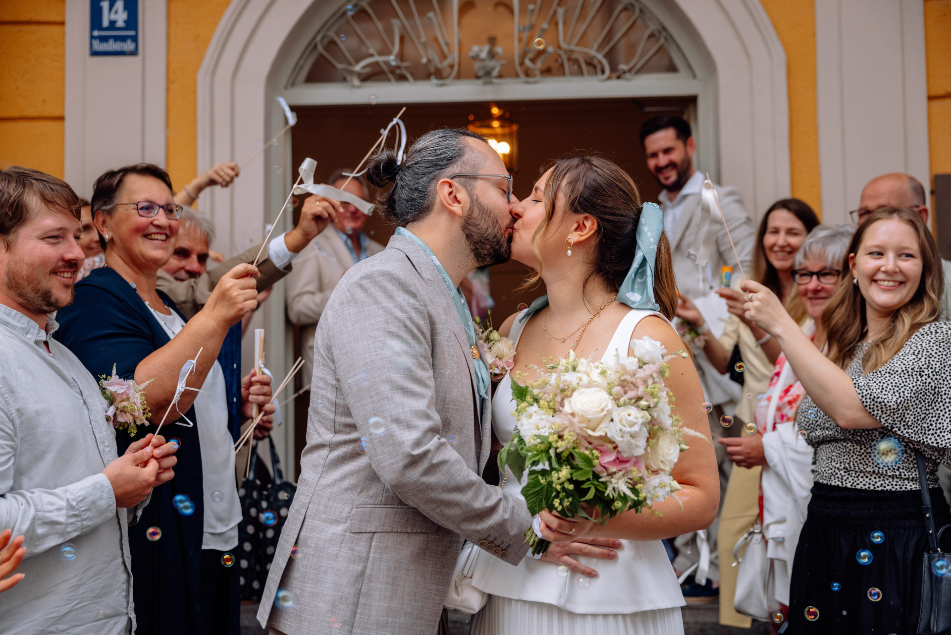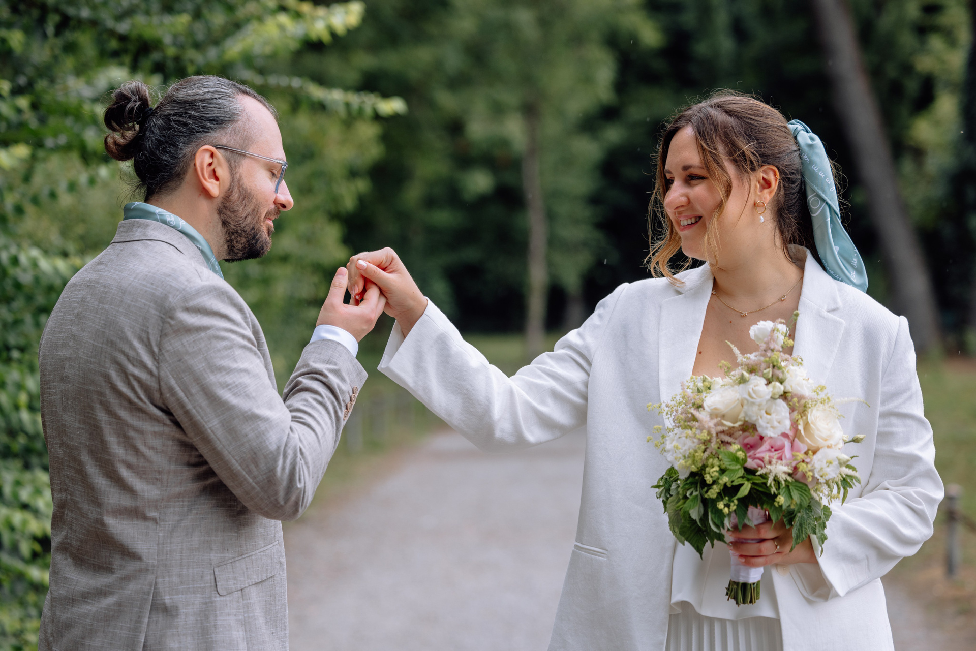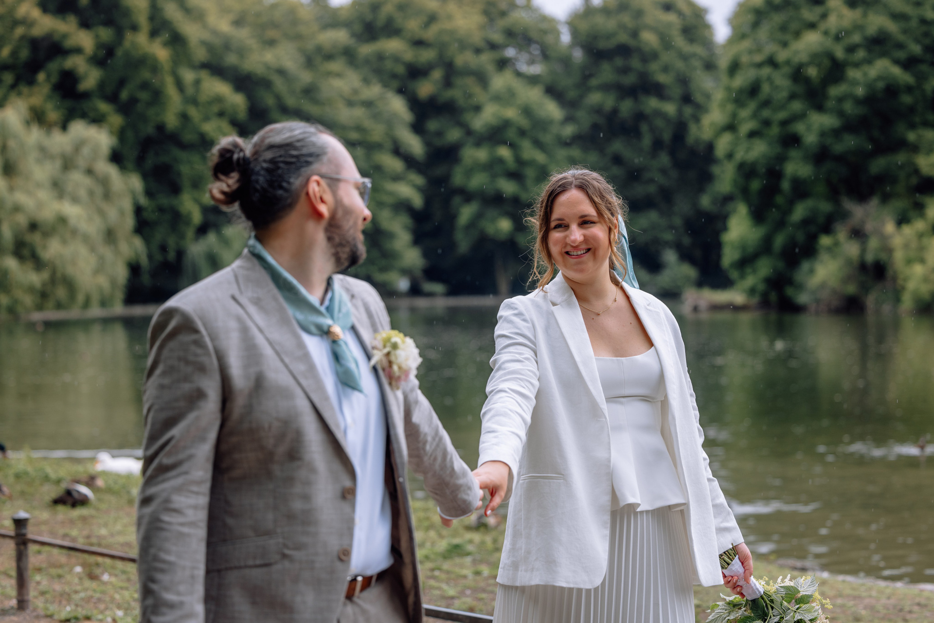 Ein leichter Sommerregen machte diese Trauung im Standesamt Mandlstraße in München noch romantischer. Das junge Brautpaar gab sich in Schwabing das Ja-Wort, bevor wir für Paarfotos in den Englischen Garten gingen. Dort entstanden natürliche Aufnahmen am idyllischen Bachlauf – authentische Hochzeitsbilder, die die besondere Stimmung dieses Tages einfangen.