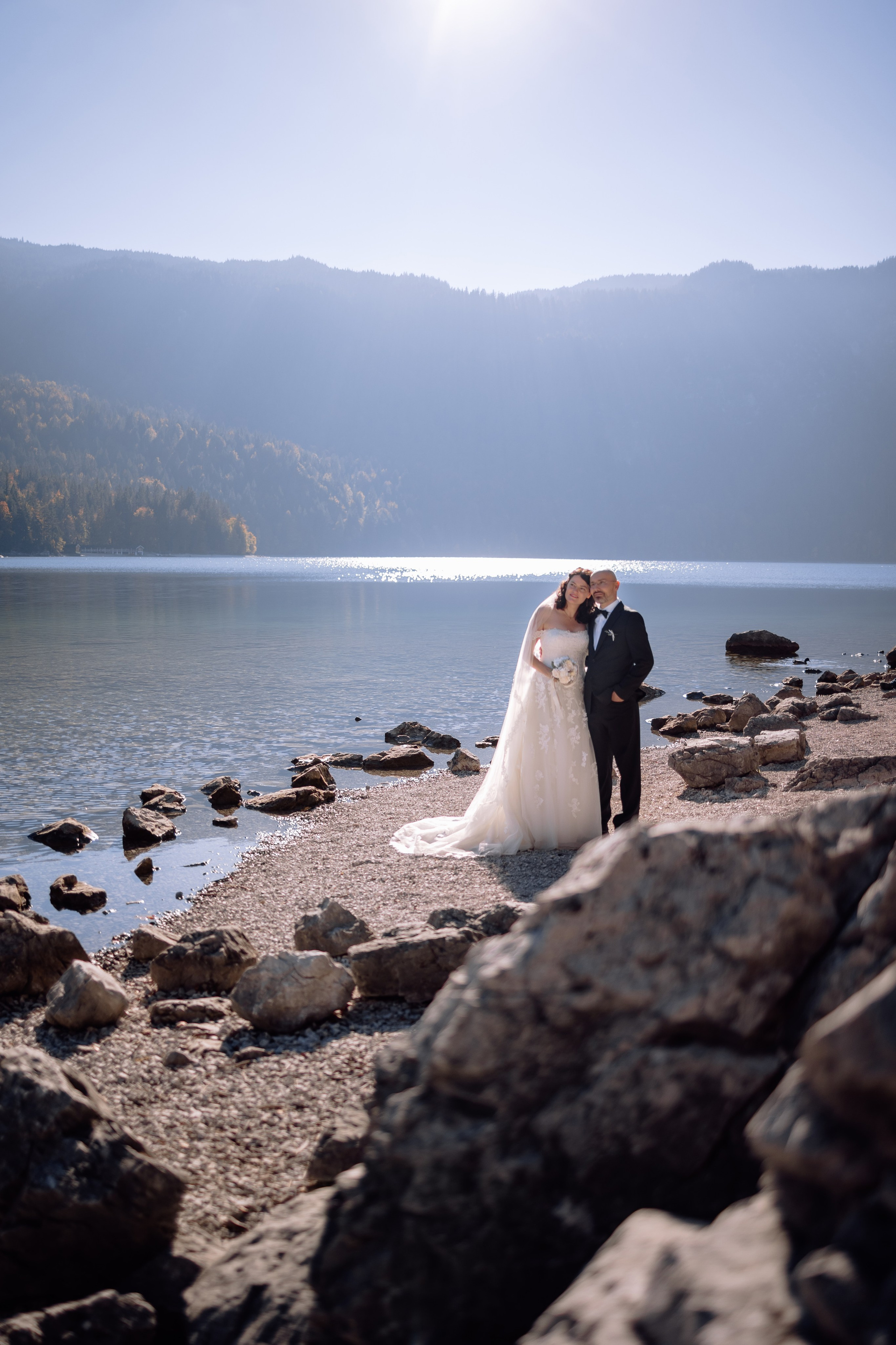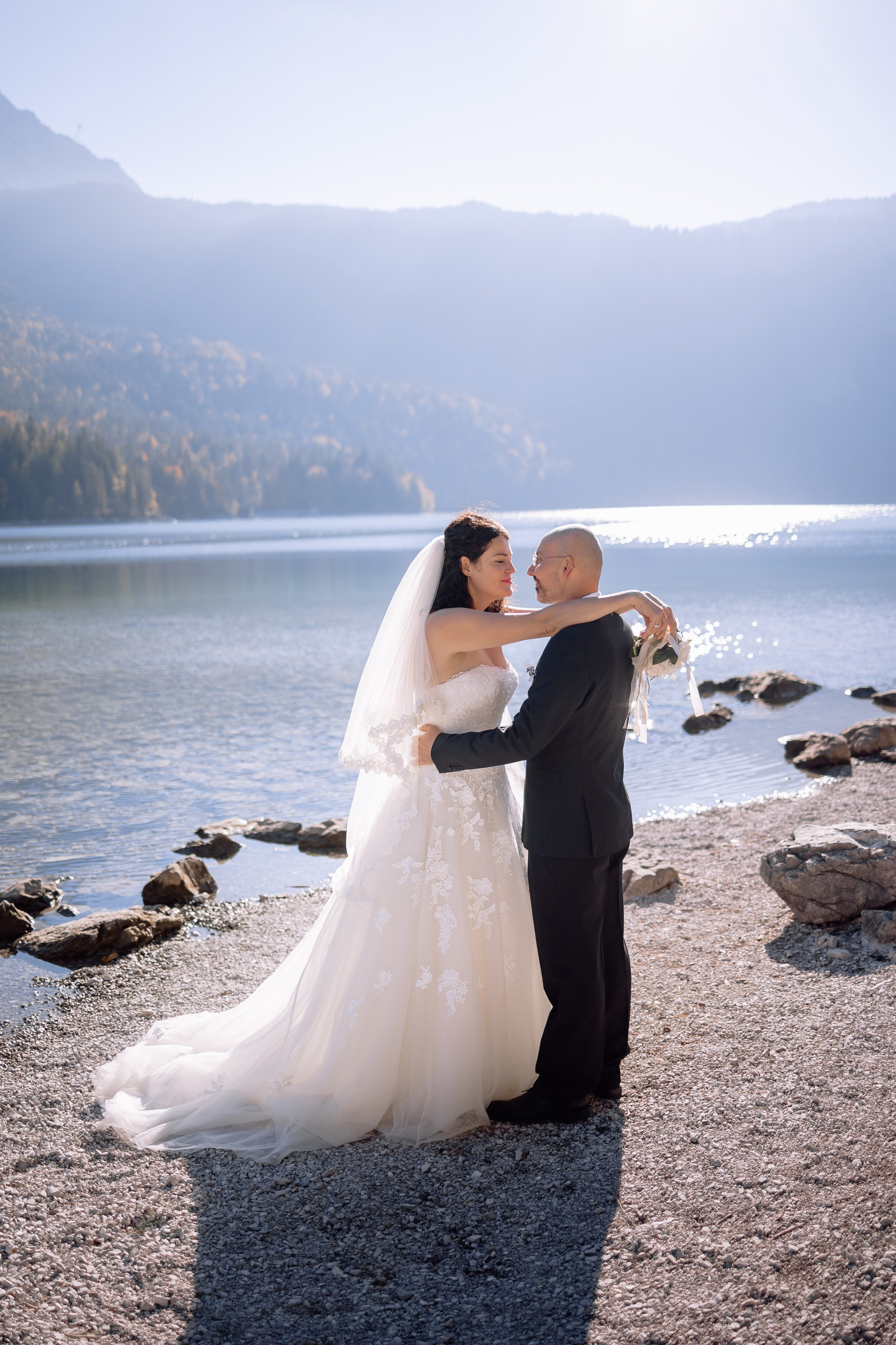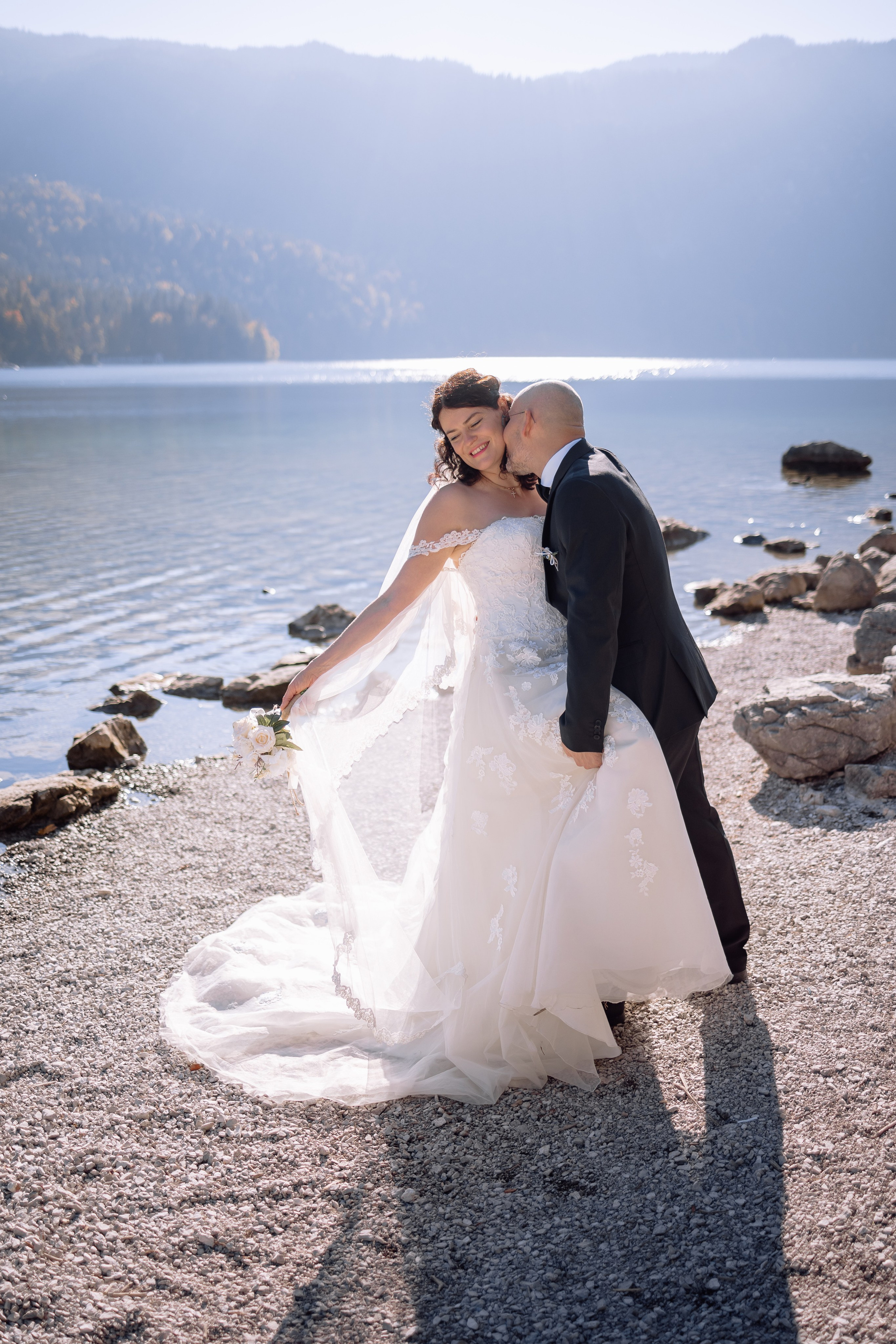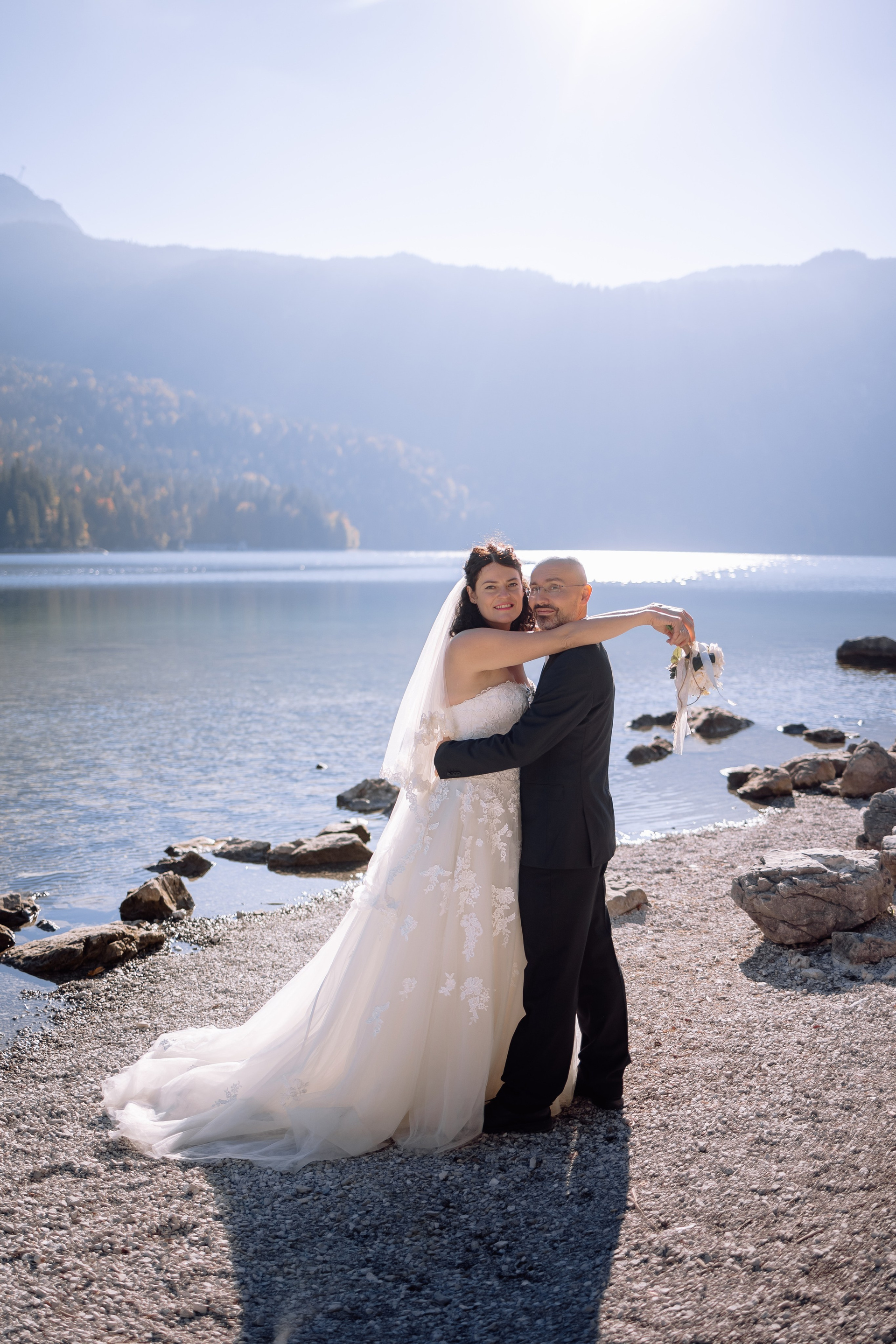 Diese Serie entstand am wunderschönen Eibsee, einem der beeindruckendsten Alpenseen in den Bayerischen Alpen. Kristallklares Wasser und majestätische Berglandschaften machen den Eibsee zur perfekten Kulisse für Hochzeitsfotos, die eure Liebe authentisch einfangen.