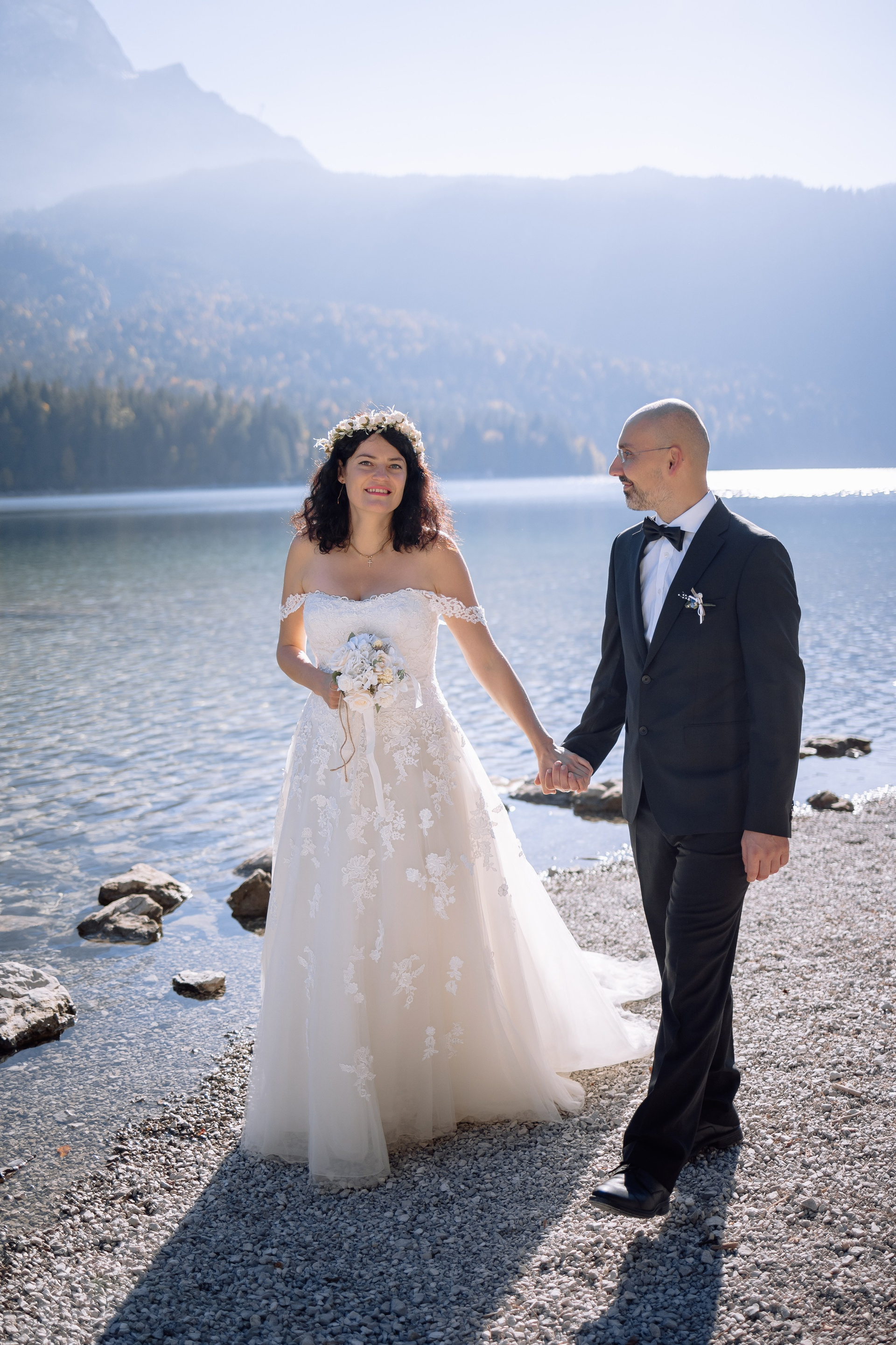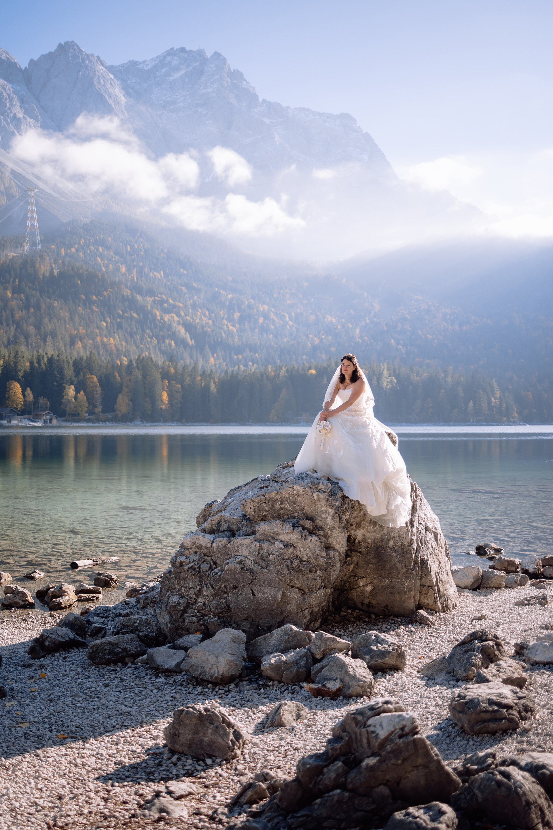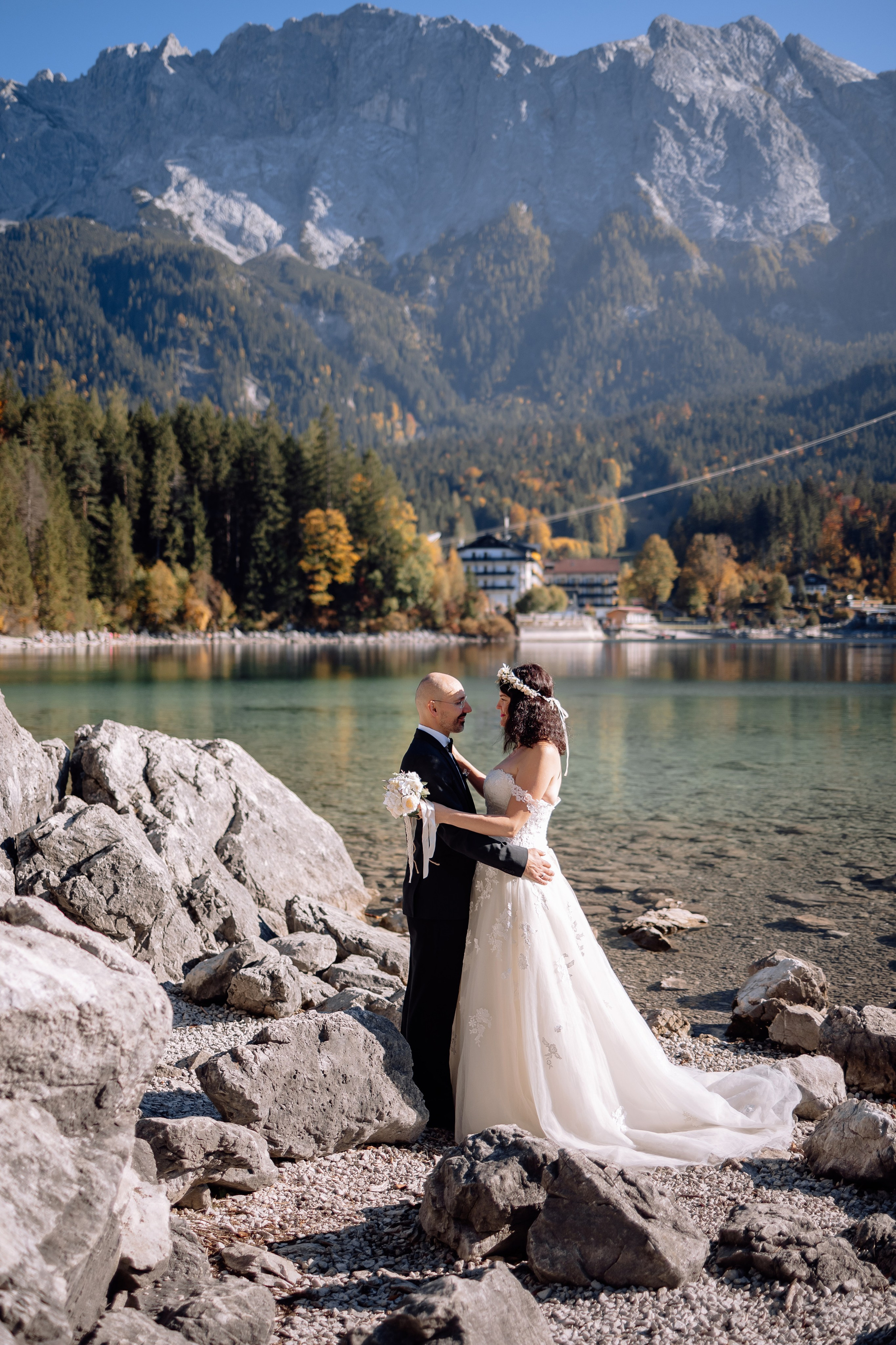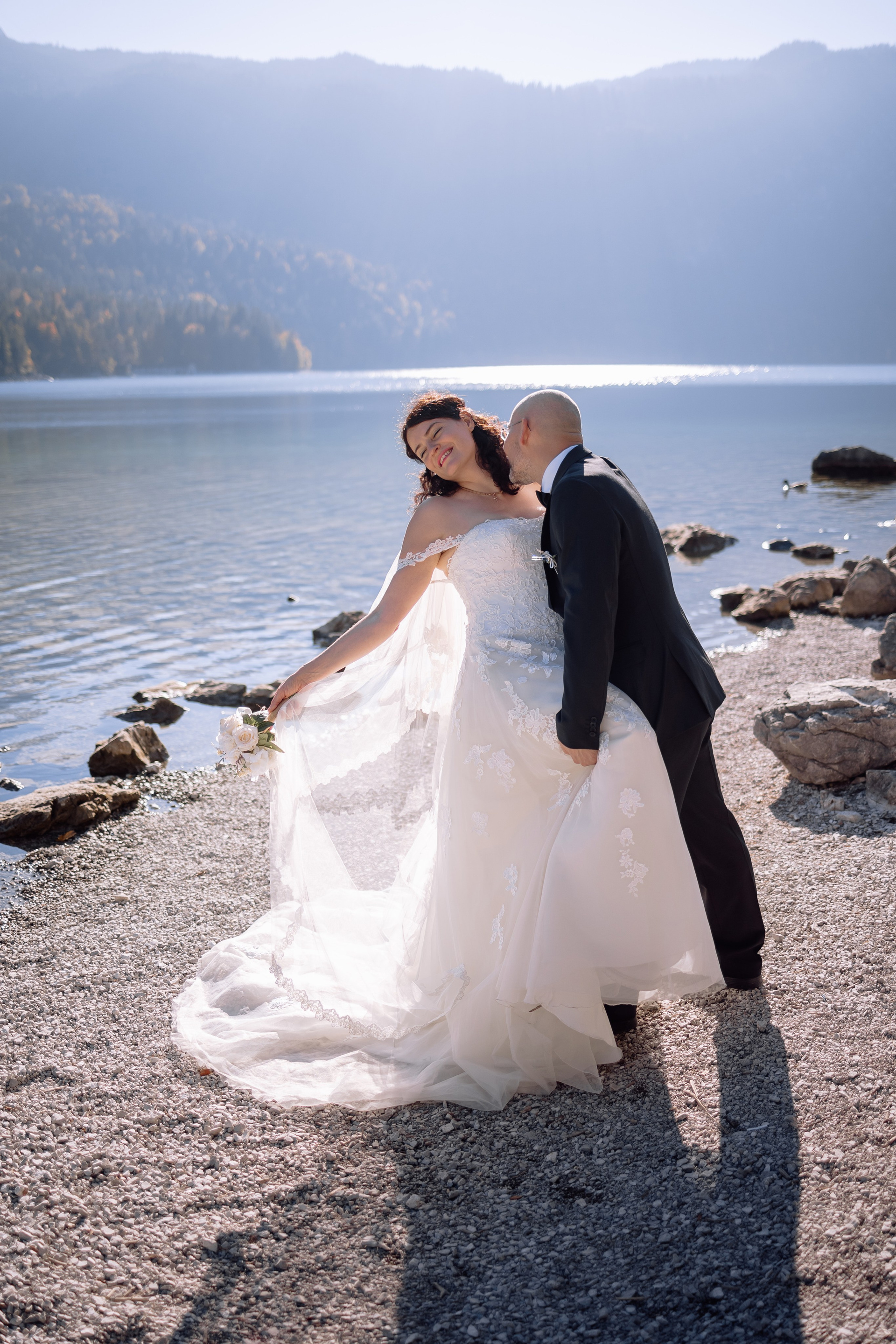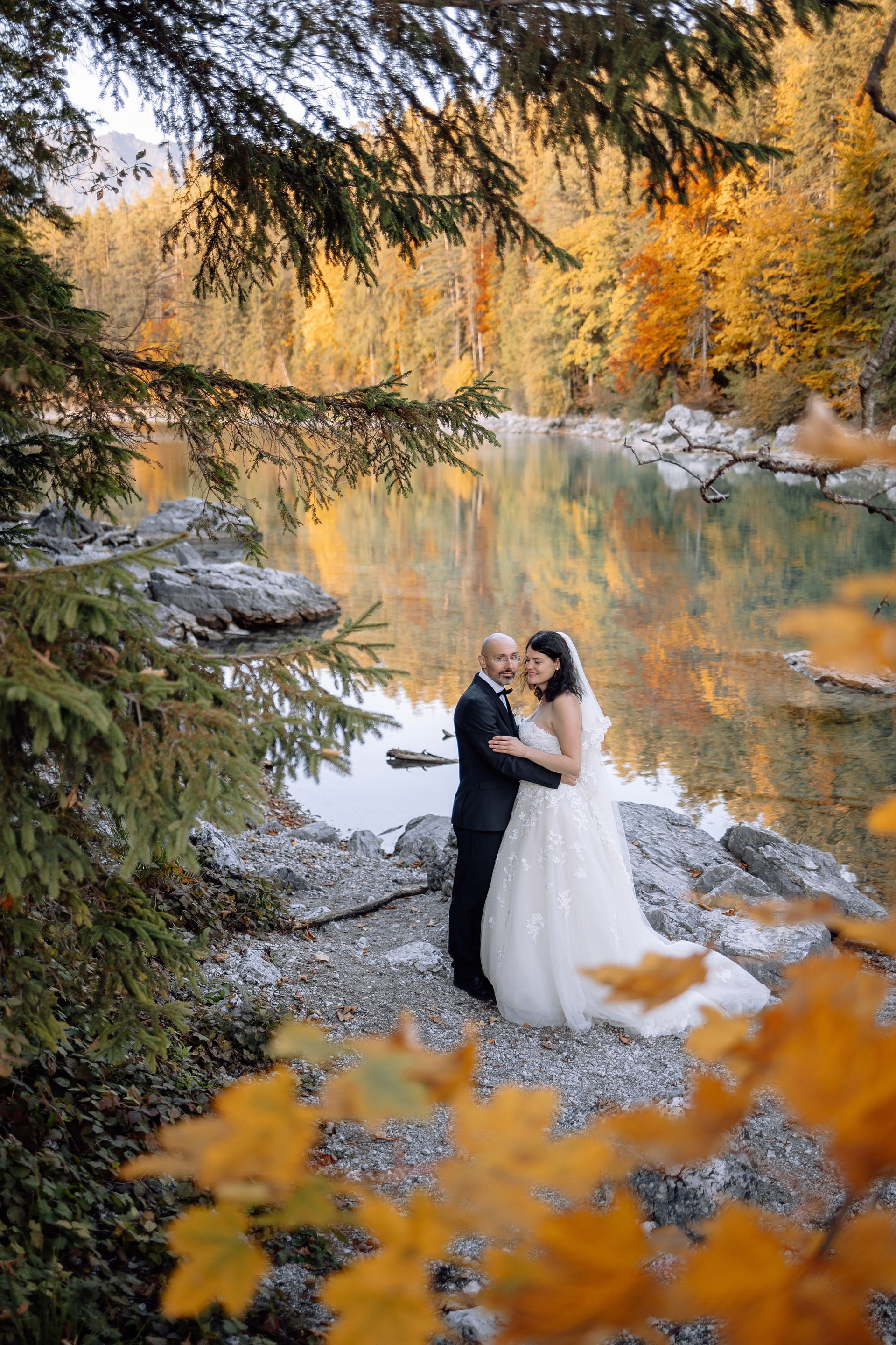 Diese Serie entstand am wunderschönen Eibsee, einem der beeindruckendsten Alpenseen in den Bayerischen Alpen. Kristallklares Wasser und majestätische Berglandschaften machen den Eibsee zur perfekten Kulisse für Hochzeitsfotos, die eure Liebe authentisch einfangen.