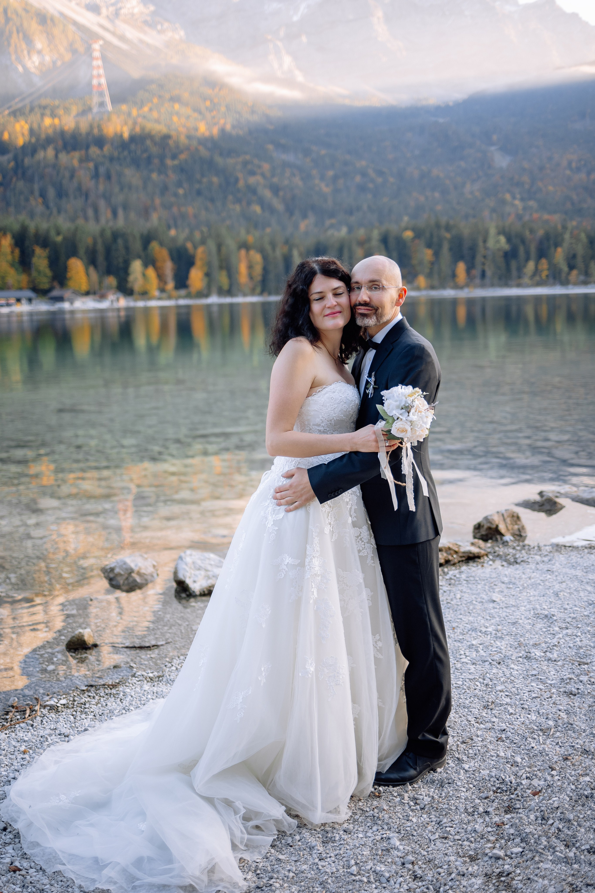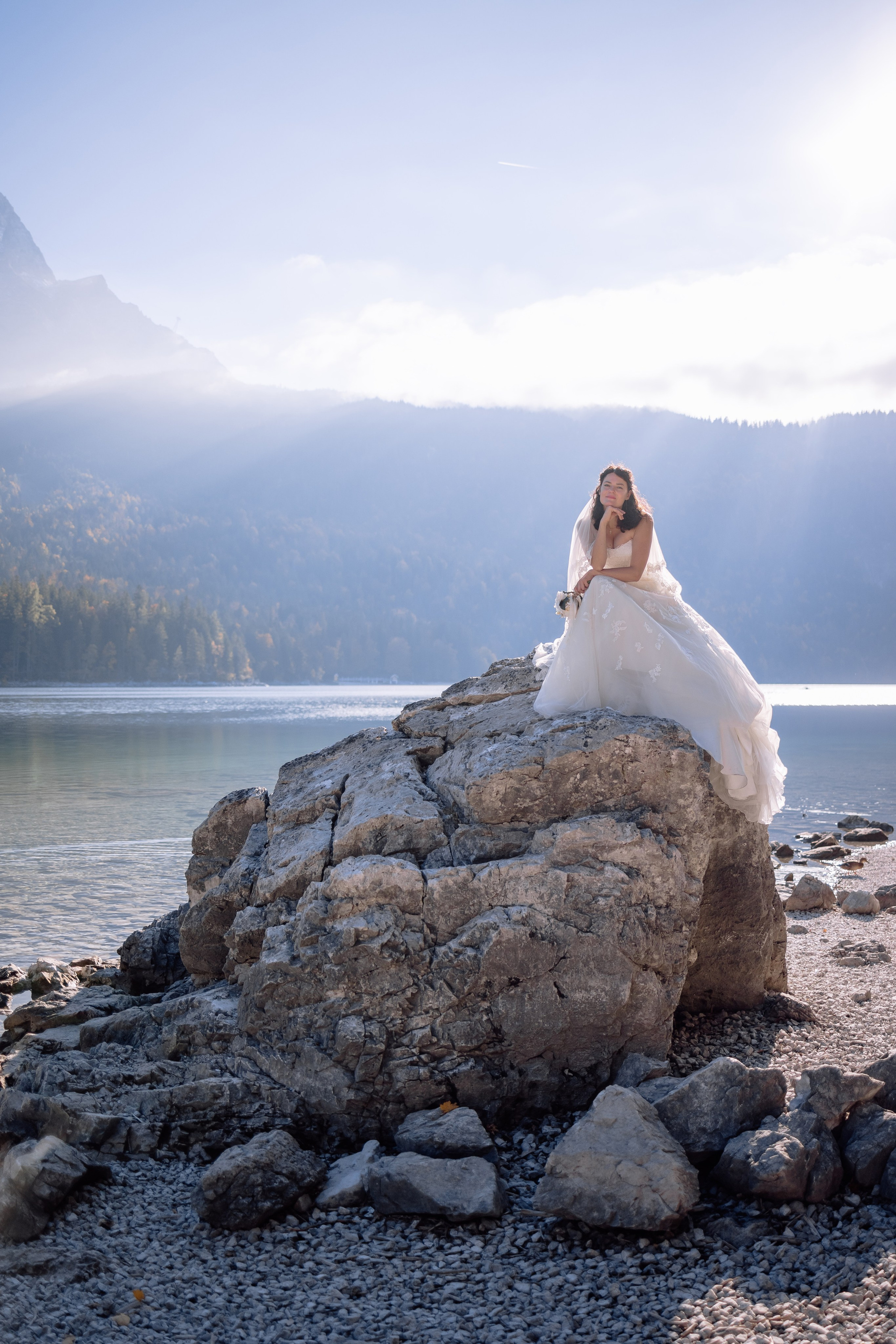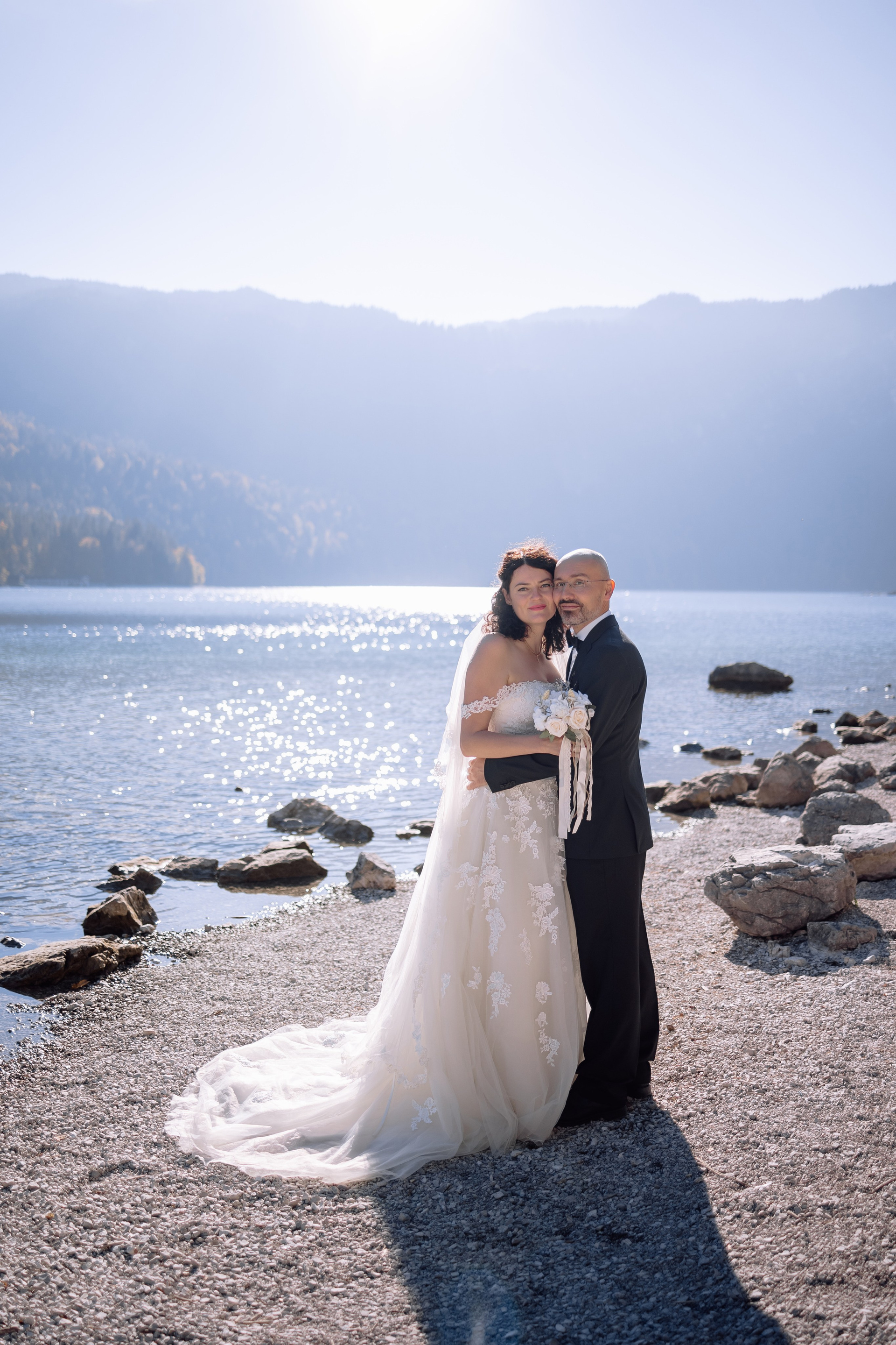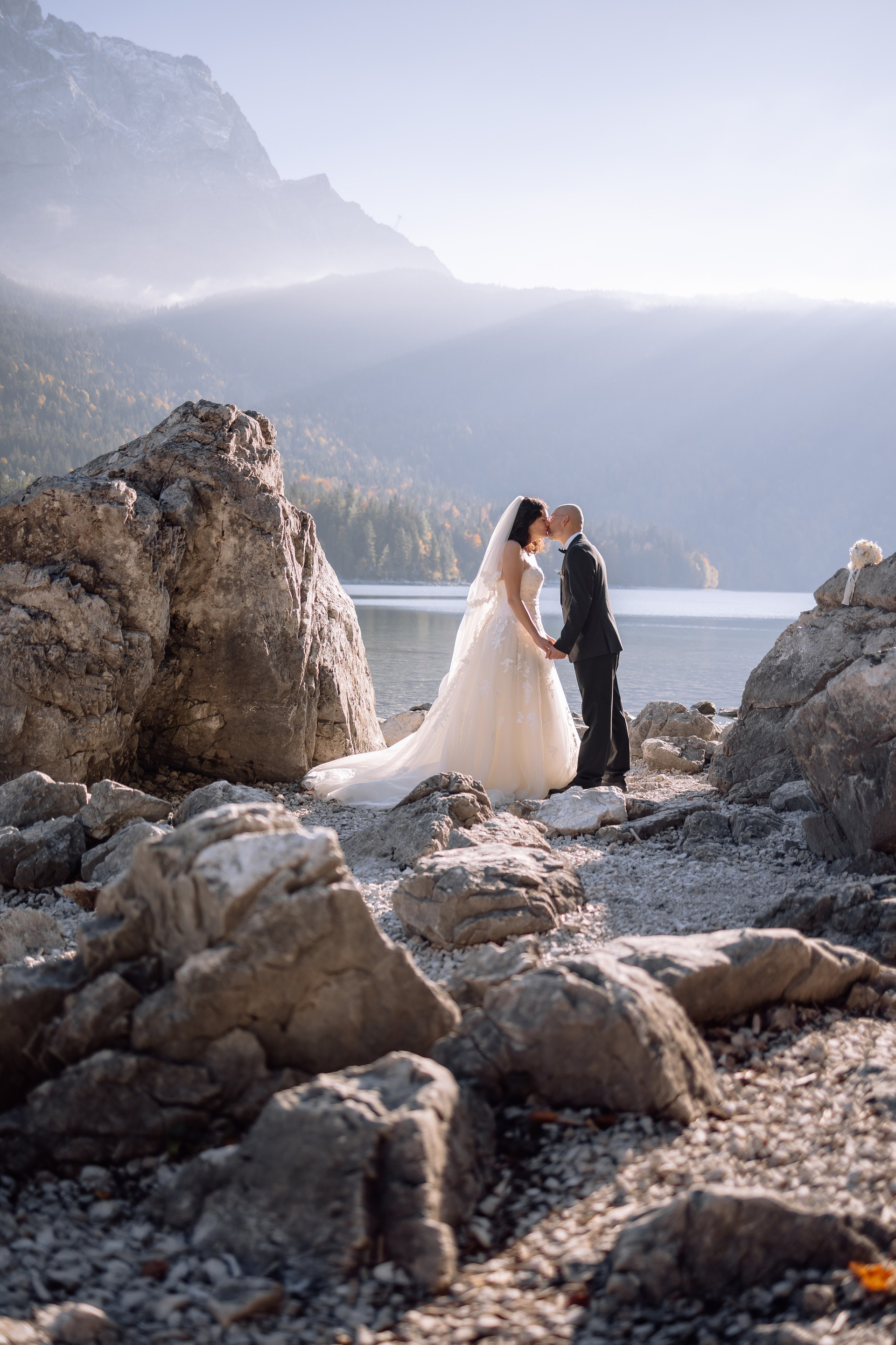 Diese Serie entstand am wunderschönen Eibsee, einem der beeindruckendsten Alpenseen in den Bayerischen Alpen. Kristallklares Wasser und majestätische Berglandschaften machen den Eibsee zur perfekten Kulisse für Hochzeitsfotos, die eure Liebe authentisch einfangen.
