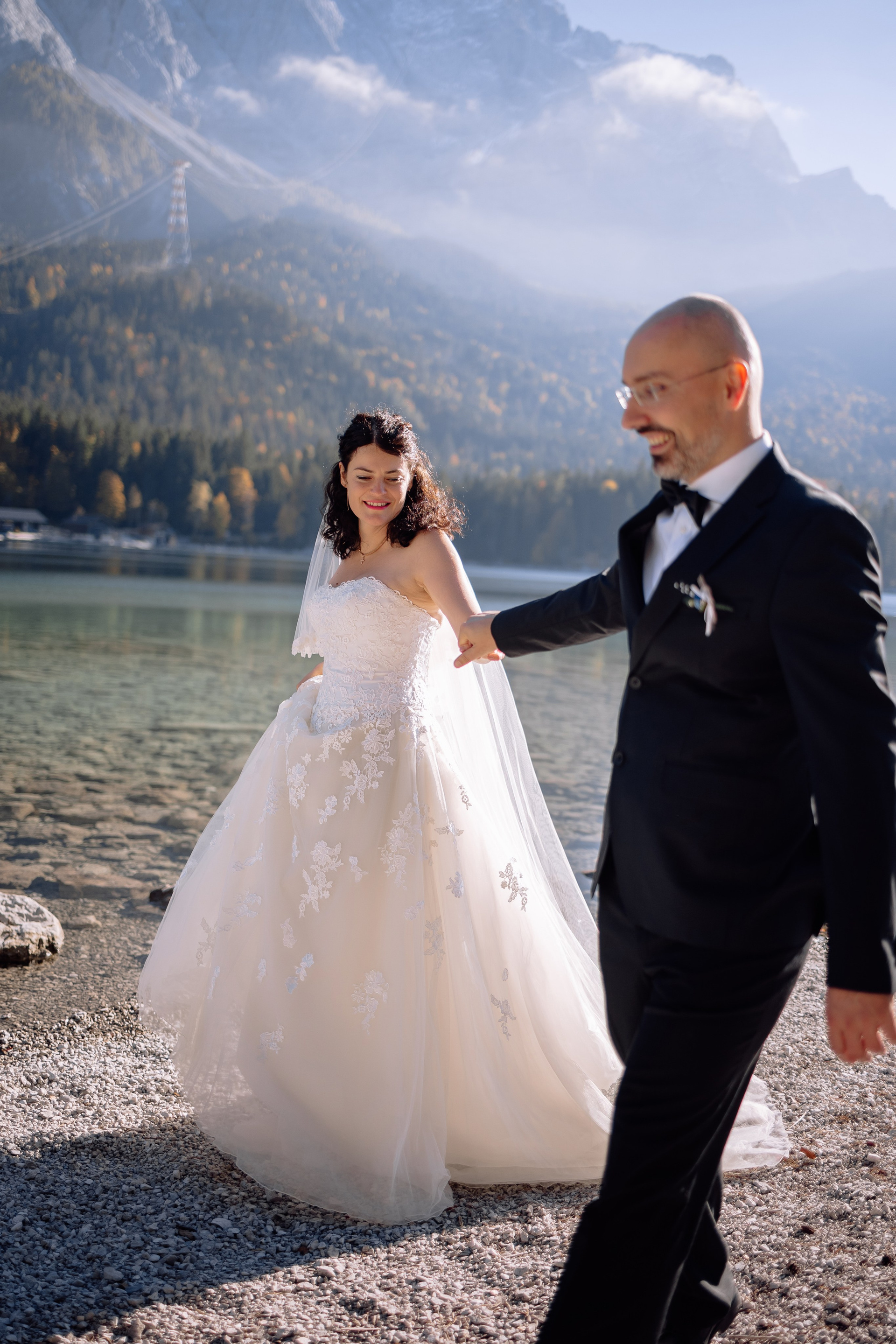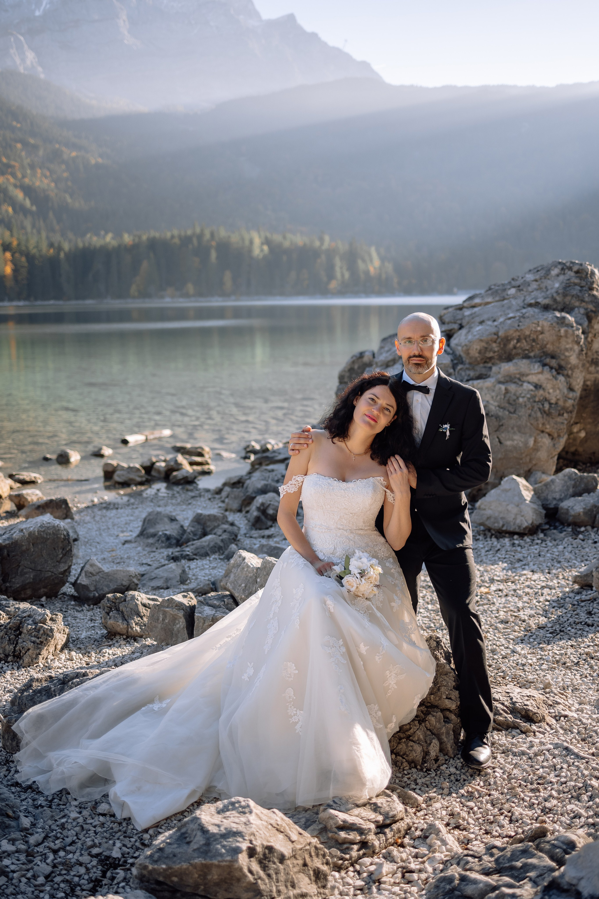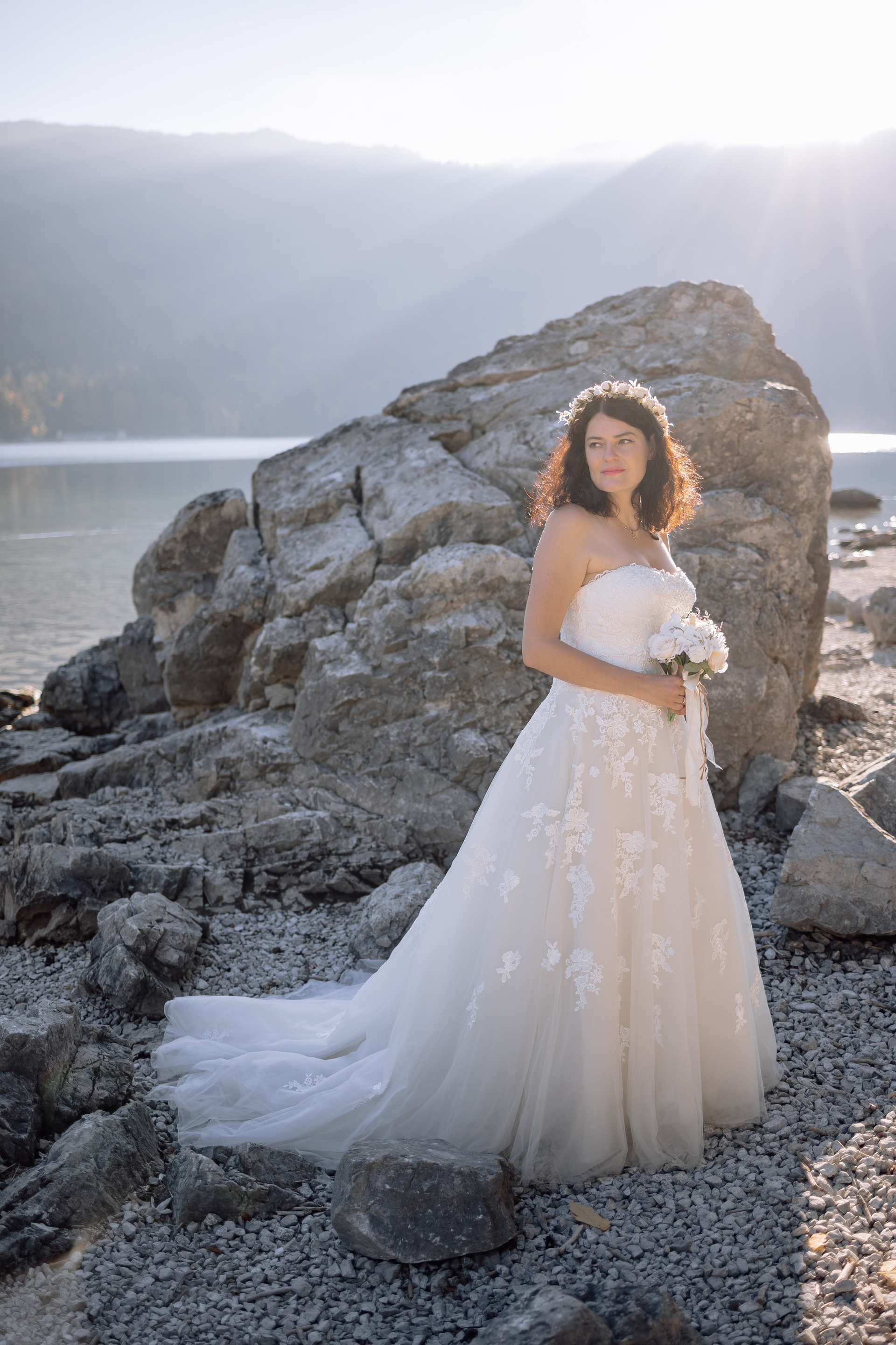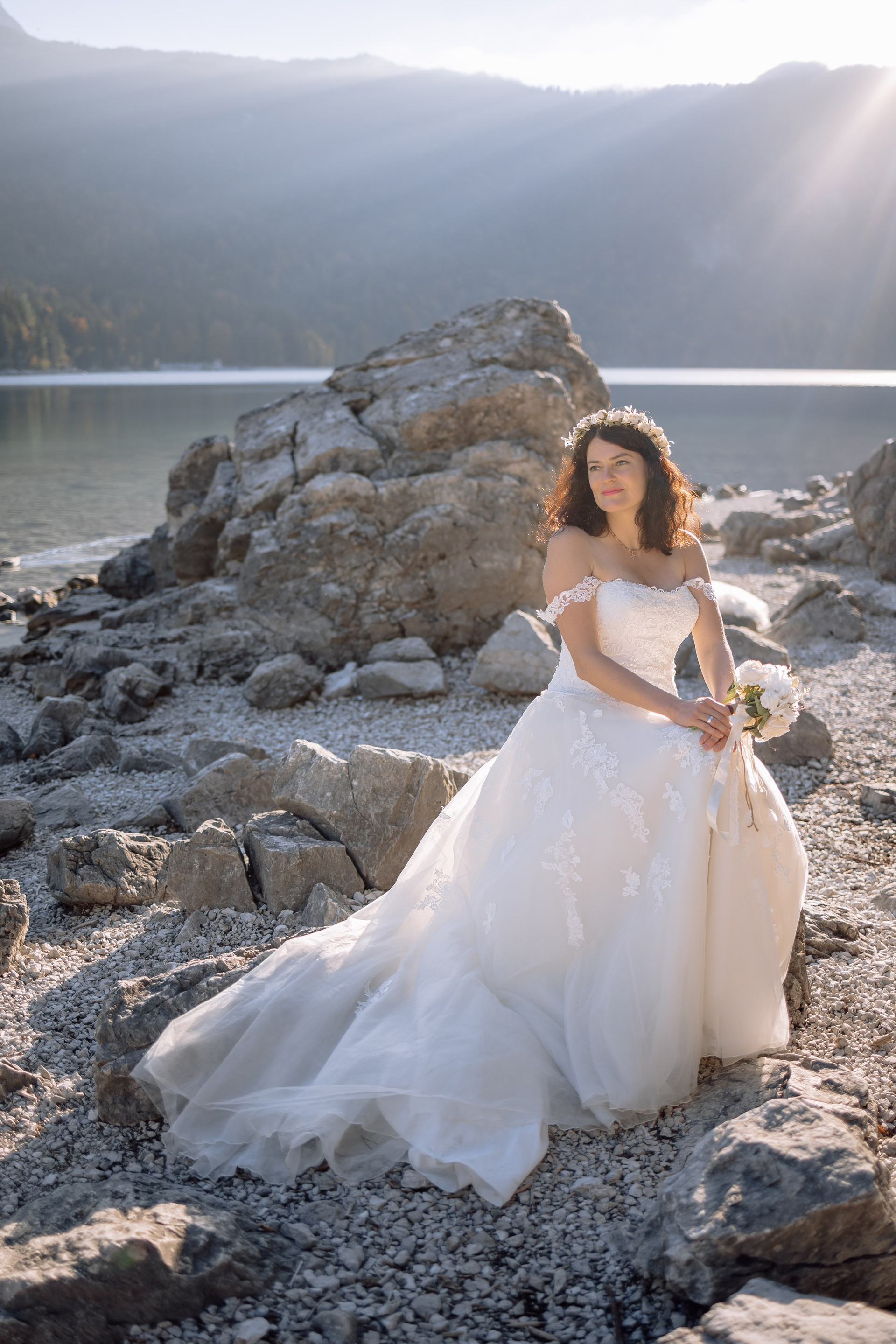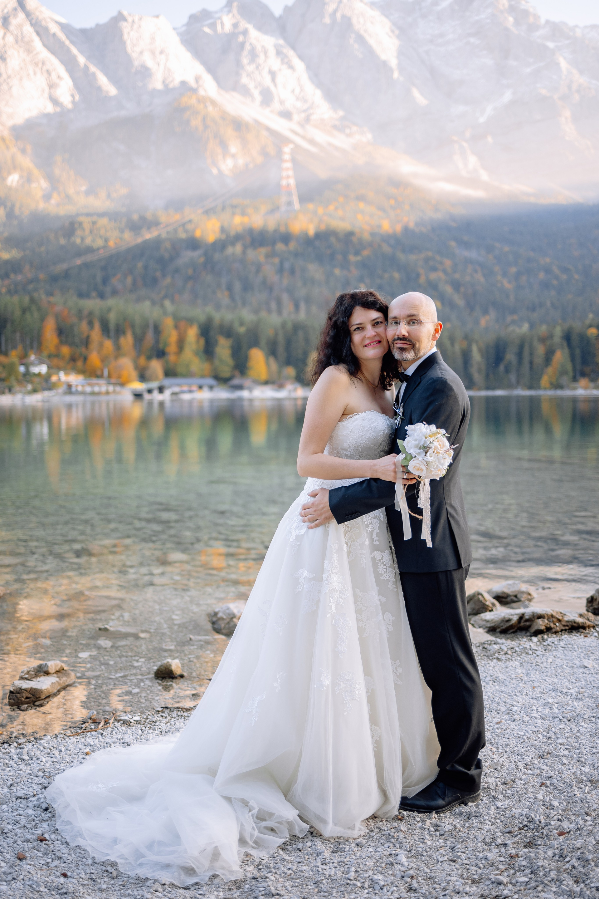 Diese Serie entstand am wunderschönen Eibsee, einem der beeindruckendsten Alpenseen in den Bayerischen Alpen. Kristallklares Wasser und majestätische Berglandschaften machen den Eibsee zur perfekten Kulisse für Hochzeitsfotos, die eure Liebe authentisch einfangen.