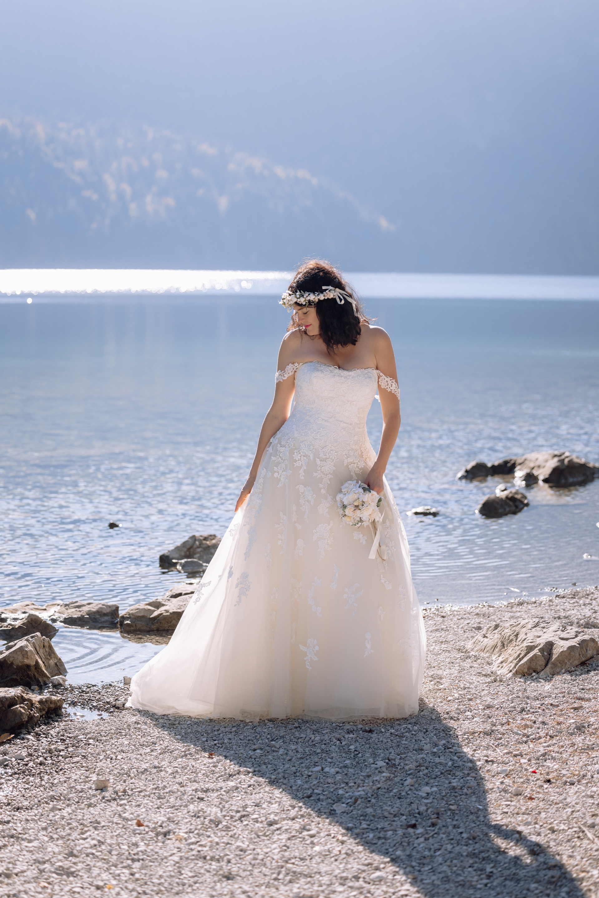 Ich begleite euch gerne zu einem Hochzeitsfotoshooting in den Alpen, egal ob am Eibsee, Alpsee oder einem anderen alpinen See in Bayern. Von München aus sind diese Orte gut erreichbar, und ich fahre auf Wunsch mit euch dorthin.