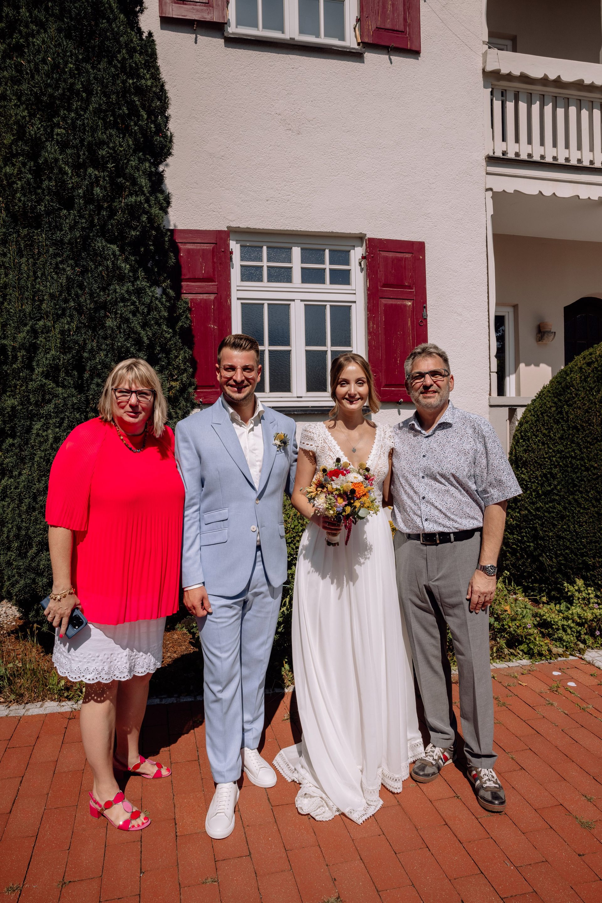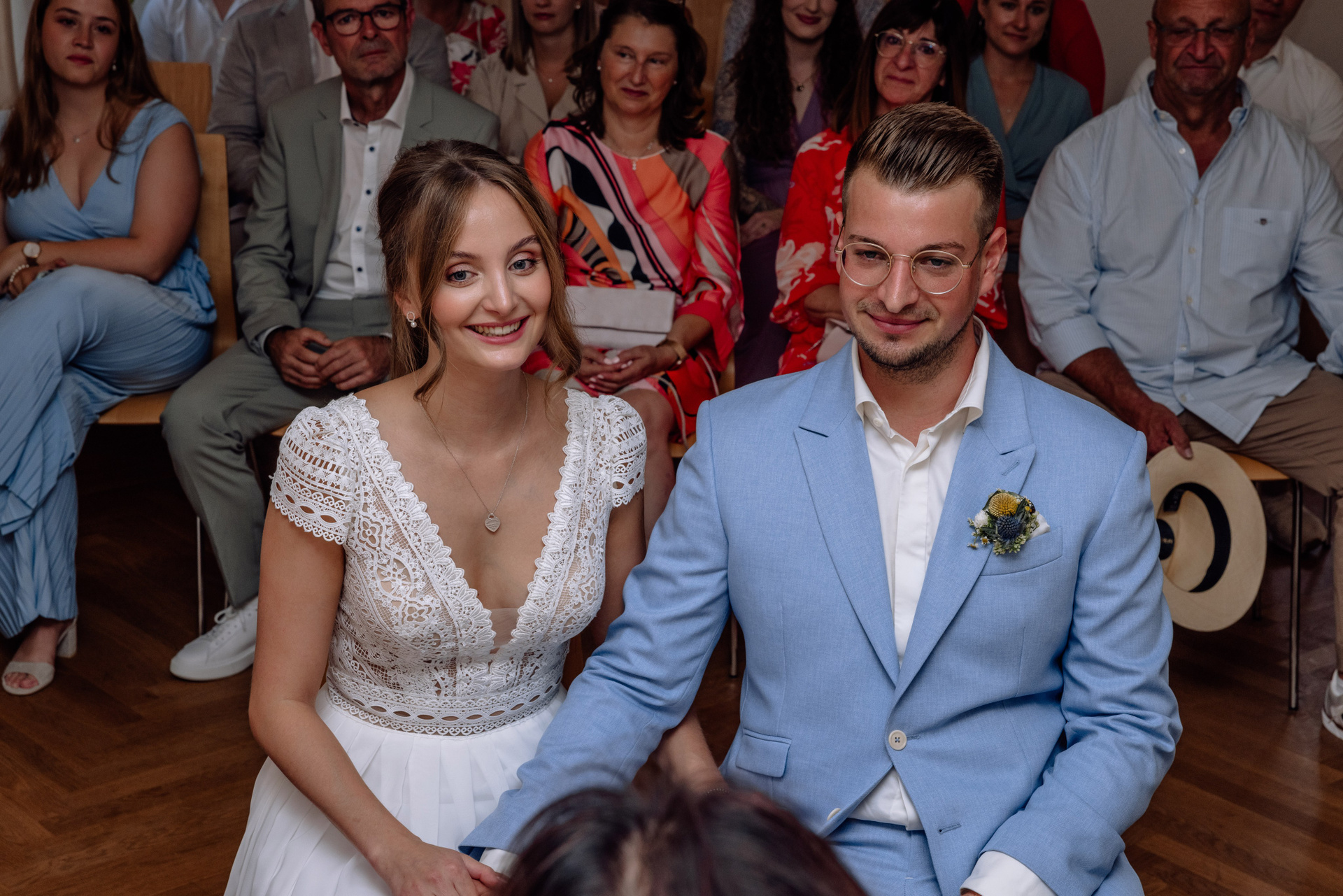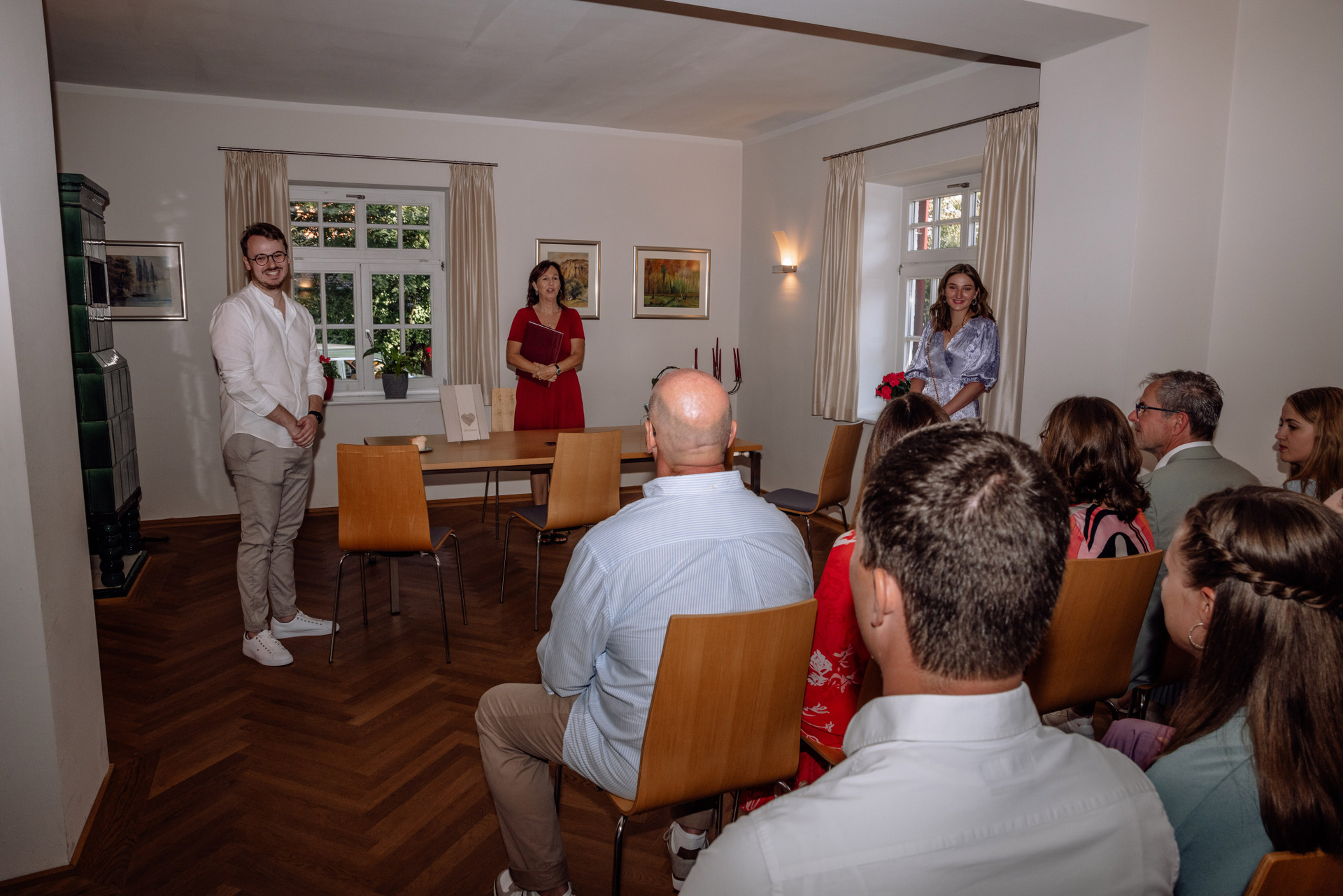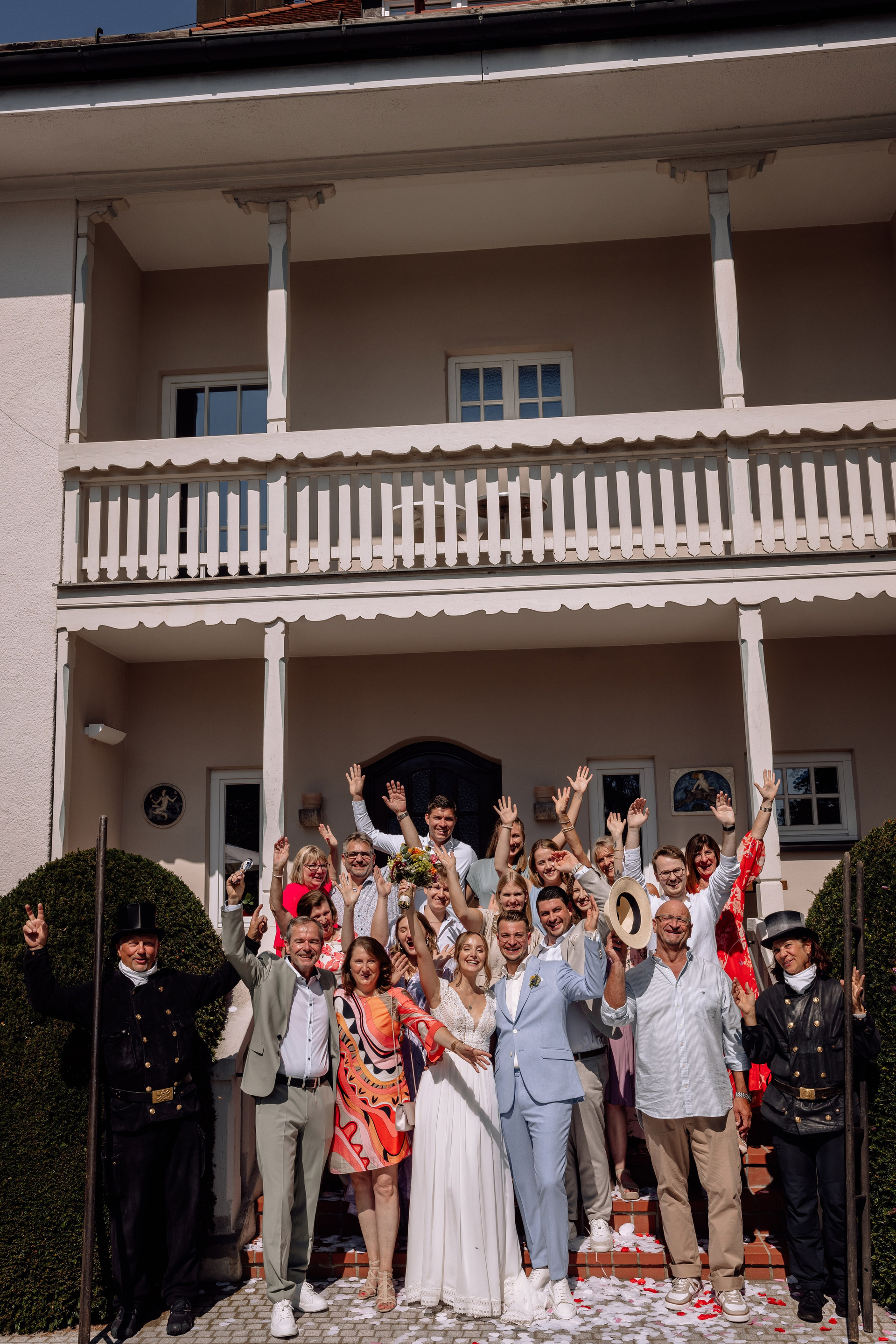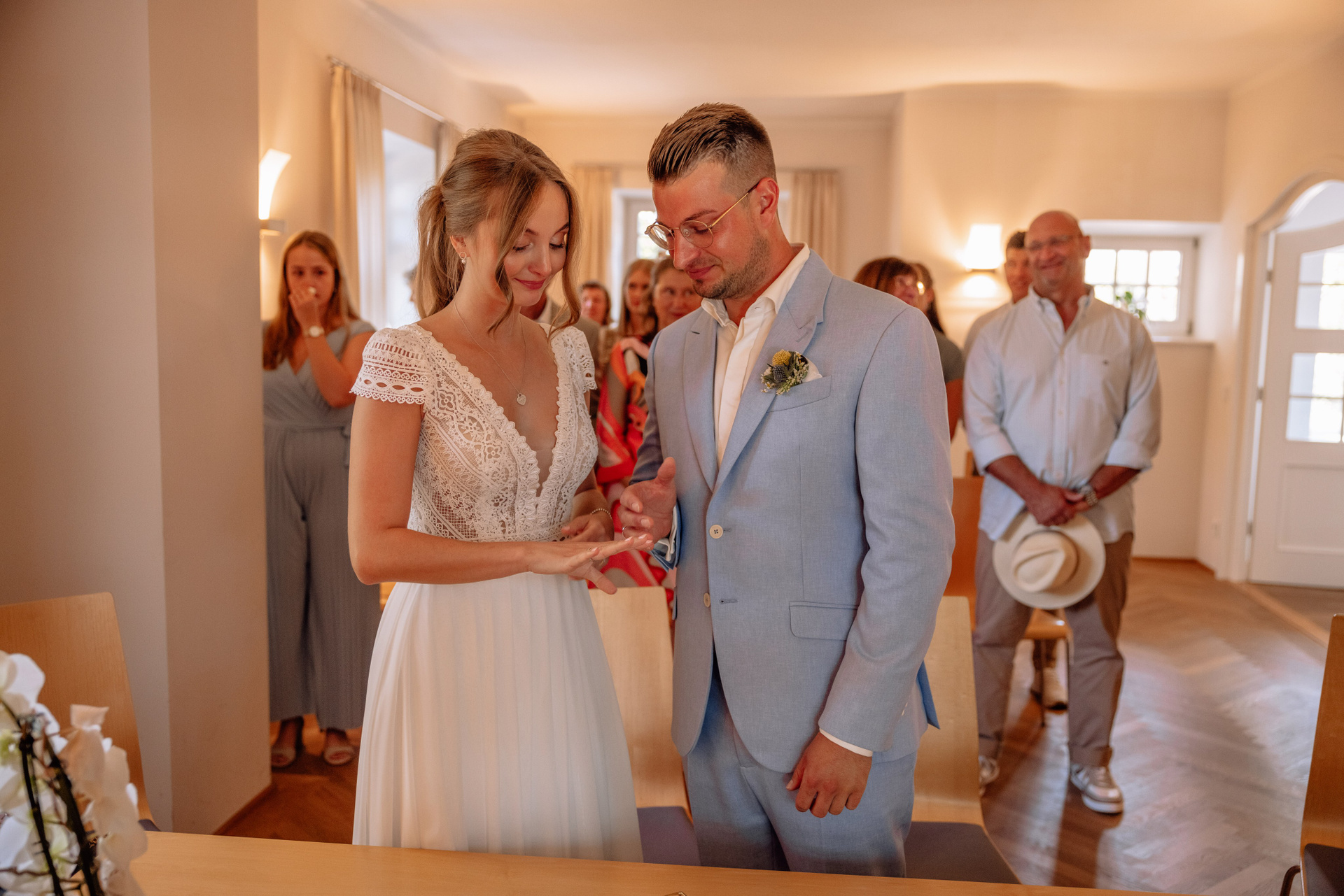 Das kleine Standesamt in Gilching bietet eine sehr persönliche, warme Atmosphäre. An diesem Tag passte alles zusammen: das wunderschöne Licht, die offene Stimmung und die starke emotionale Verbindung zwischen allen Beteiligten.