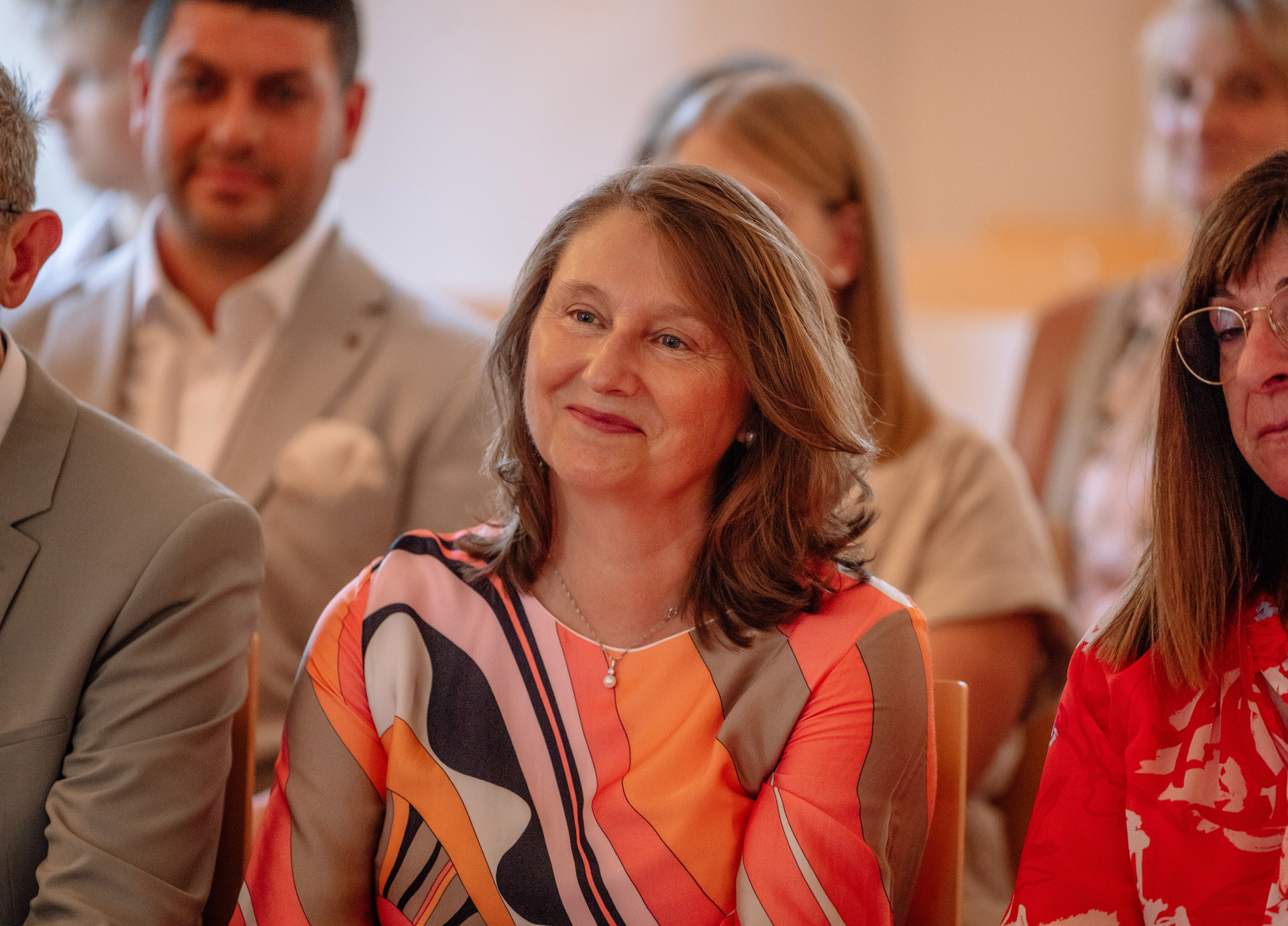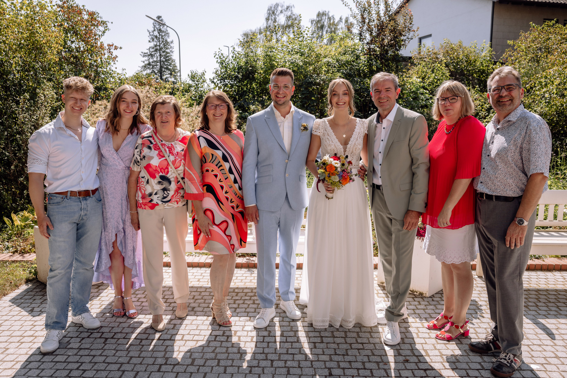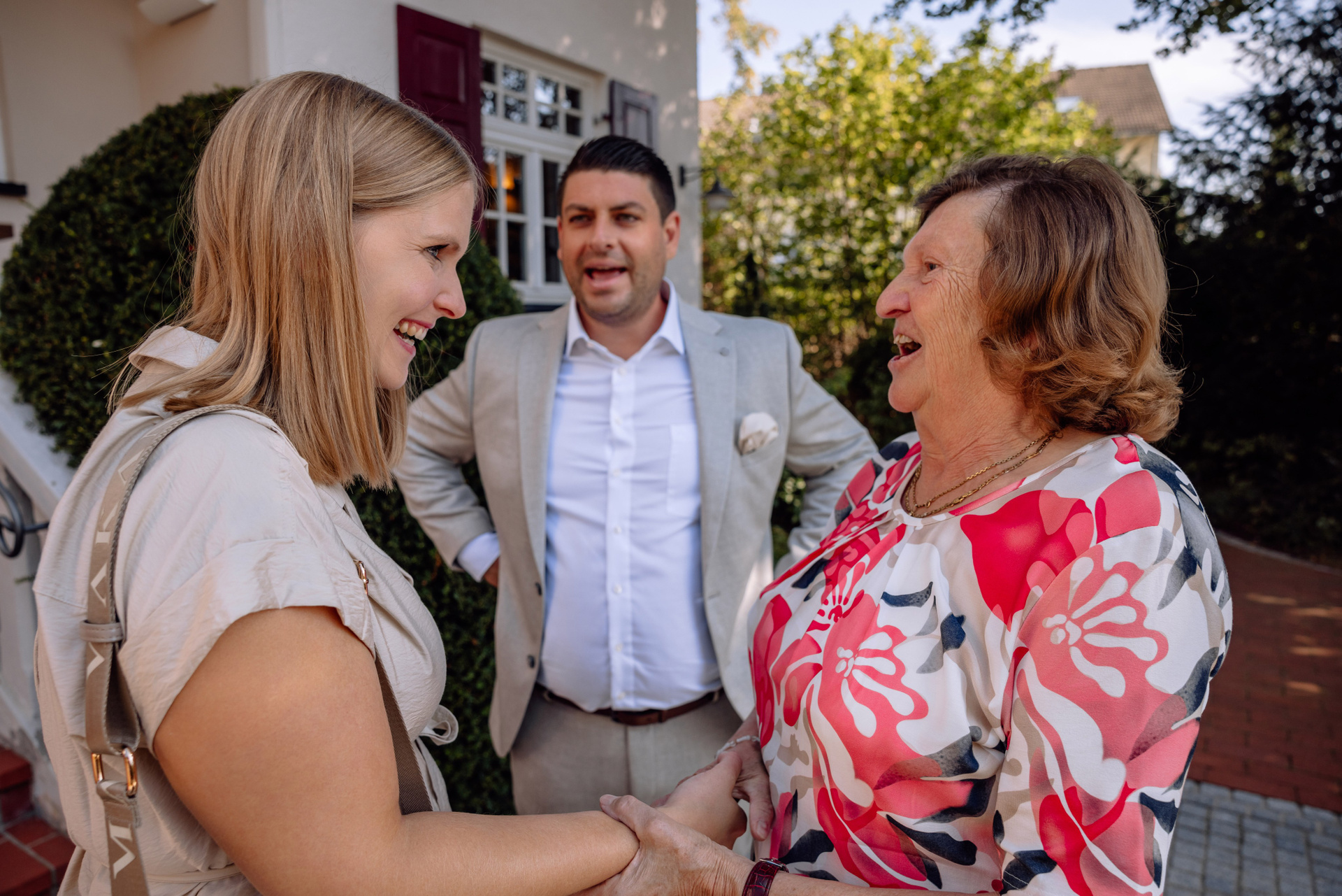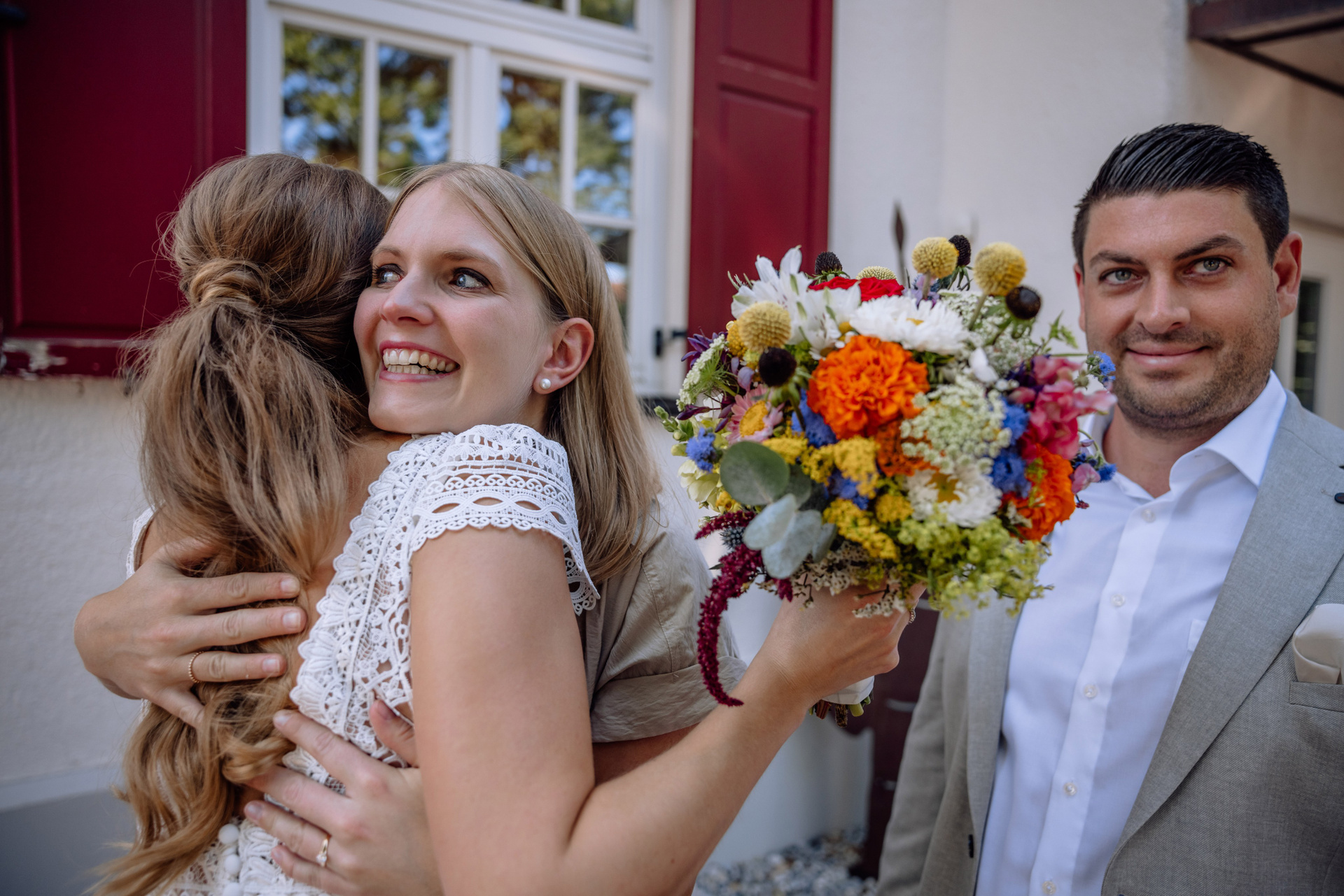 Das kleine Standesamt in Gilching bietet eine sehr persönliche, warme Atmosphäre. An diesem Tag passte alles zusammen: das wunderschöne Licht, die offene Stimmung und die starke emotionale Verbindung zwischen allen Beteiligten.