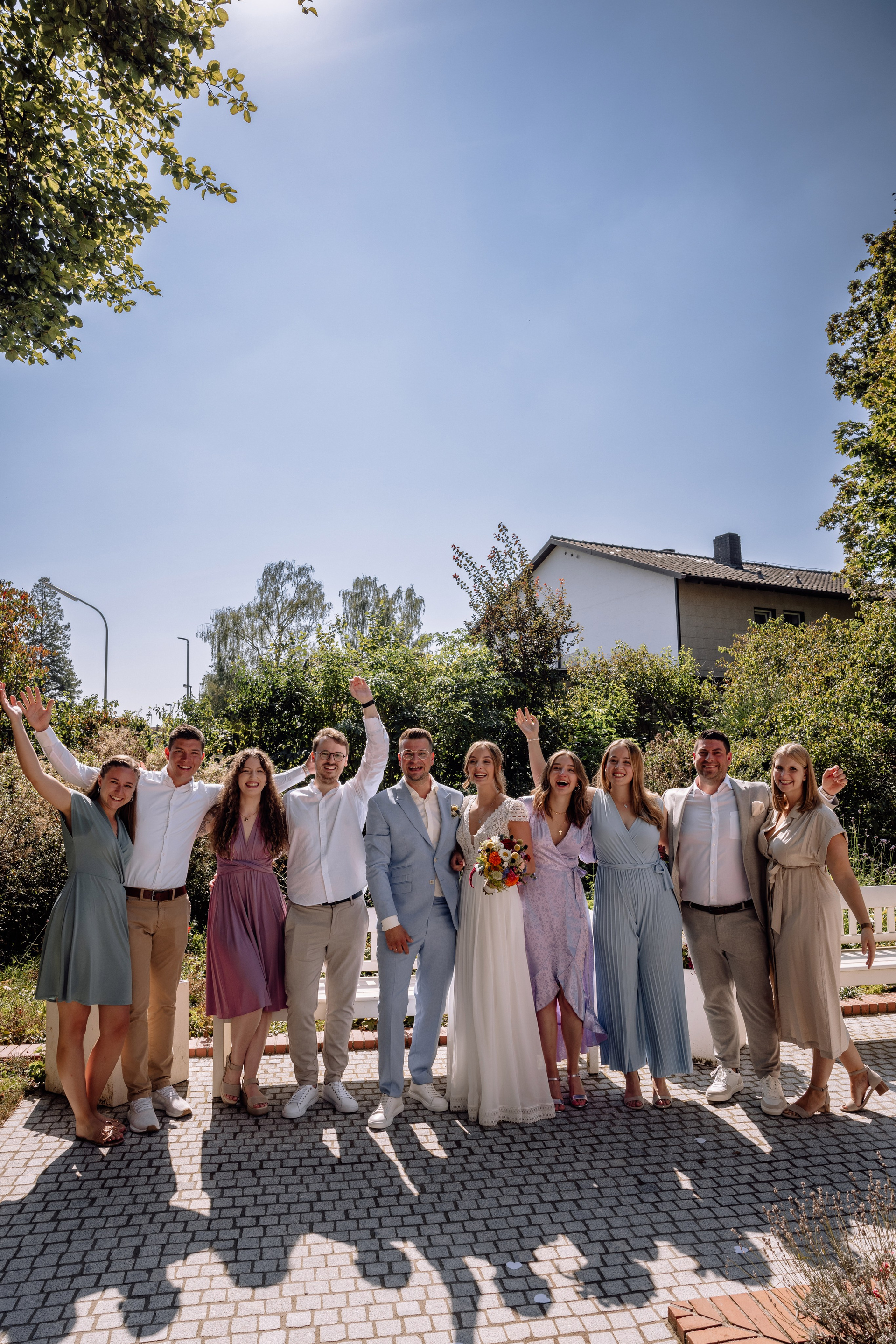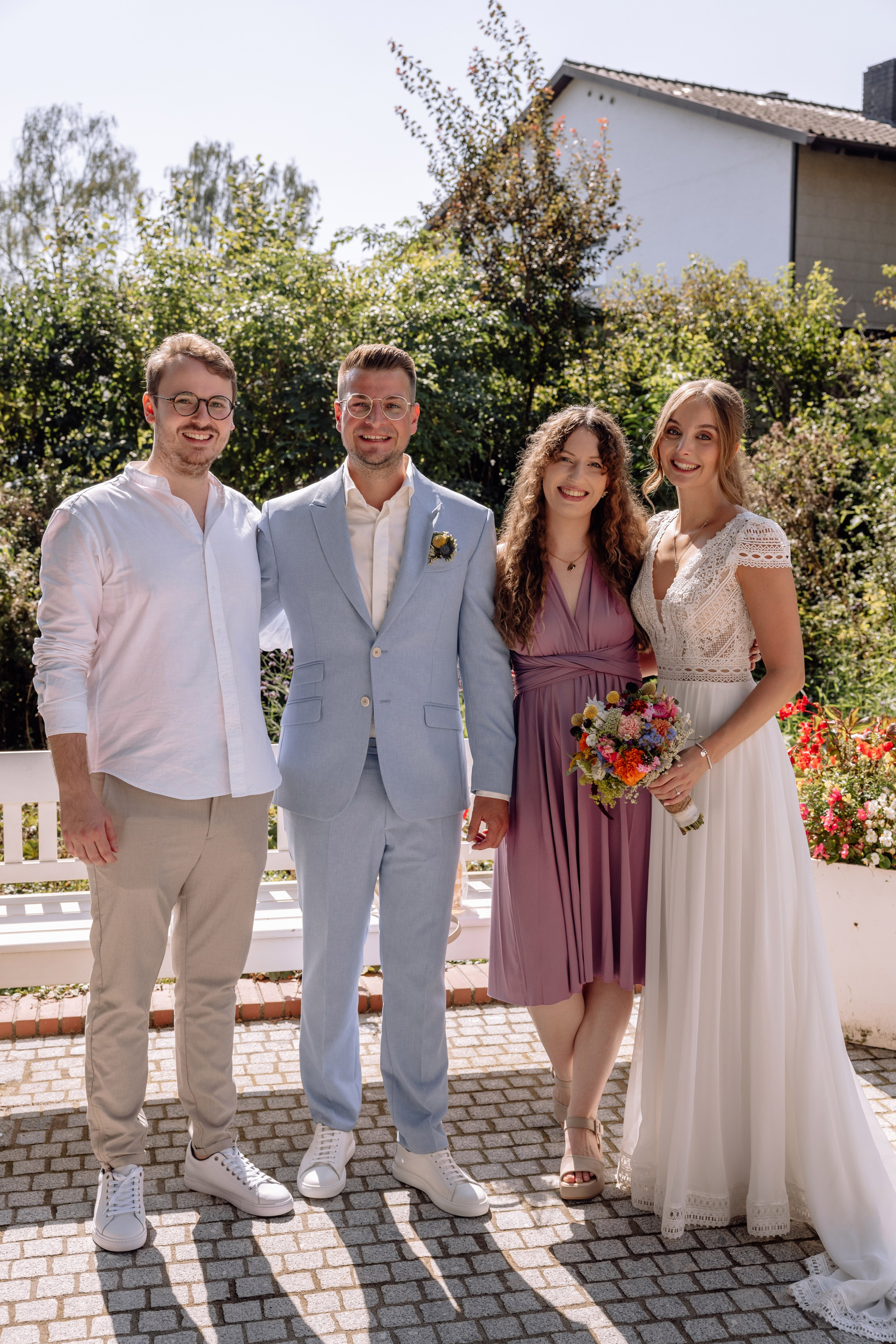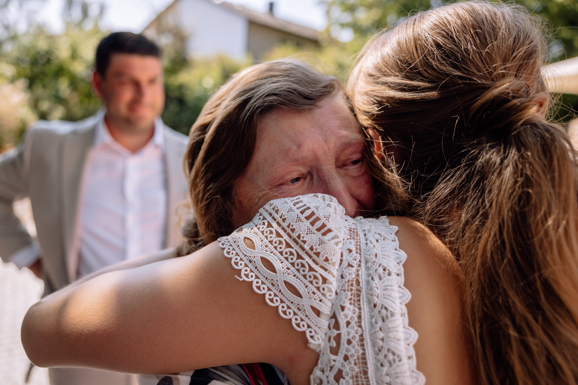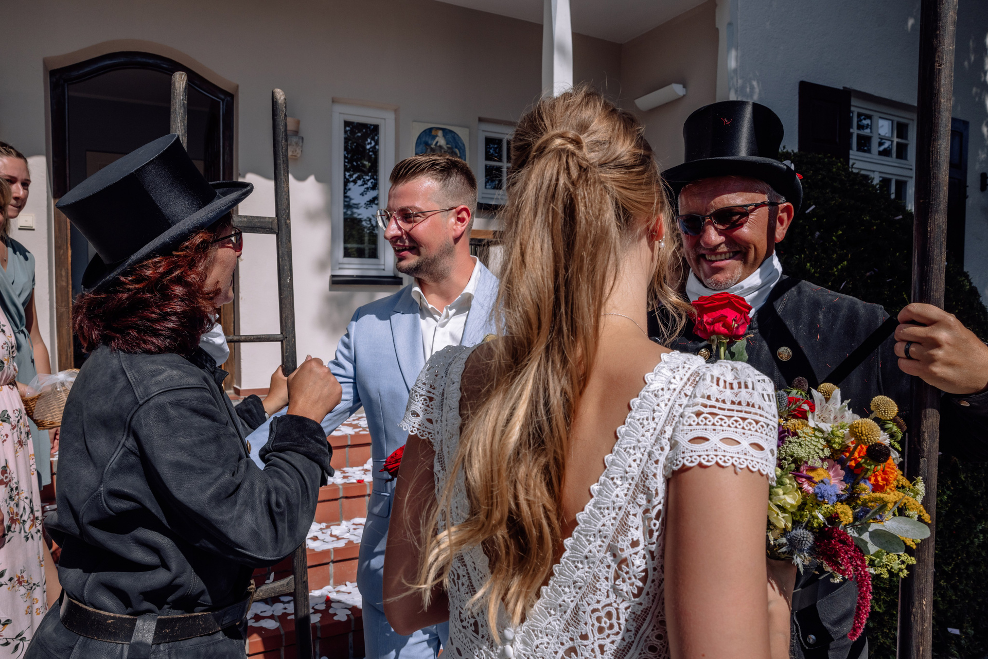 Das kleine Standesamt in Gilching bietet eine sehr persönliche, warme Atmosphäre. An diesem Tag passte alles zusammen: das wunderschöne Licht, die offene Stimmung und die starke emotionale Verbindung zwischen allen Beteiligten.