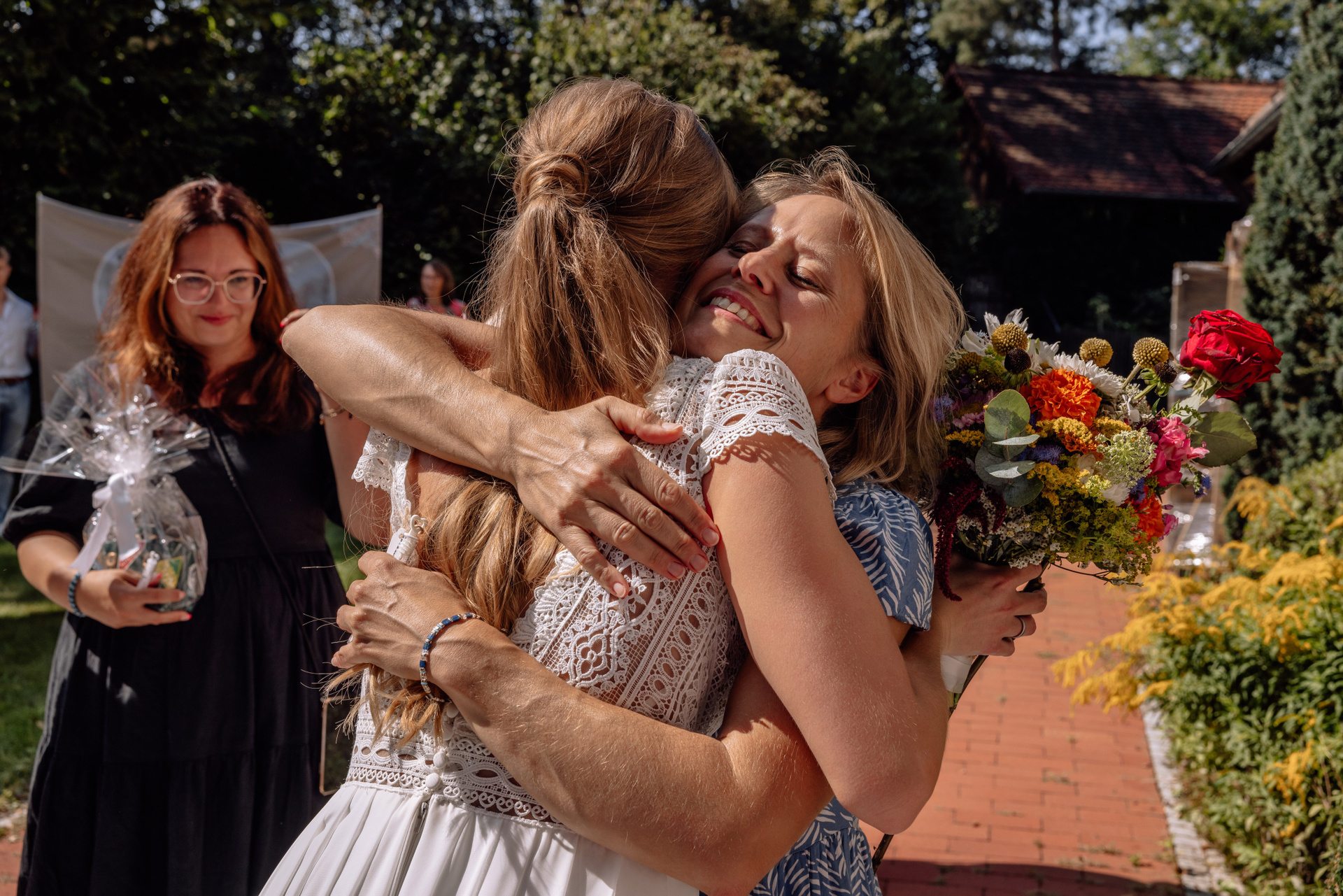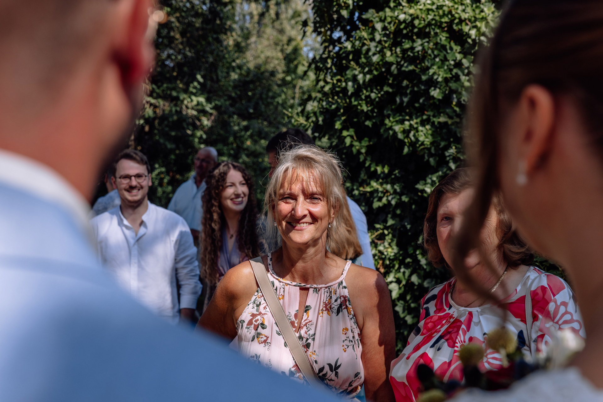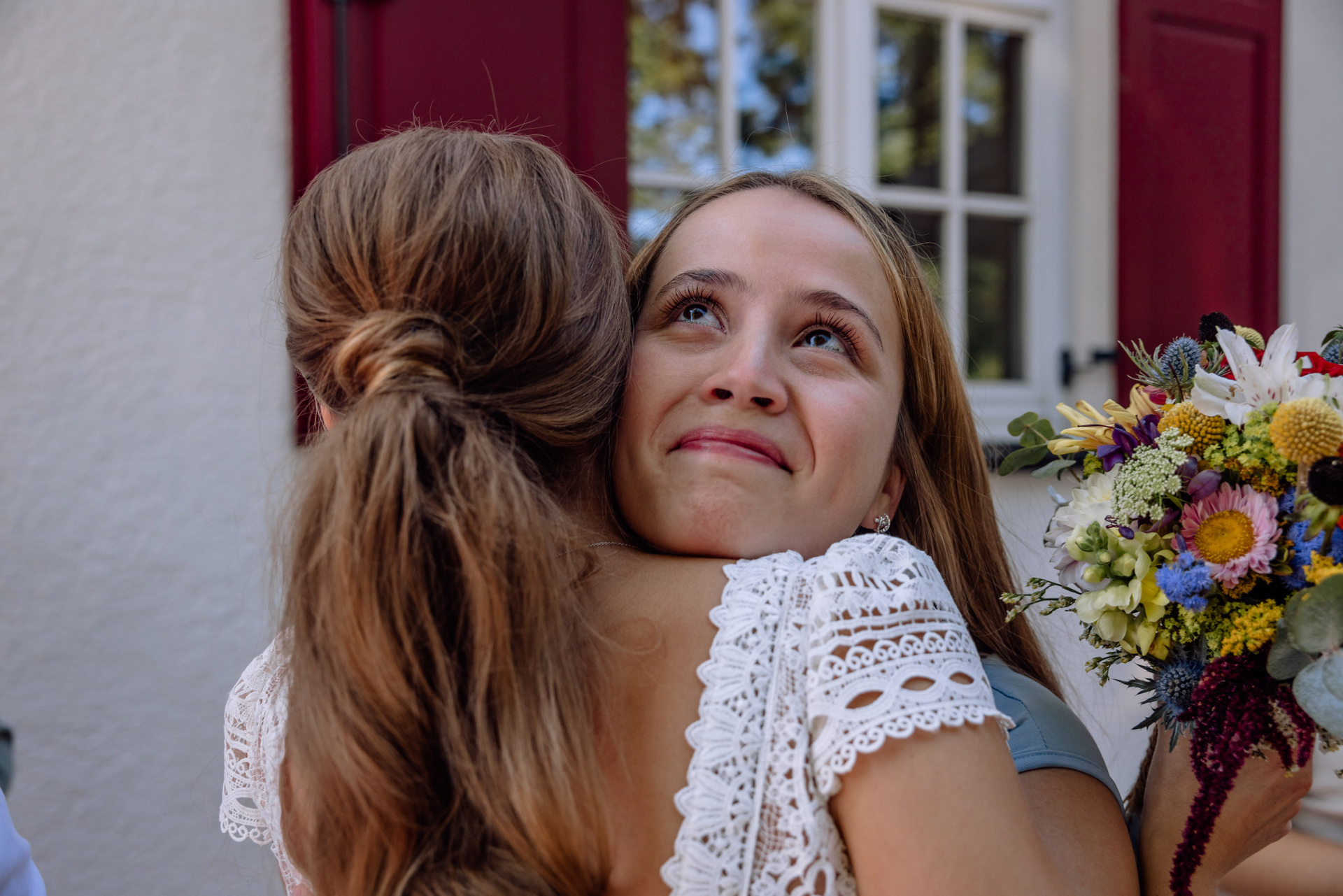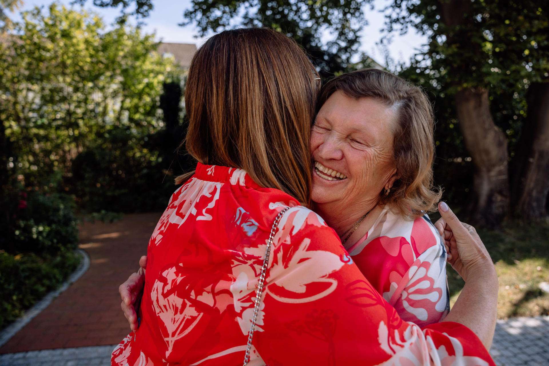 Dabei entstehen oft besonders ehrliche, kleine Augenblicke: Umarmungen, aufgeregtes Lächeln, liebevolle Blicke zwischen Eltern und Kindern. Genau das macht für mich eine authentische Hochzeitsreportage aus.