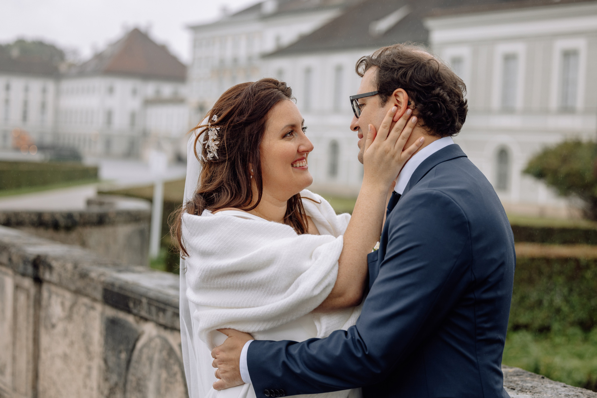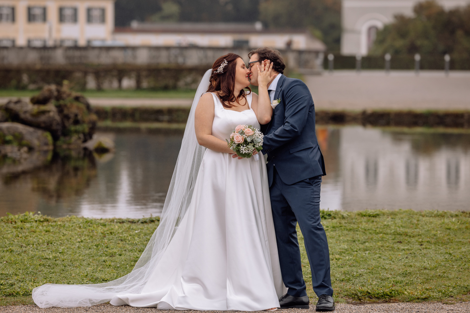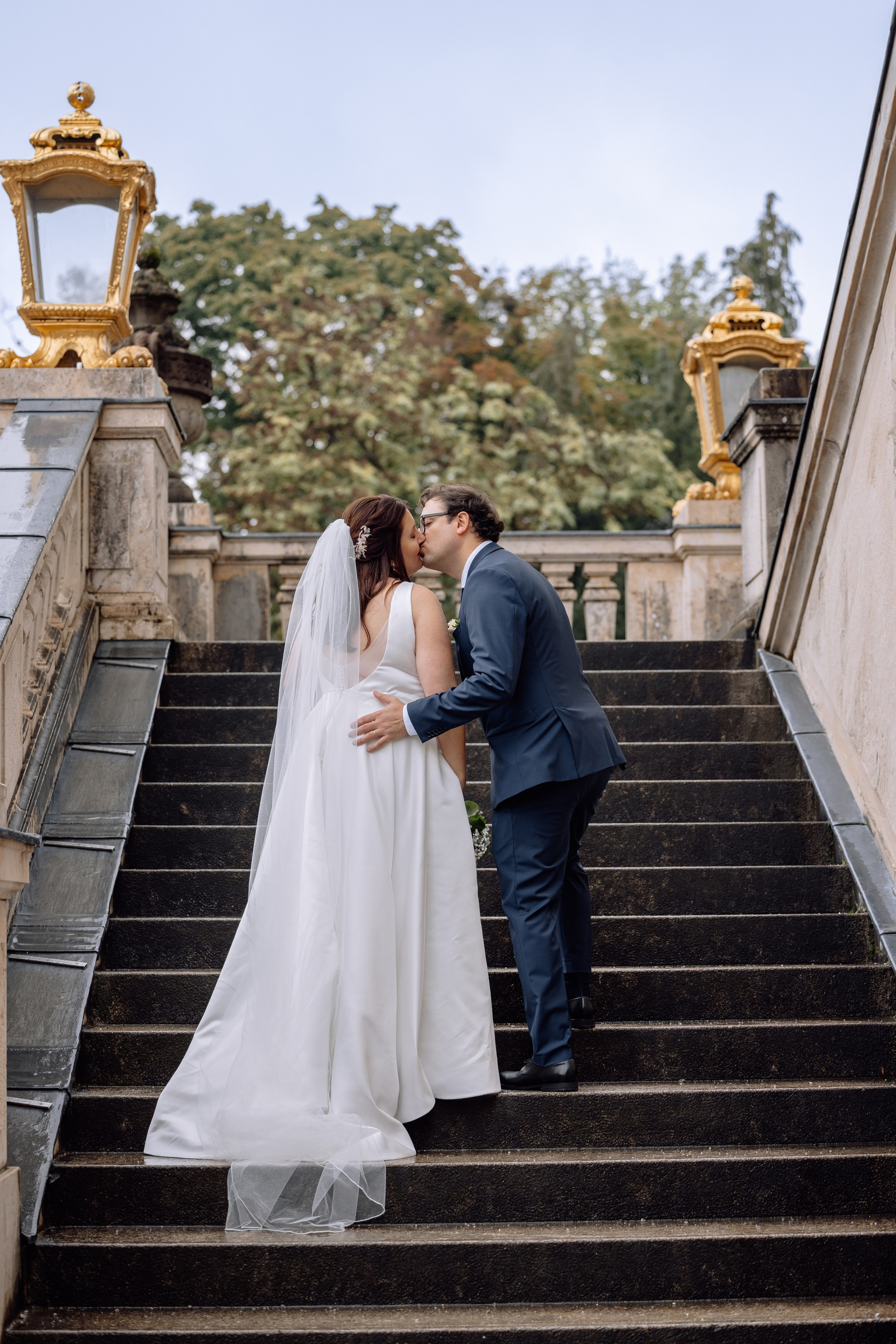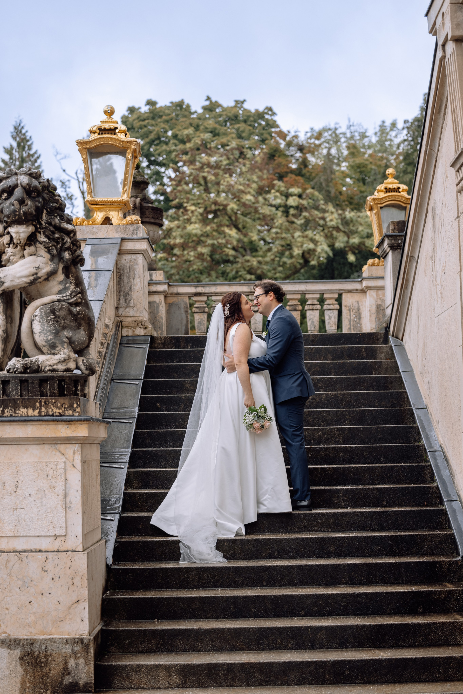 Unsere Reise führte weiter zum Schloss Nymphenburg in München – eine perfekte Kulisse für romantische Paarfotos. Die prachtvolle Architektur des Schlosses, die weitläufigen Parkanlagen und kleinen Details der Umgebung boten unzählige Möglichkeiten für stimmungsvolle Bilder. Selbst ein leichter Regen konnte die Atmosphäre nicht trüben; das diffuse Licht verlieh den Fotos eine verträumte, magische Stimmung.