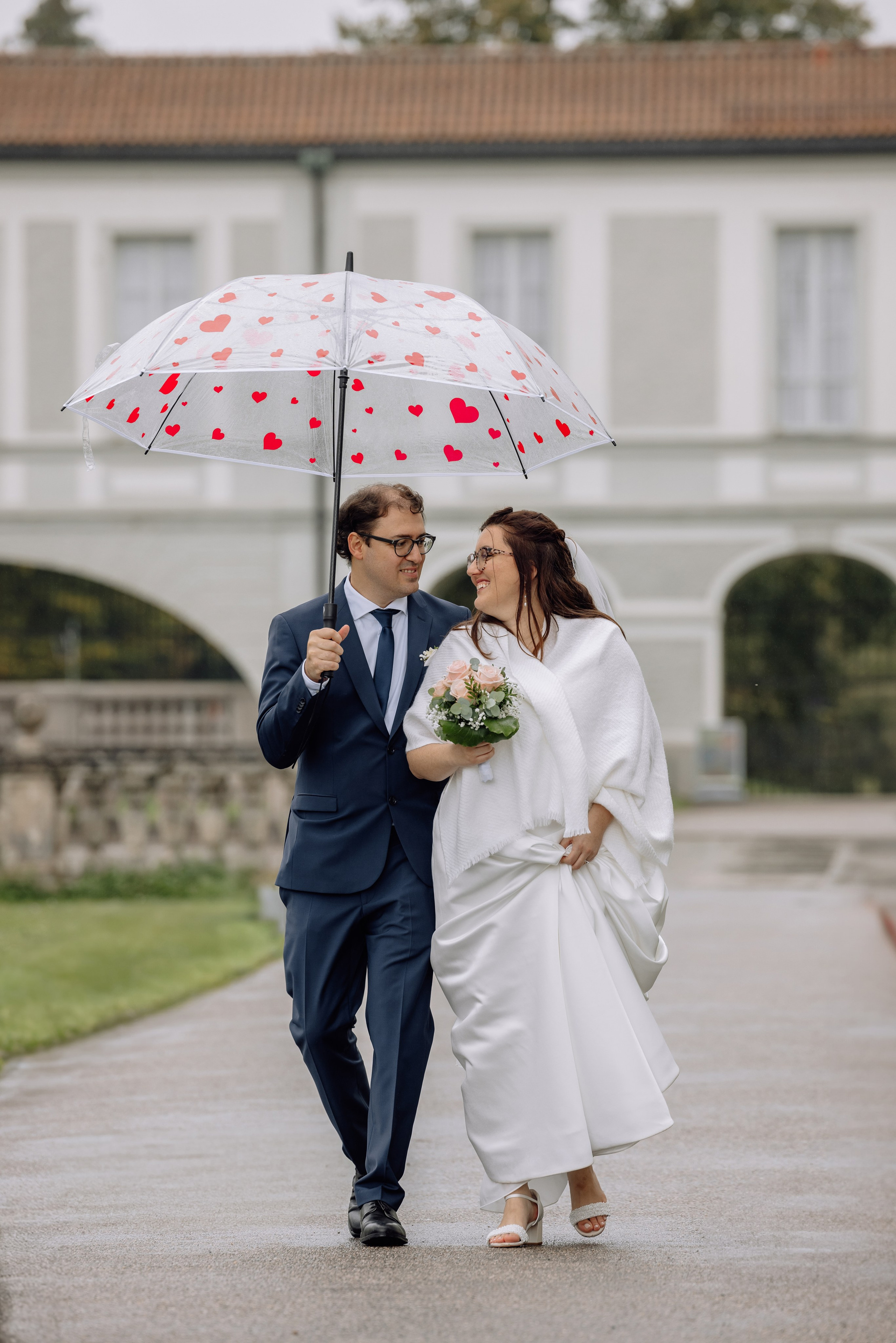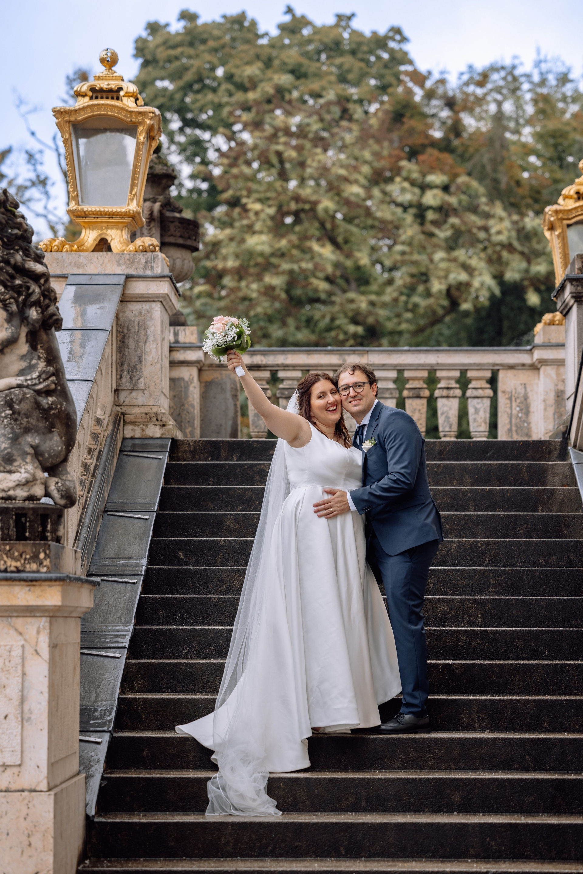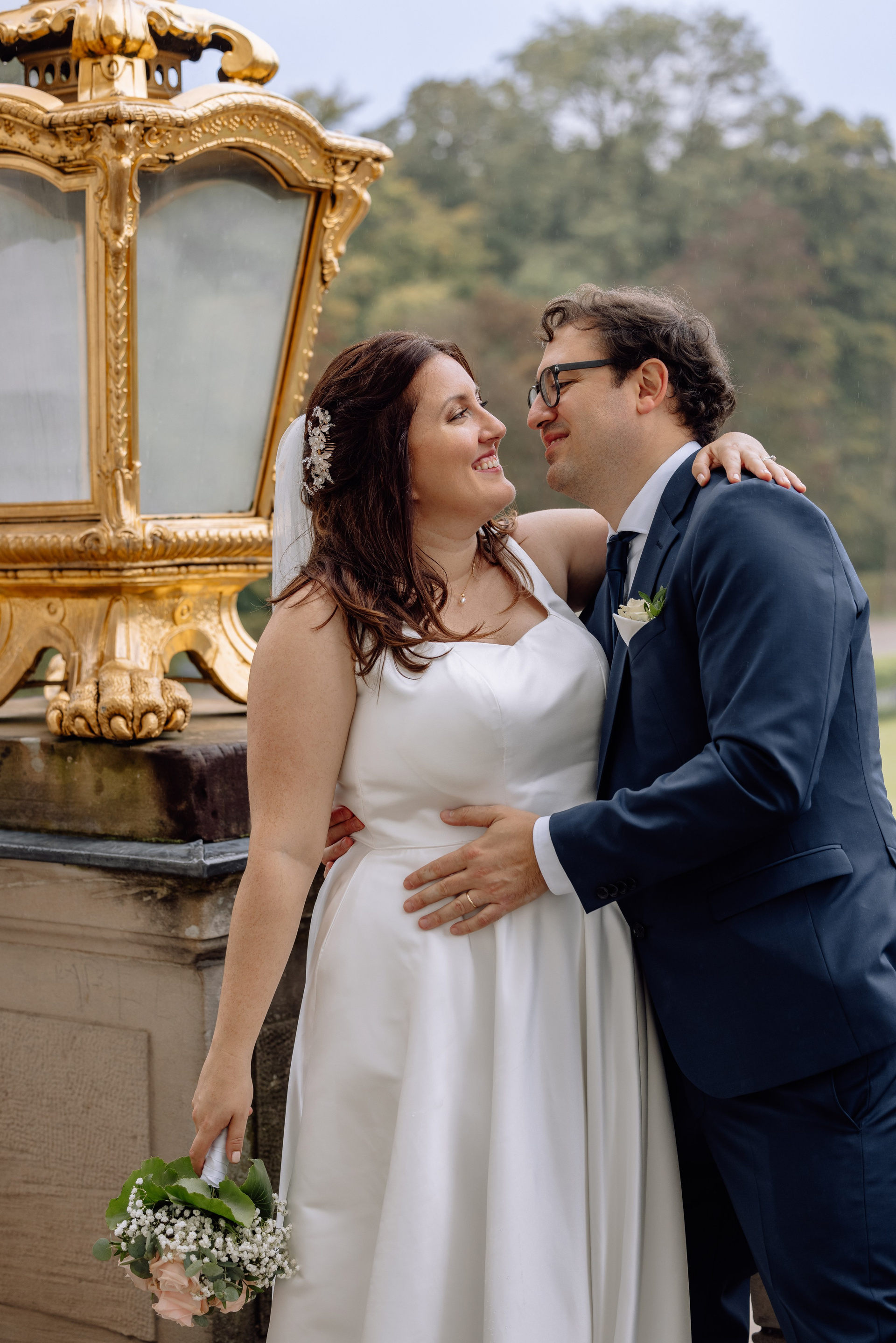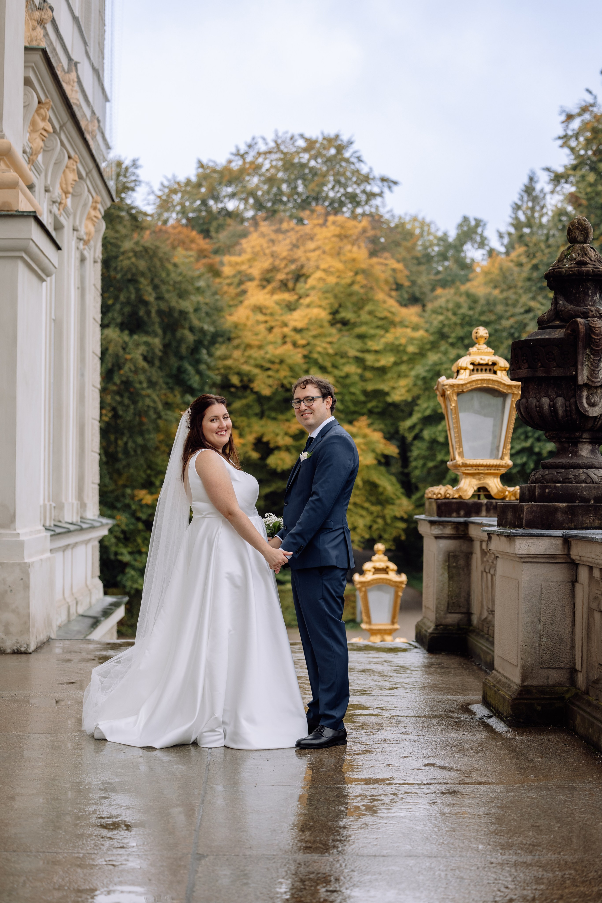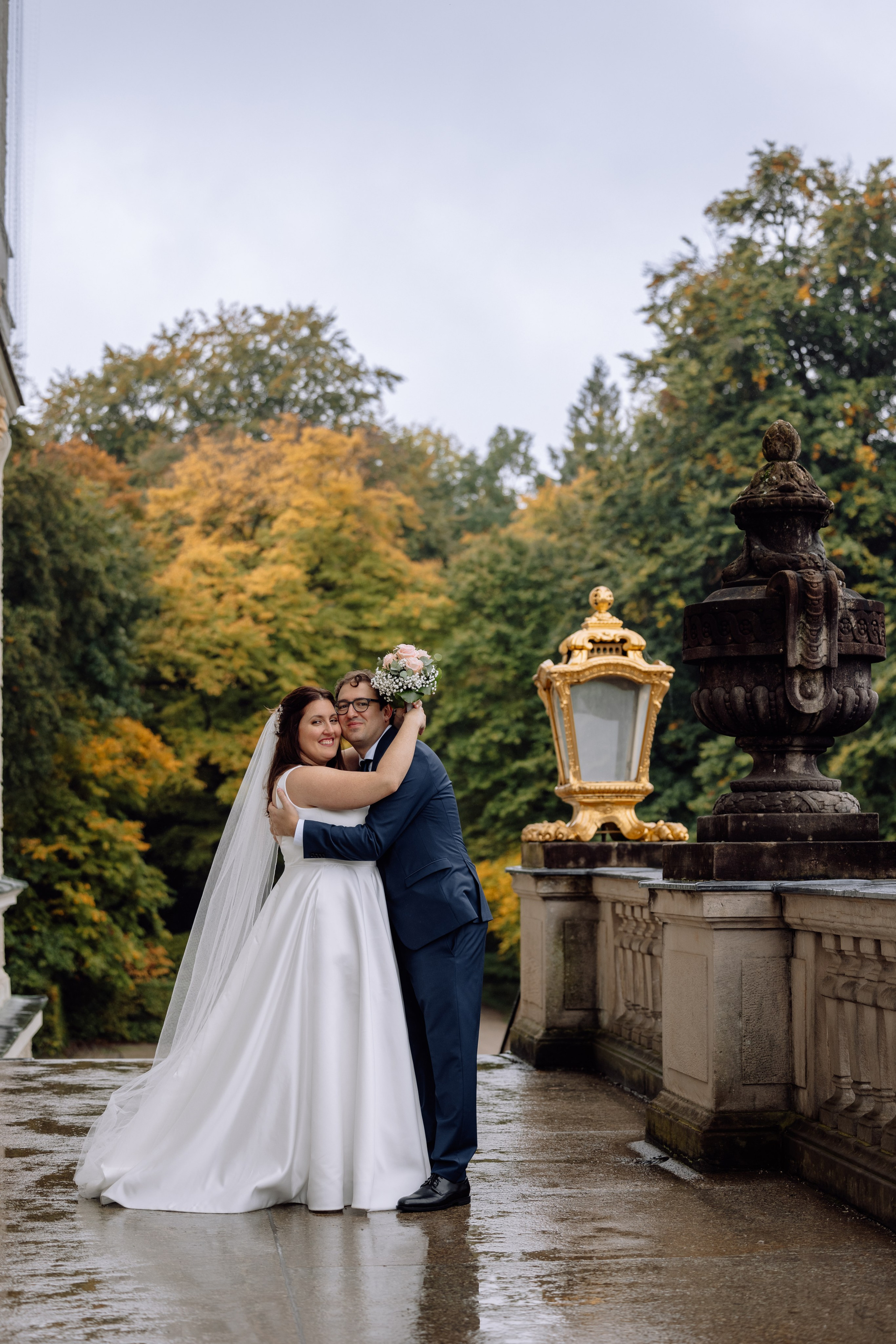 Unsere Reise führte weiter zum Schloss Nymphenburg in München – eine perfekte Kulisse für romantische Paarfotos. Die prachtvolle Architektur des Schlosses, die weitläufigen Parkanlagen und kleinen Details der Umgebung boten unzählige Möglichkeiten für stimmungsvolle Bilder. Selbst ein leichter Regen konnte die Atmosphäre nicht trüben; das diffuse Licht verlieh den Fotos eine verträumte, magische Stimmung.