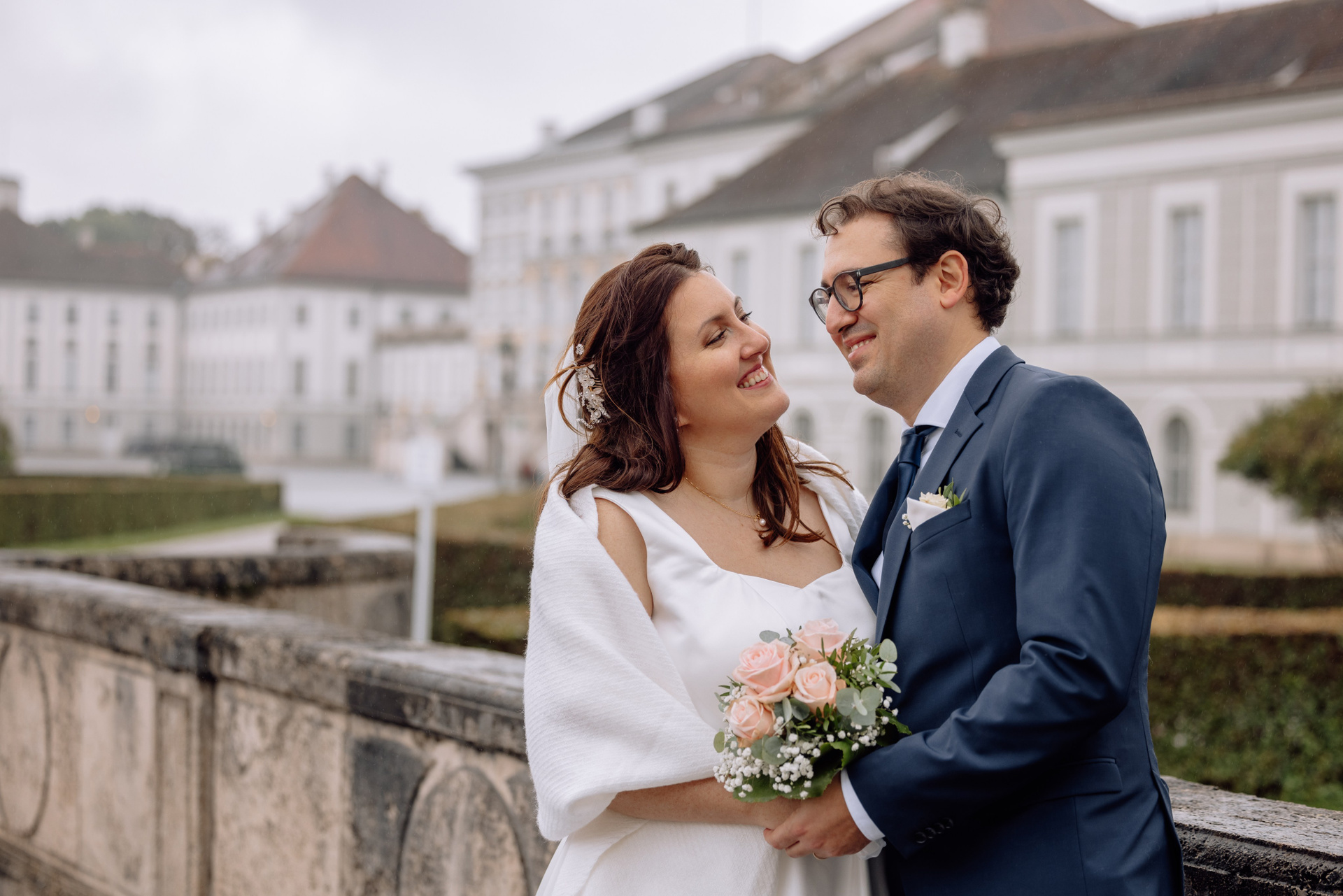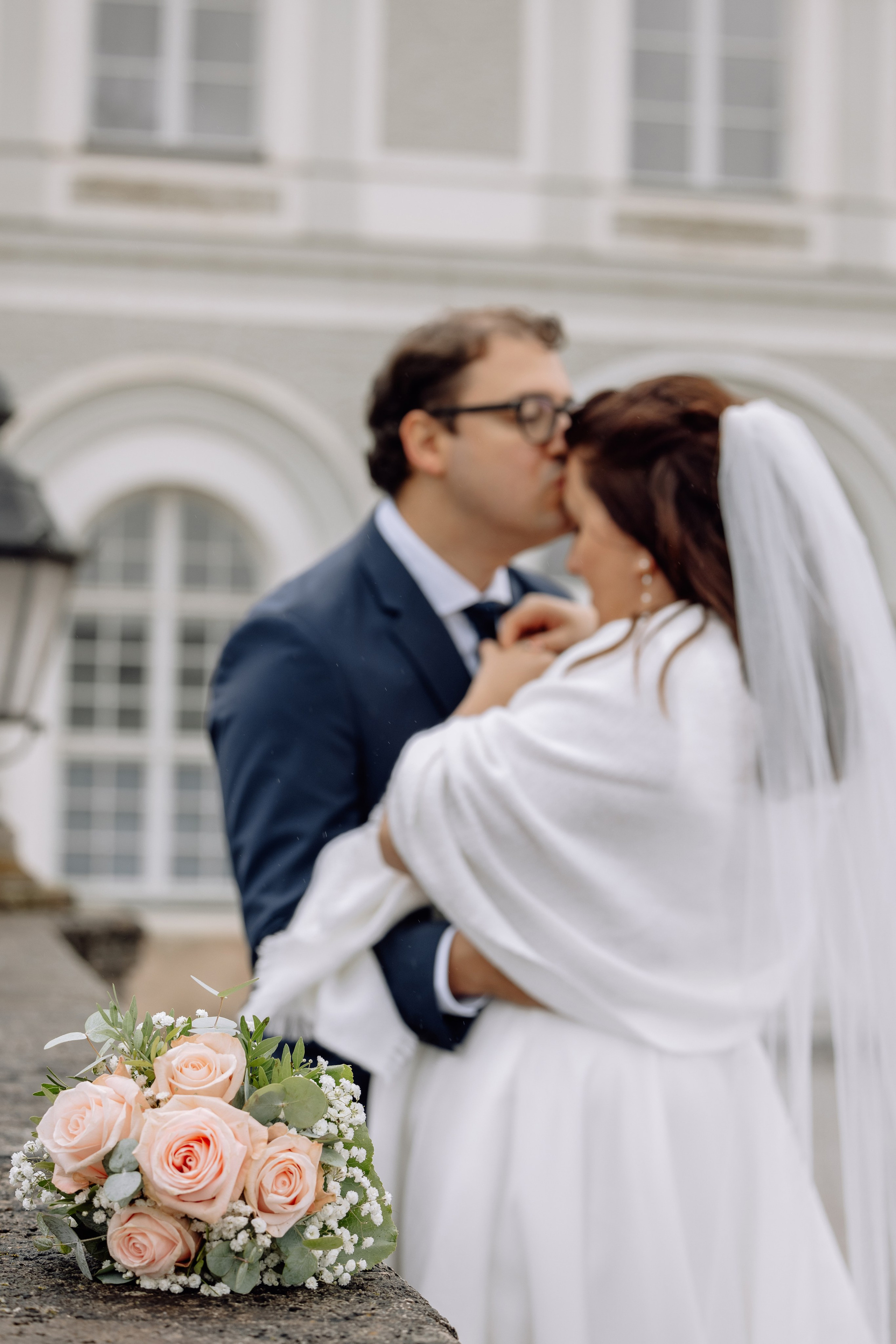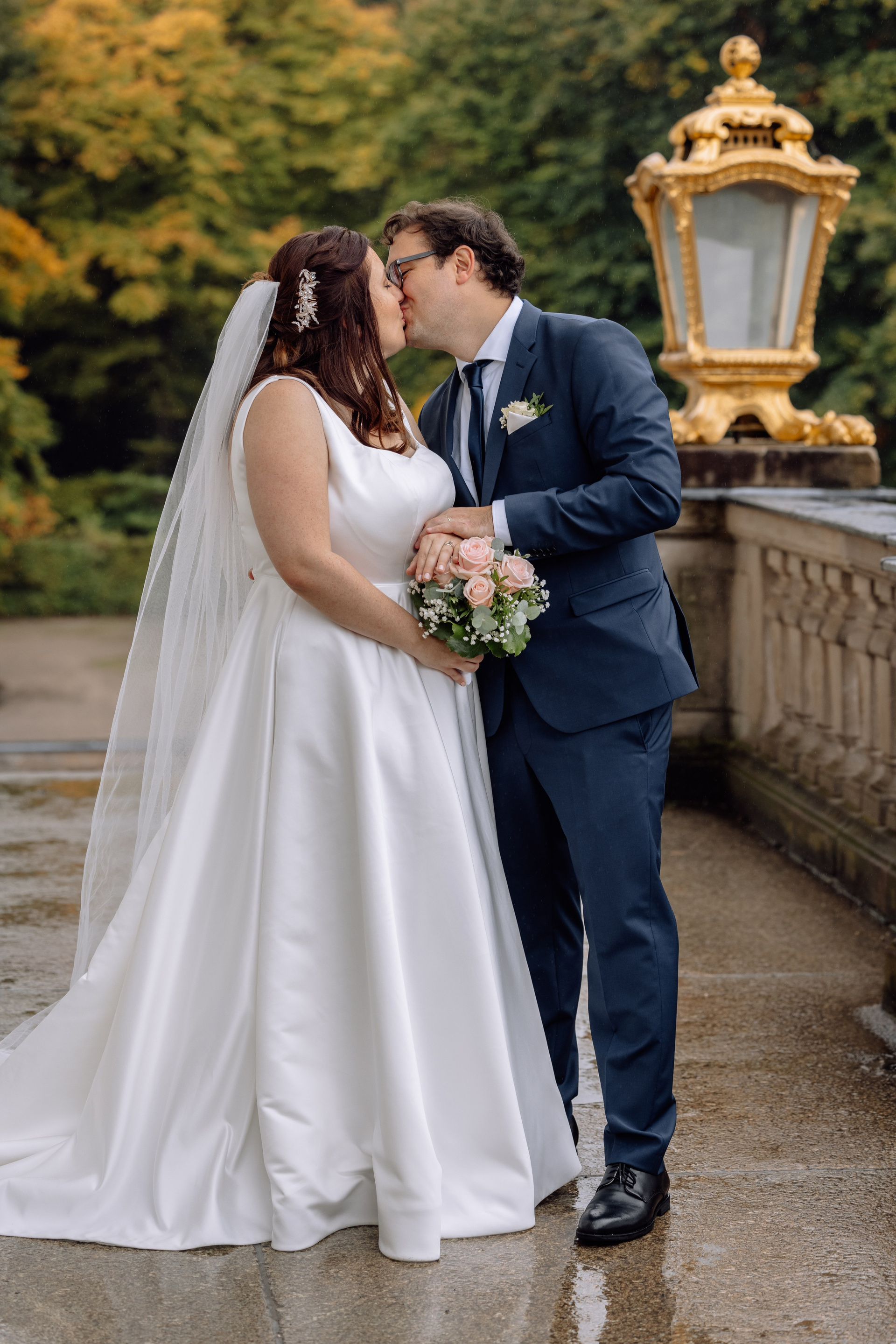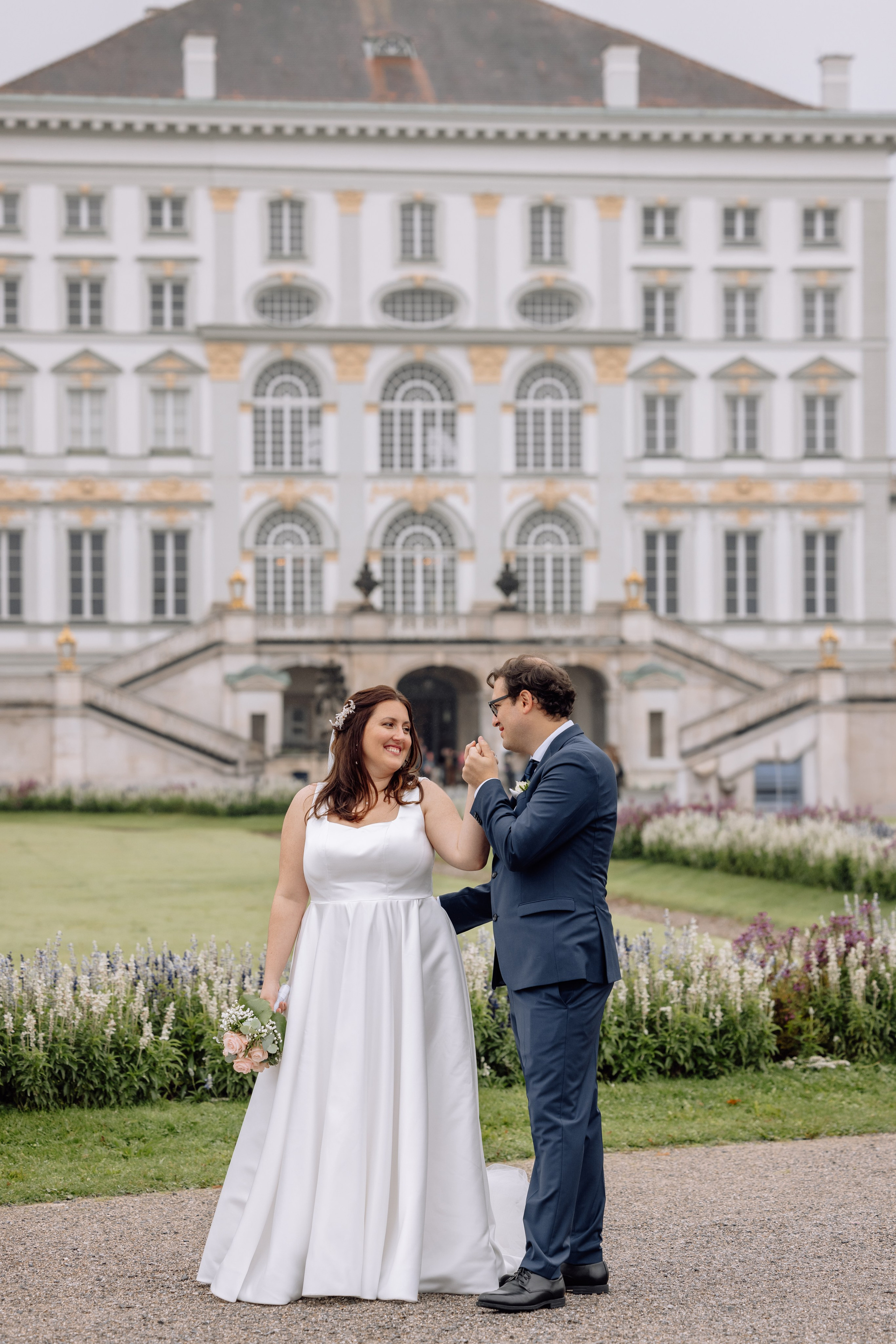 Unsere Reise führte weiter zum Schloss Nymphenburg in München – eine perfekte Kulisse für romantische Paarfotos. Die prachtvolle Architektur des Schlosses, die weitläufigen Parkanlagen und kleinen Details der Umgebung boten unzählige Möglichkeiten für stimmungsvolle Bilder. Selbst ein leichter Regen konnte die Atmosphäre nicht trüben; das diffuse Licht verlieh den Fotos eine verträumte, magische Stimmung.