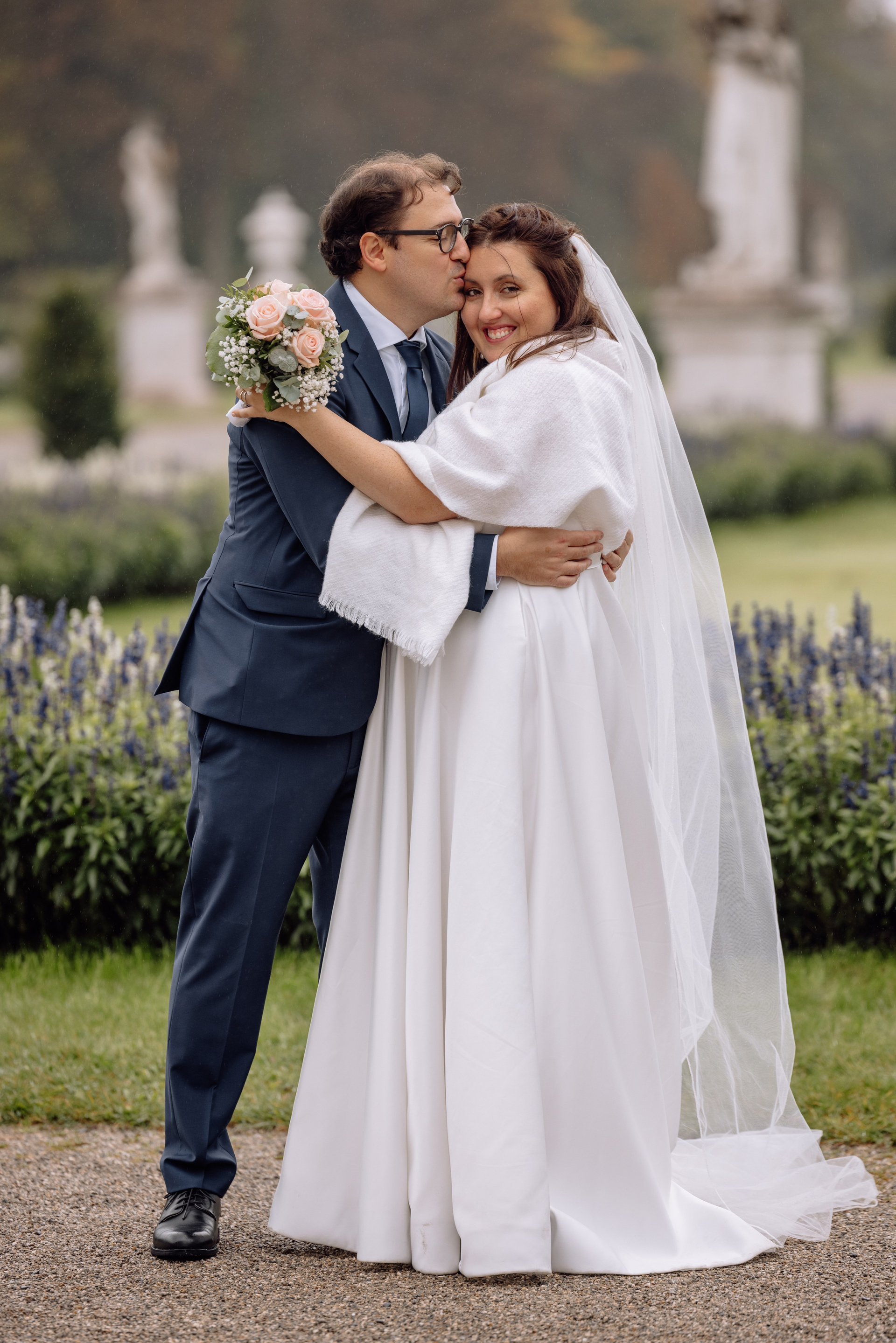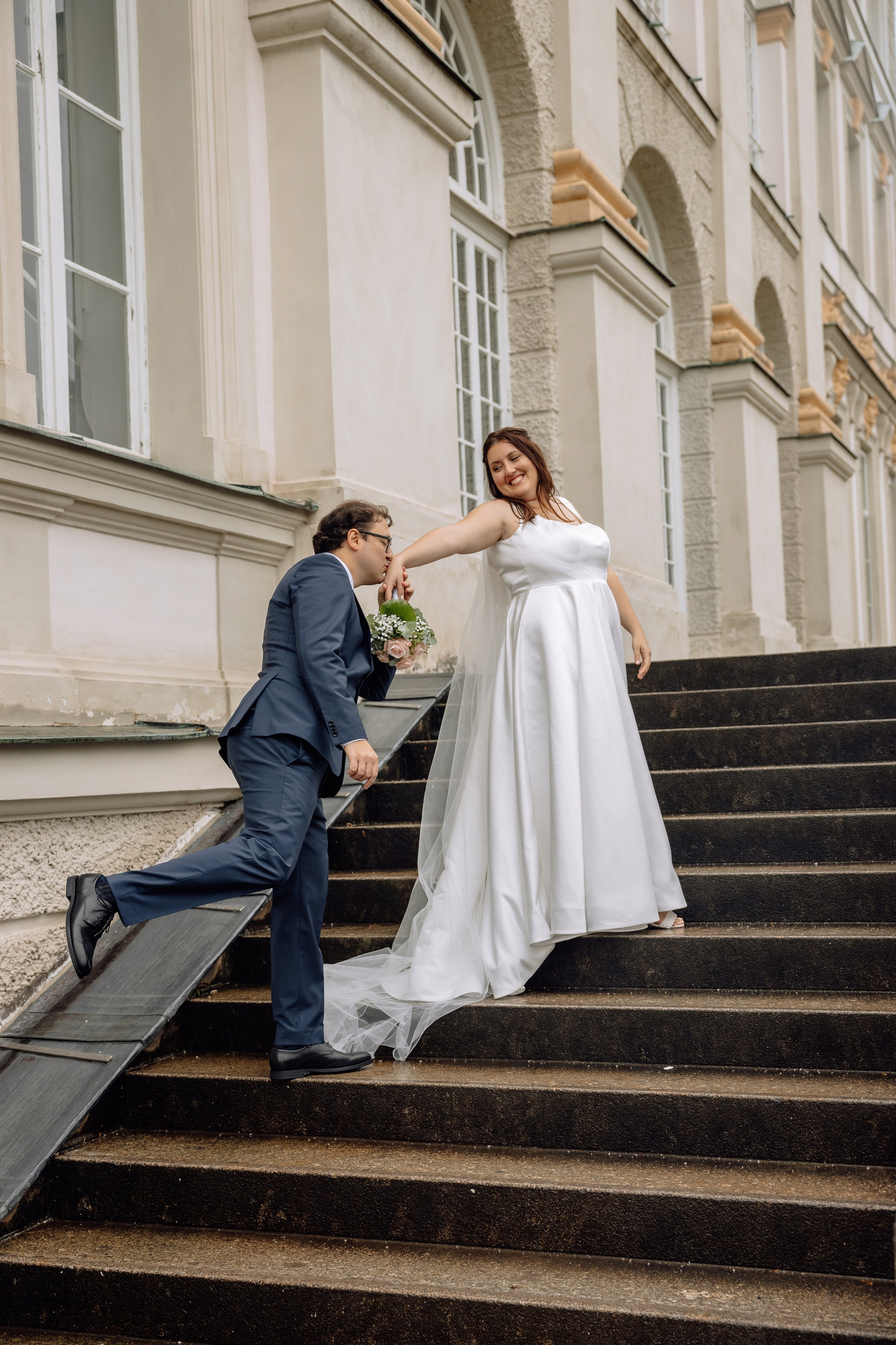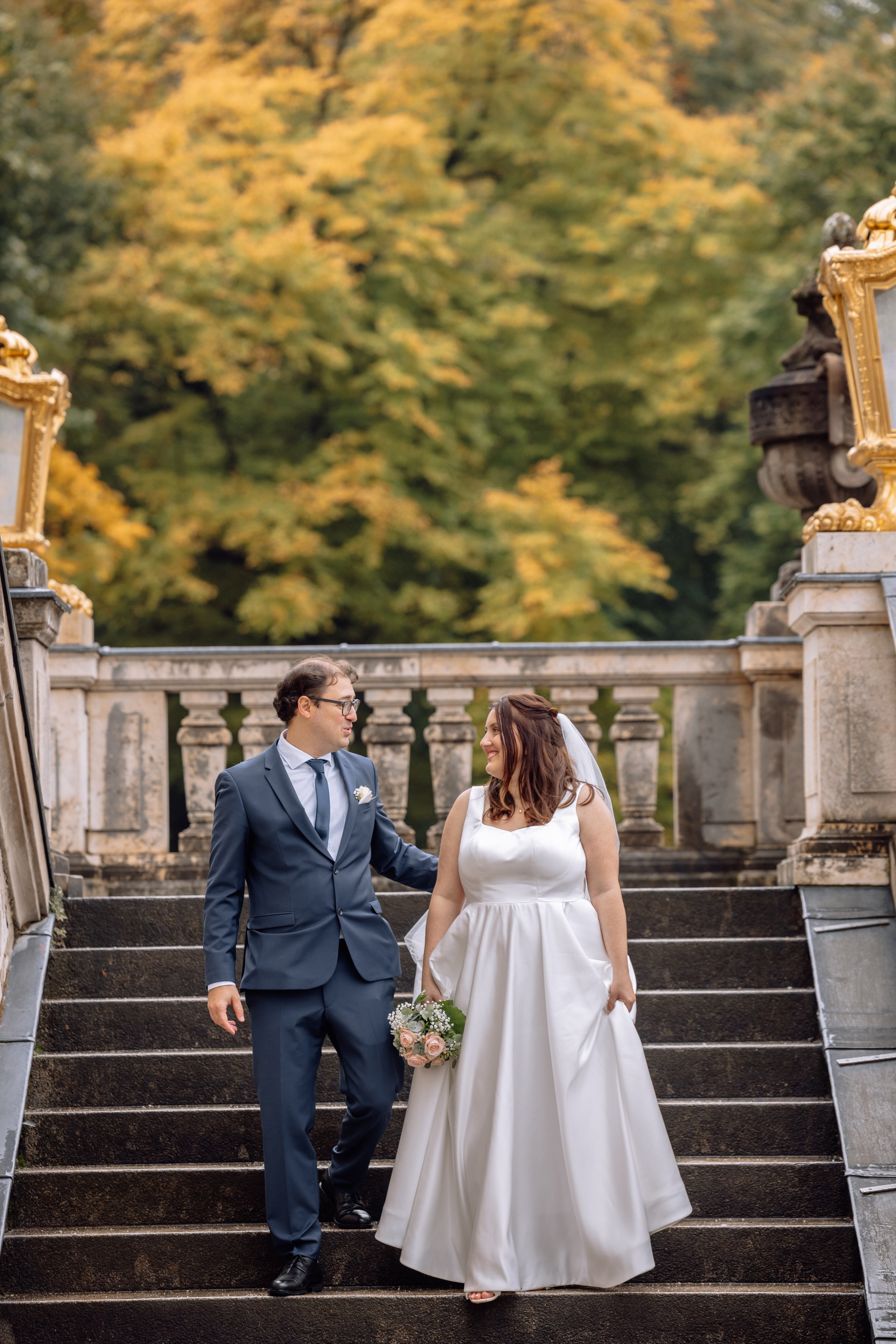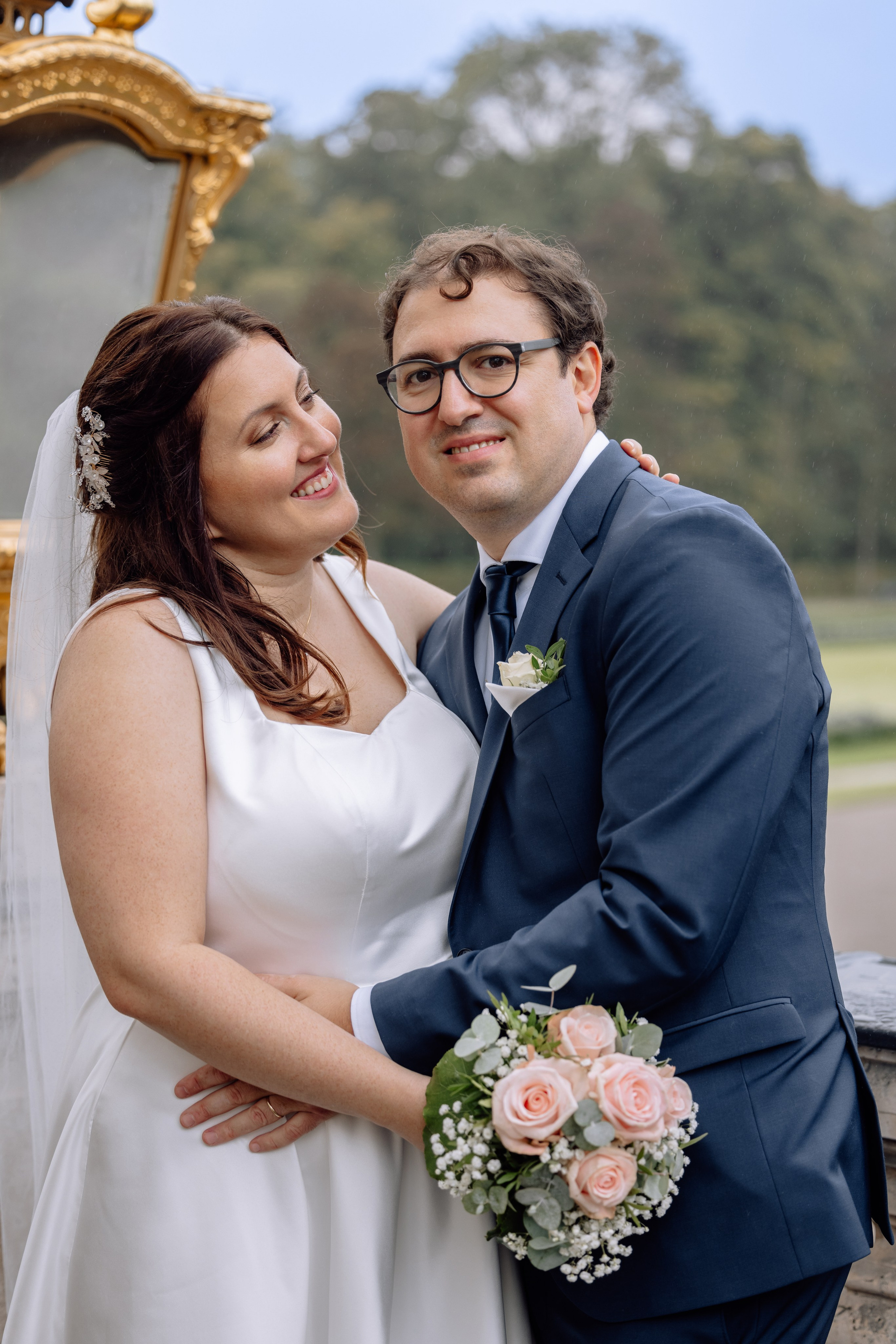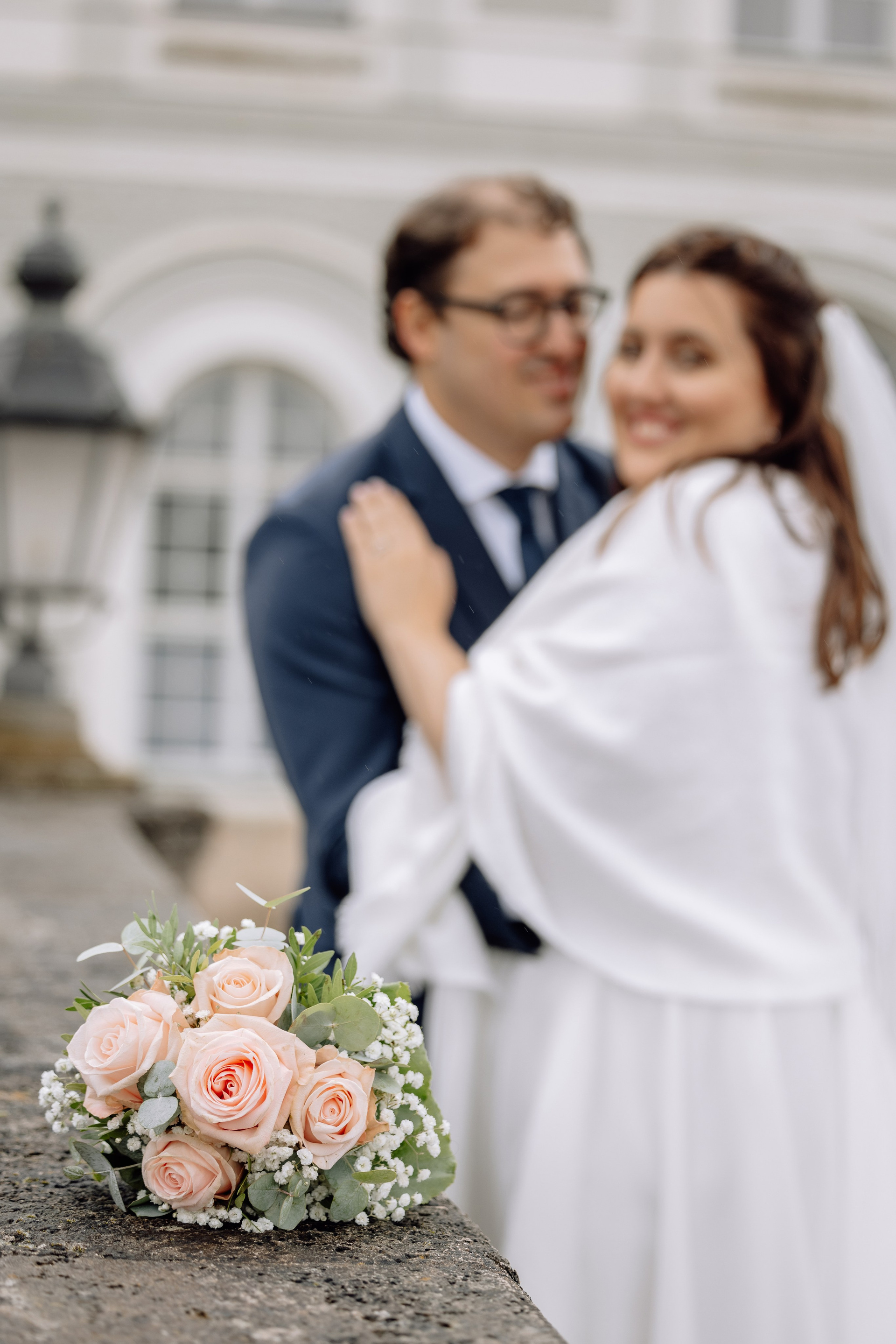 Unsere Reise führte weiter zum Schloss Nymphenburg in München – eine perfekte Kulisse für romantische Paarfotos. Die prachtvolle Architektur des Schlosses, die weitläufigen Parkanlagen und kleinen Details der Umgebung boten unzählige Möglichkeiten für stimmungsvolle Bilder. Selbst ein leichter Regen konnte die Atmosphäre nicht trüben; das diffuse Licht verlieh den Fotos eine verträumte, magische Stimmung.