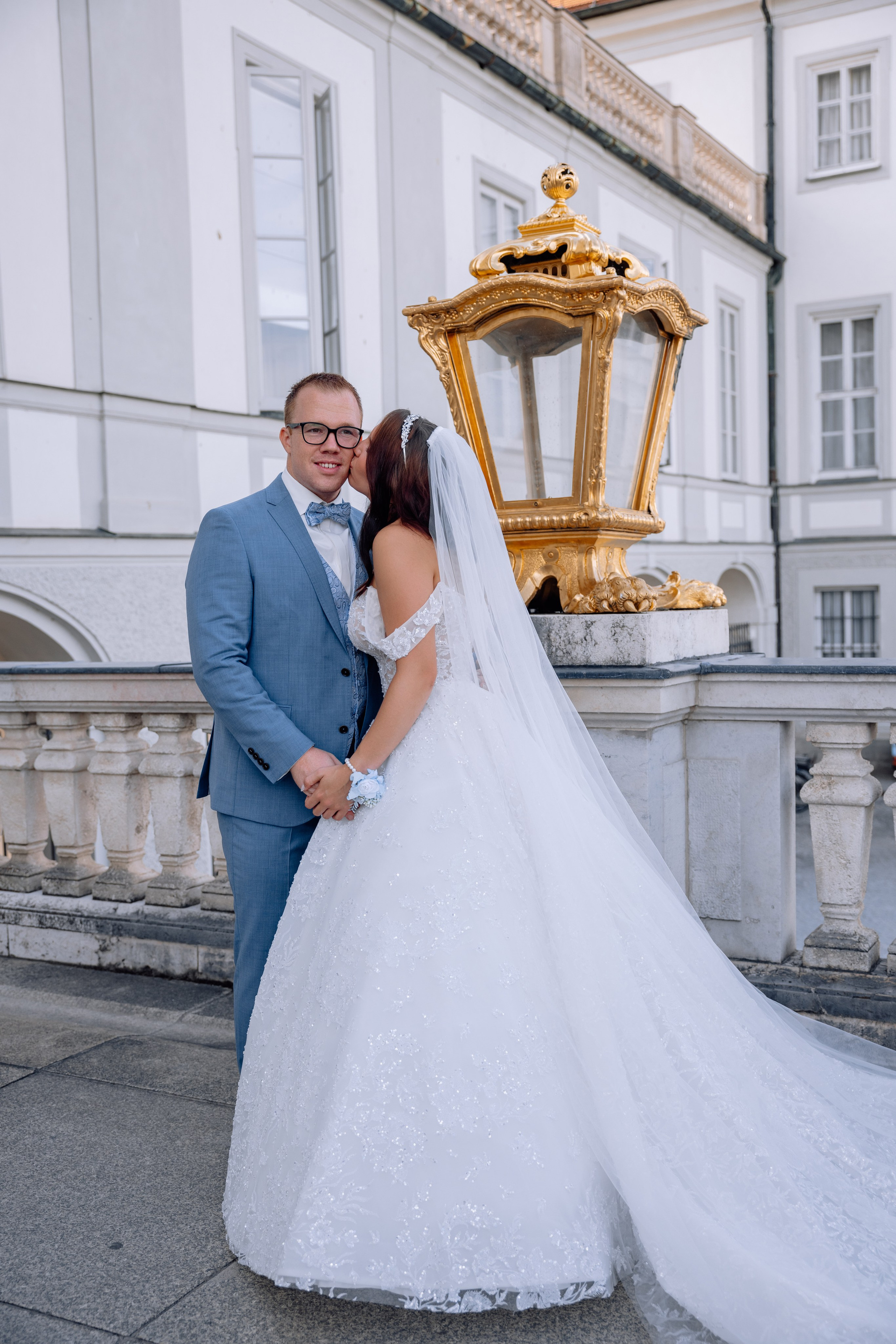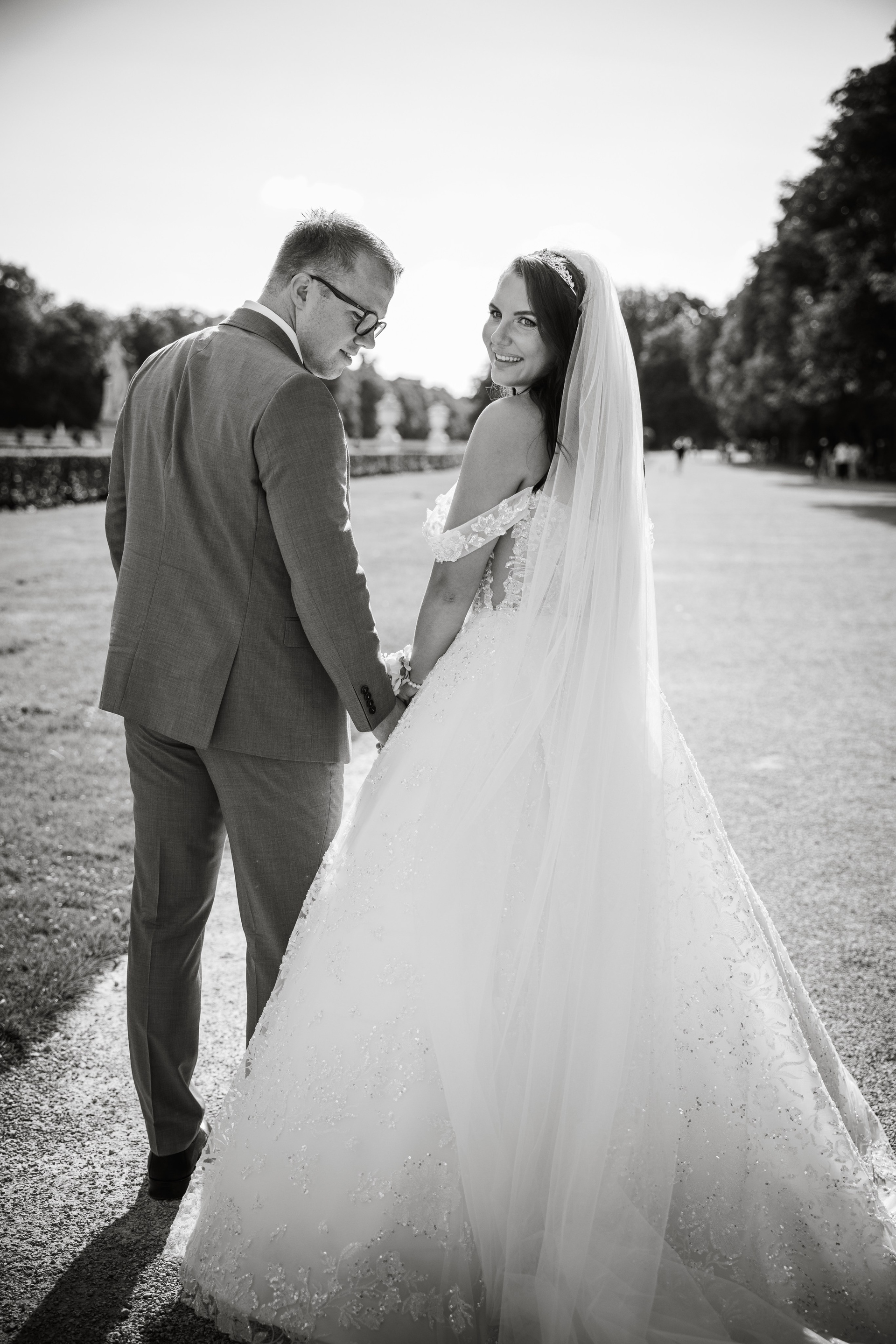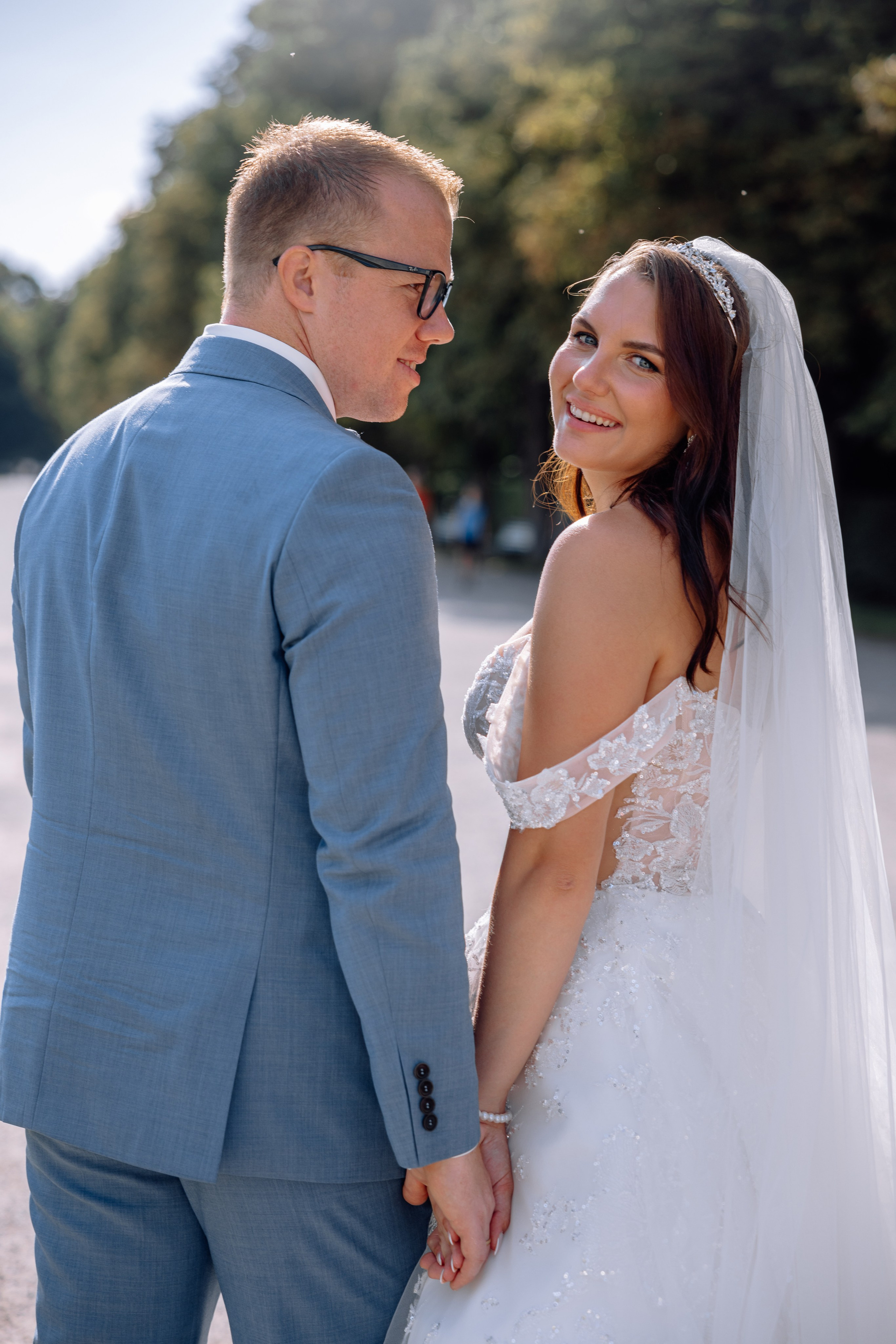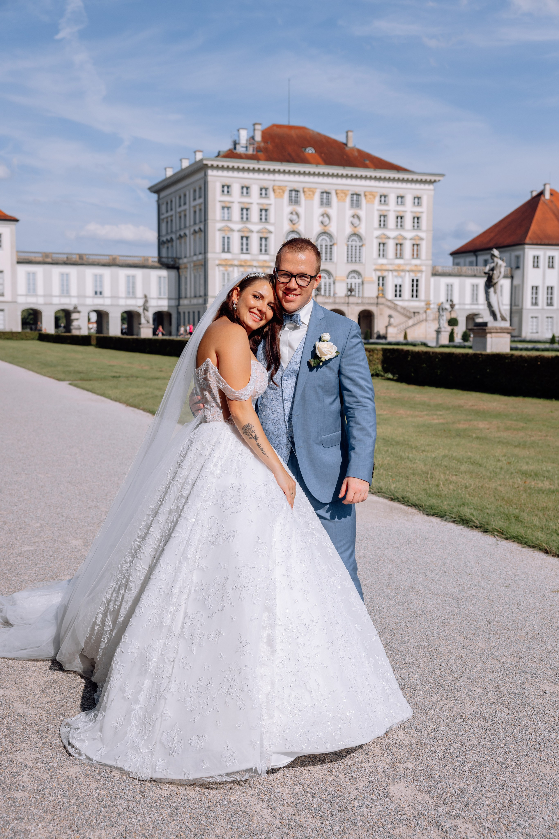 Für die Paarfotos haben wir im Anschluss einen Spaziergang durch den Schlosspark Nymphenburg gemacht. Die barocke Kulisse, die Alleen, der Kanal und die Gartenarchitektur boten eine traumhafte Kulisse für romantische und zeitlose Hochzeitsbilder.