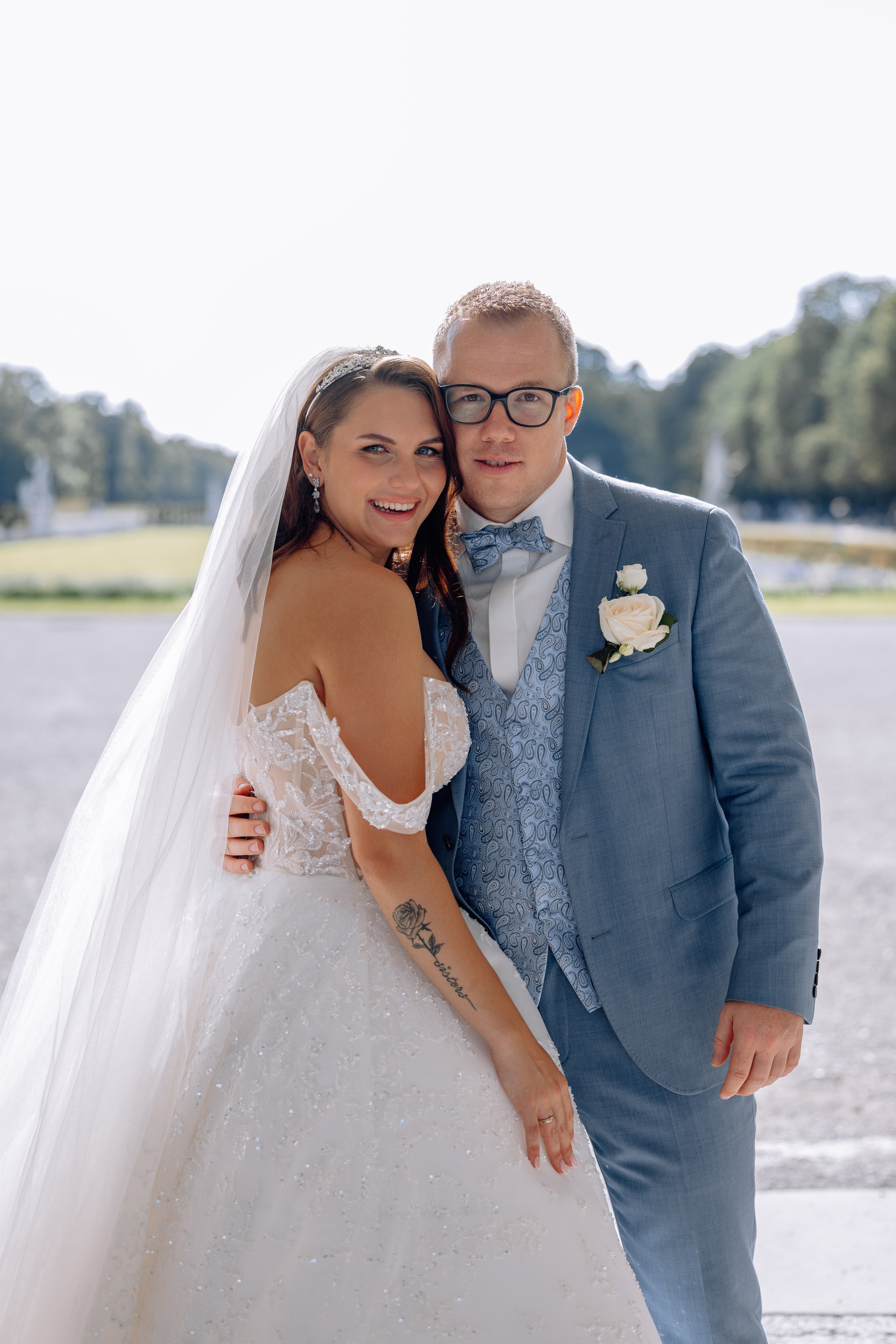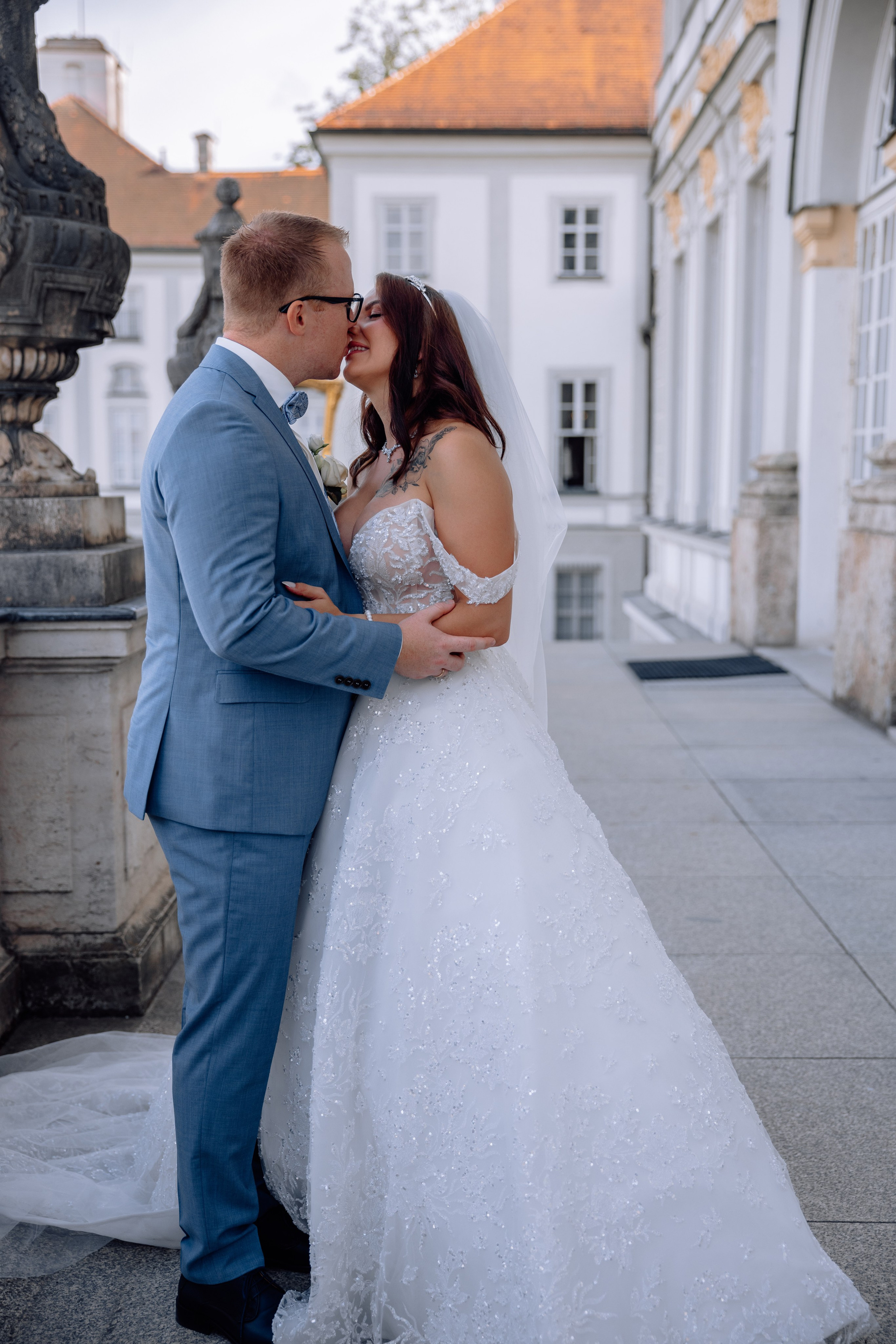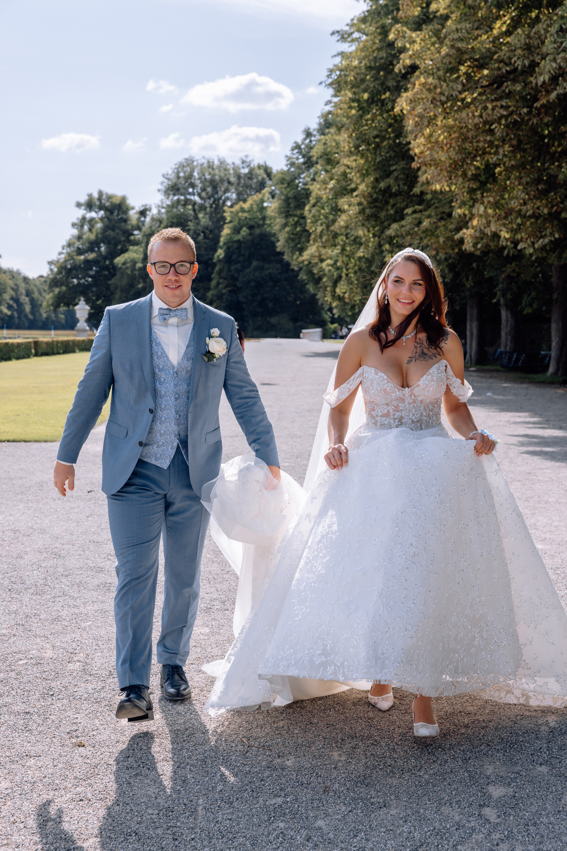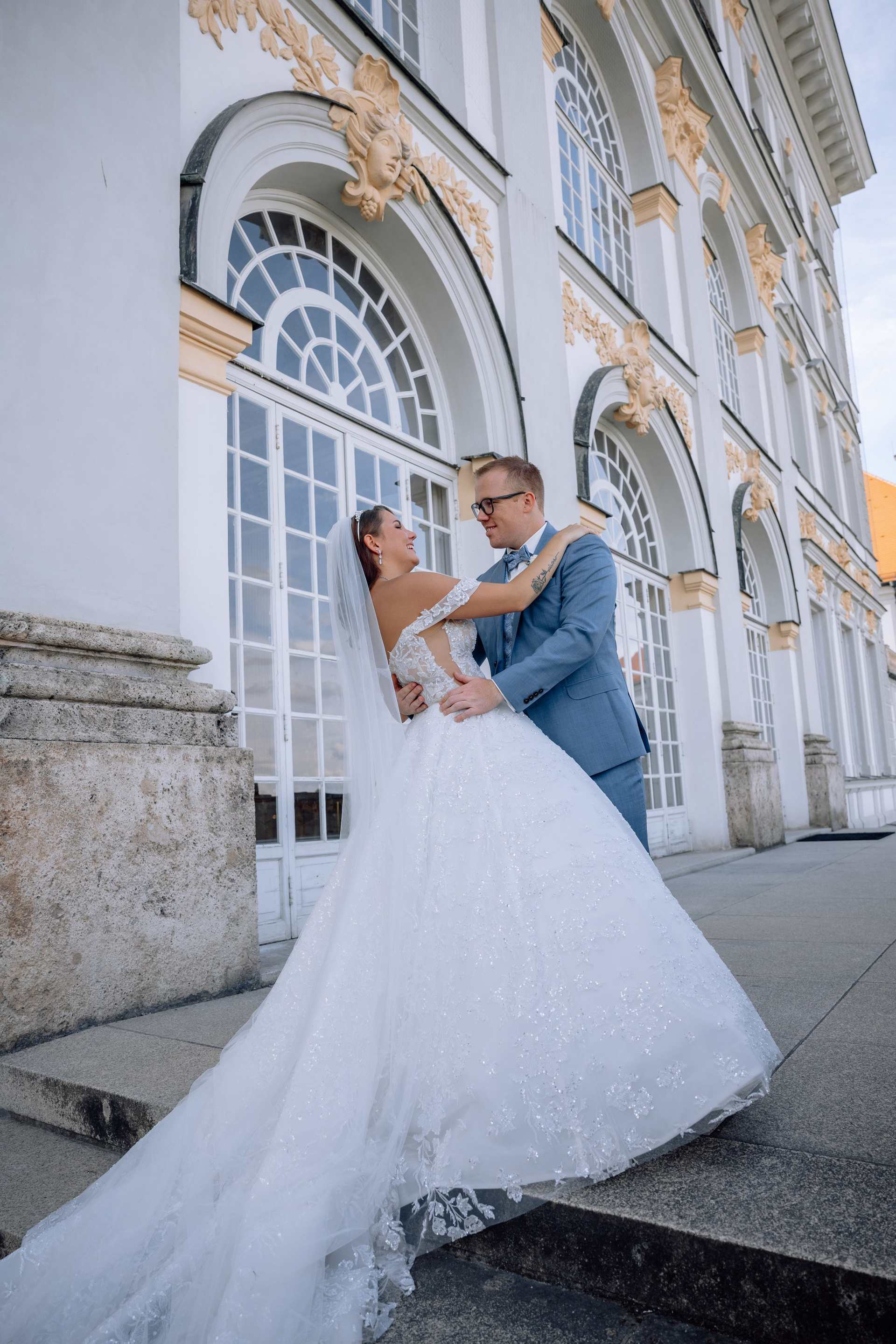 Für die Paarfotos haben wir im Anschluss einen Spaziergang durch den Schlosspark Nymphenburg gemacht. Die barocke Kulisse, die Alleen, der Kanal und die Gartenarchitektur boten eine traumhafte Kulisse für romantische und zeitlose Hochzeitsbilder.