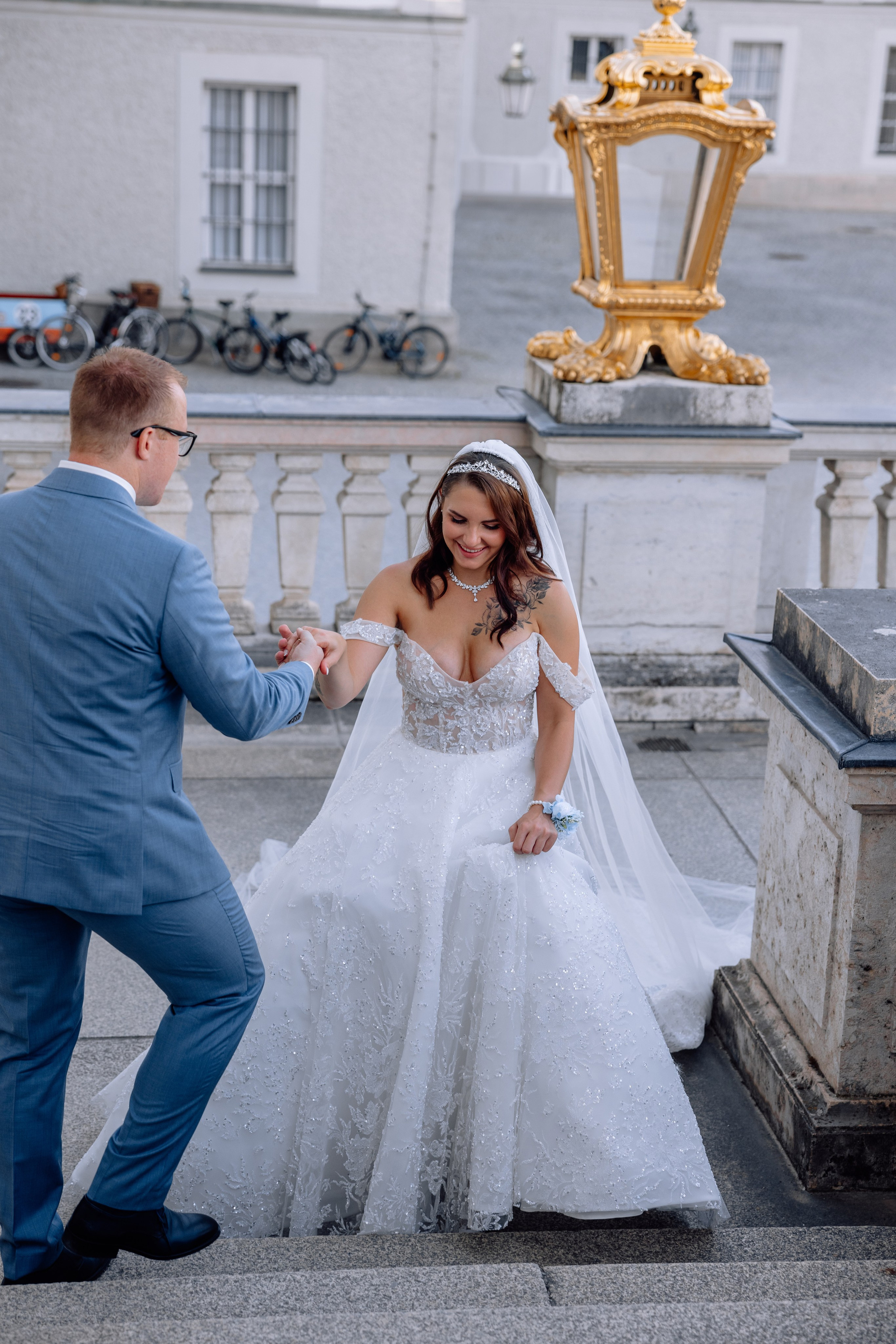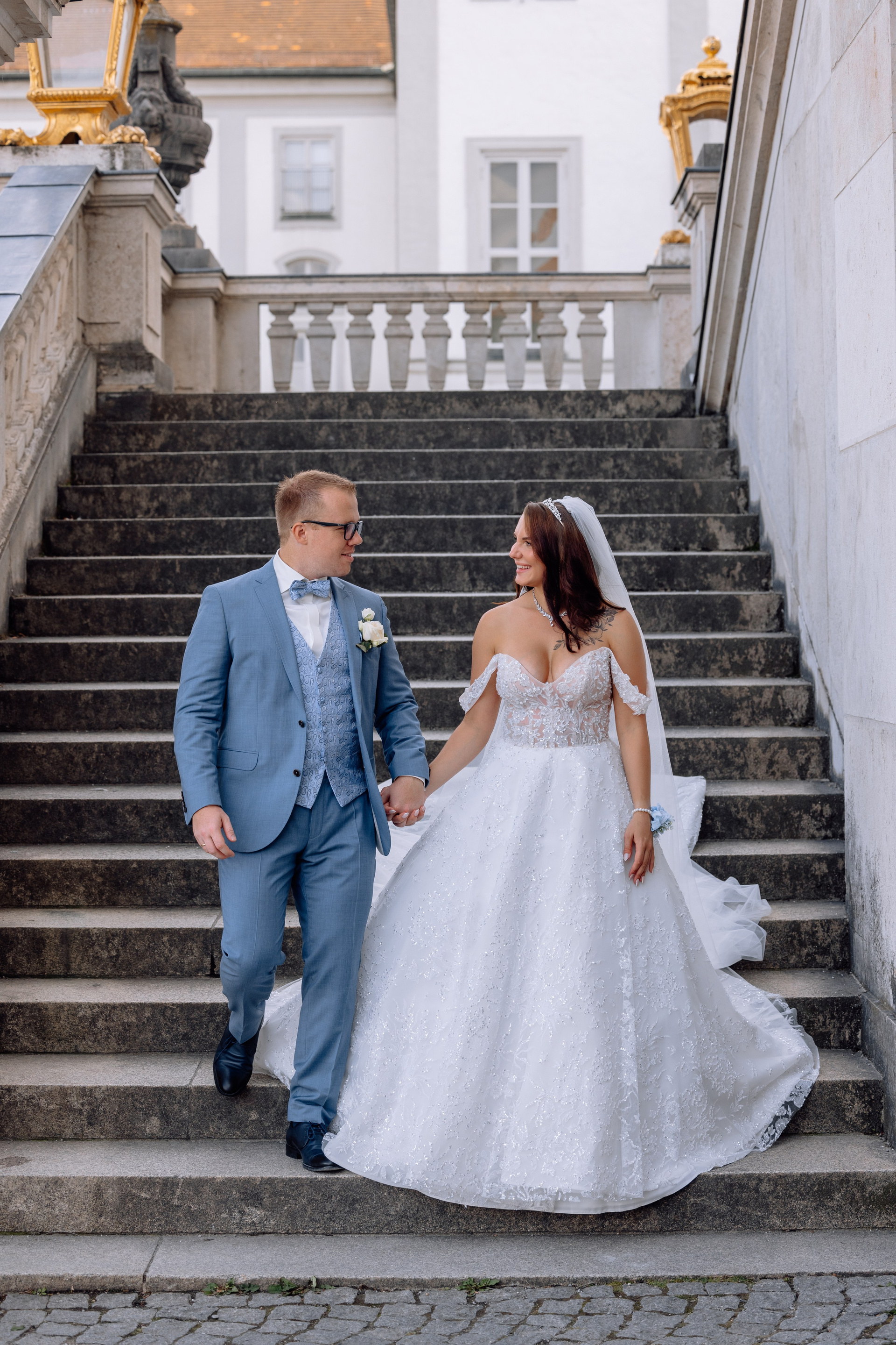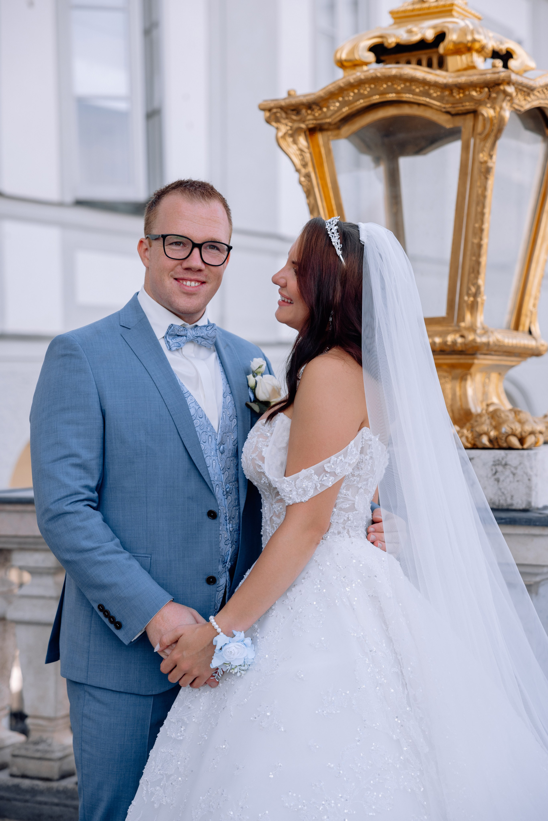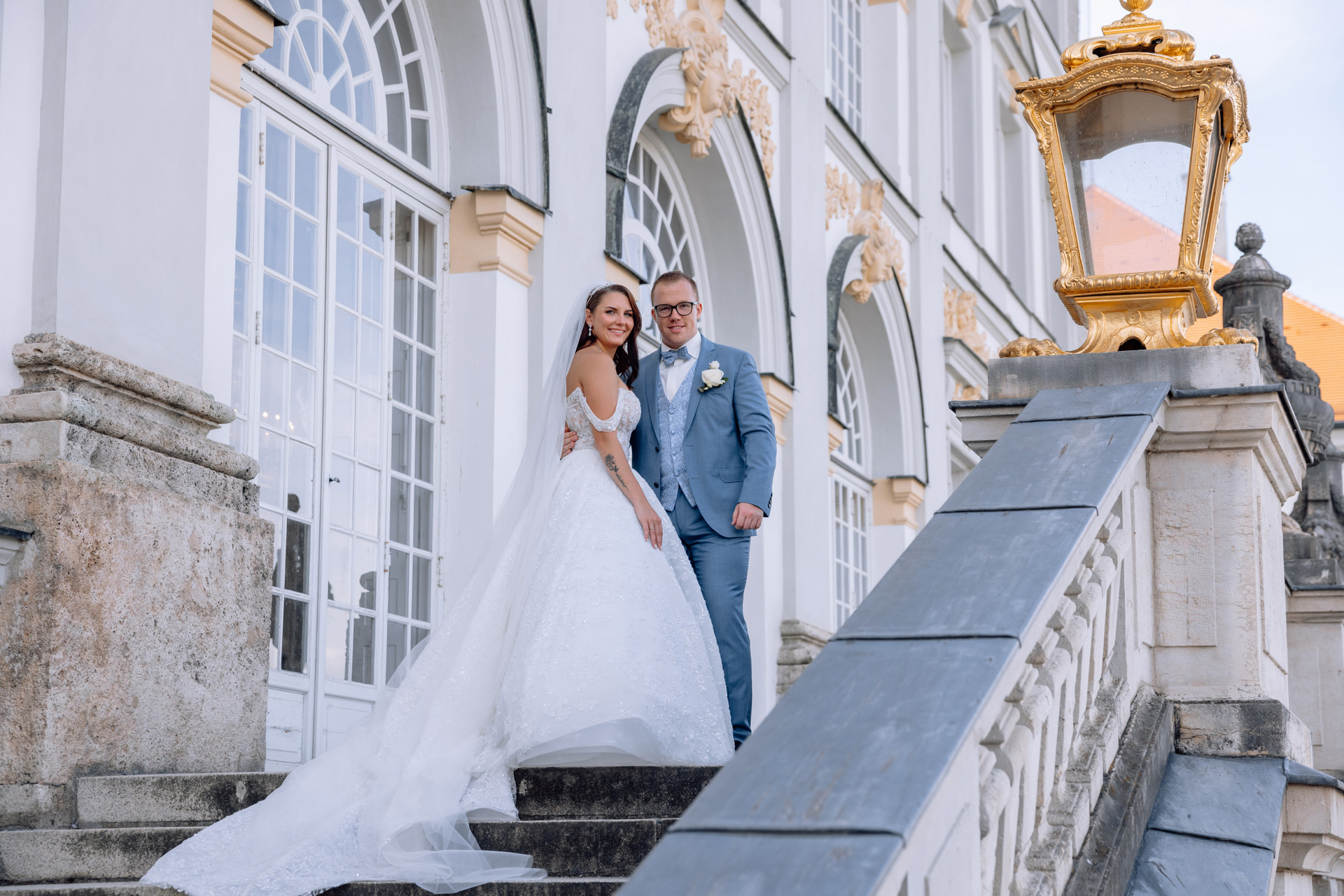 Für die Paarfotos haben wir im Anschluss einen Spaziergang durch den Schlosspark Nymphenburg gemacht. Die barocke Kulisse, die Alleen, der Kanal und die Gartenarchitektur boten eine traumhafte Kulisse für romantische und zeitlose Hochzeitsbilder.