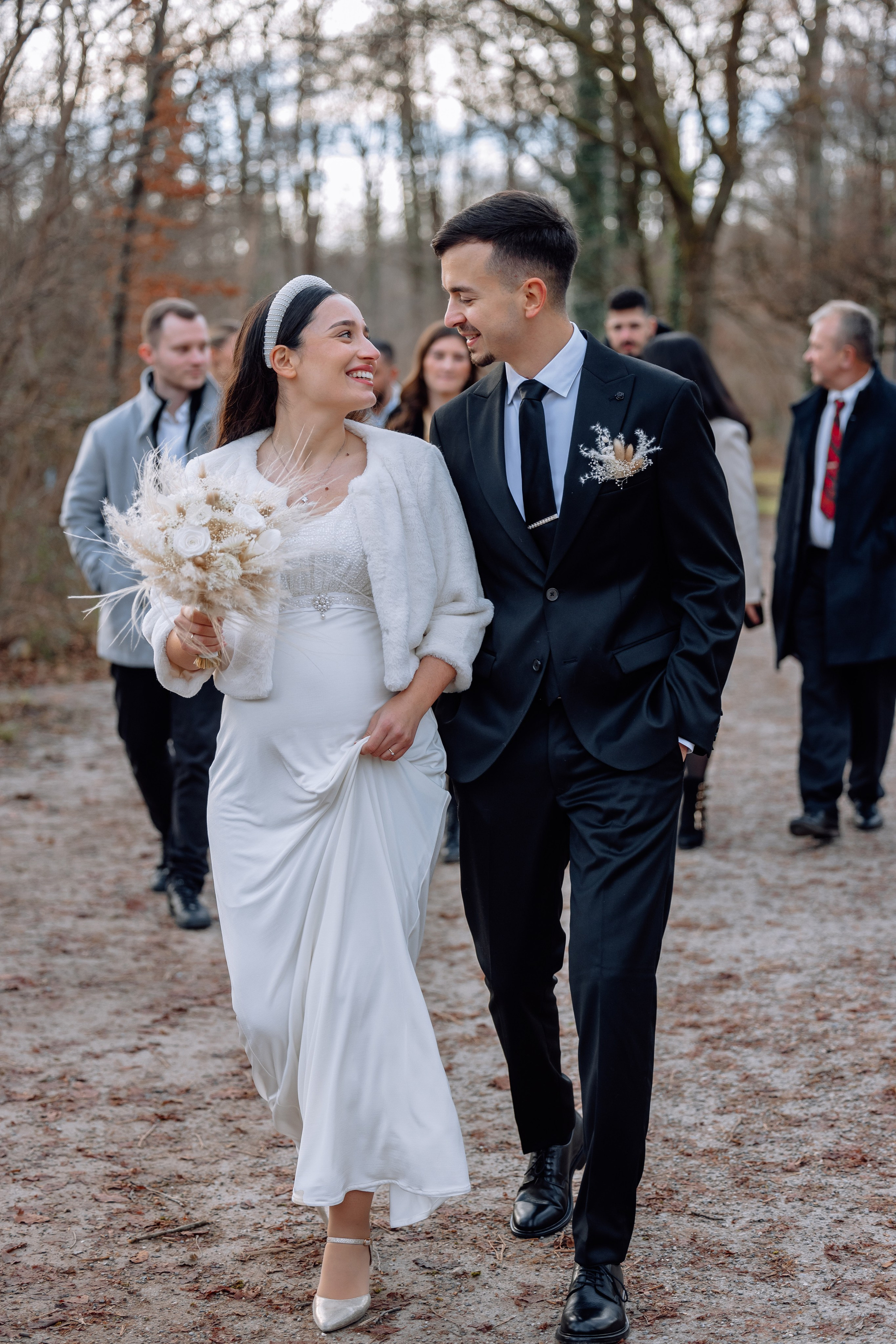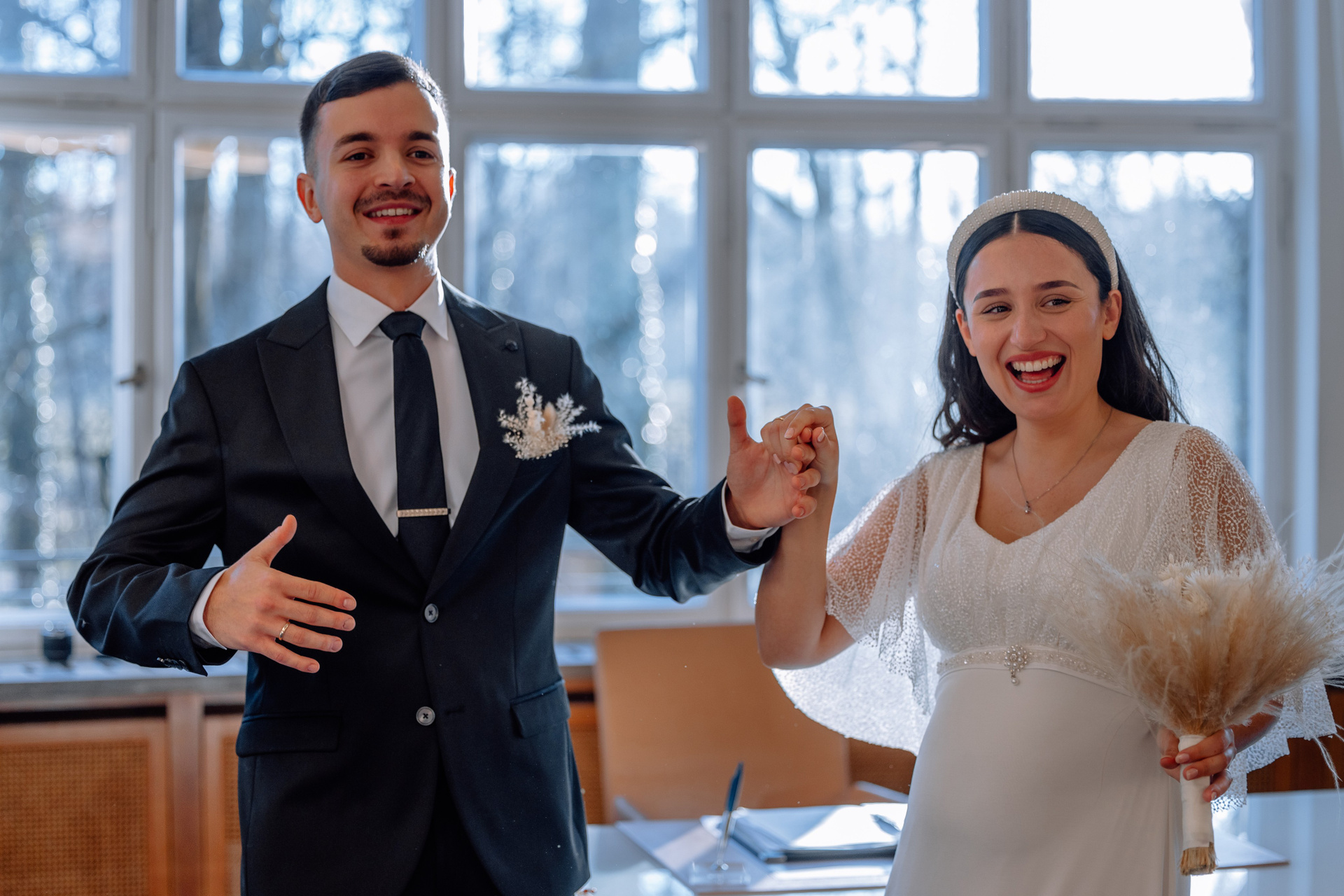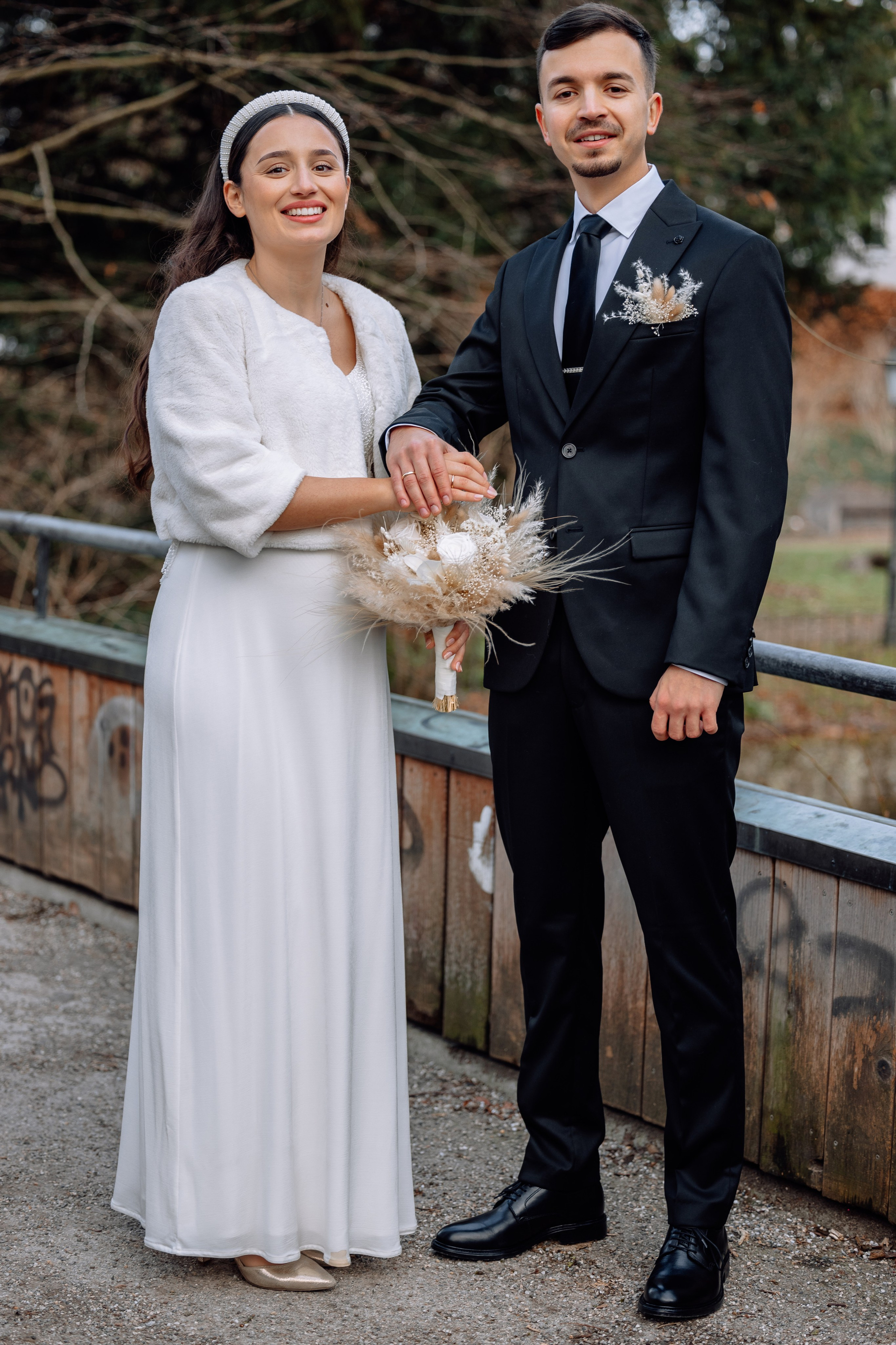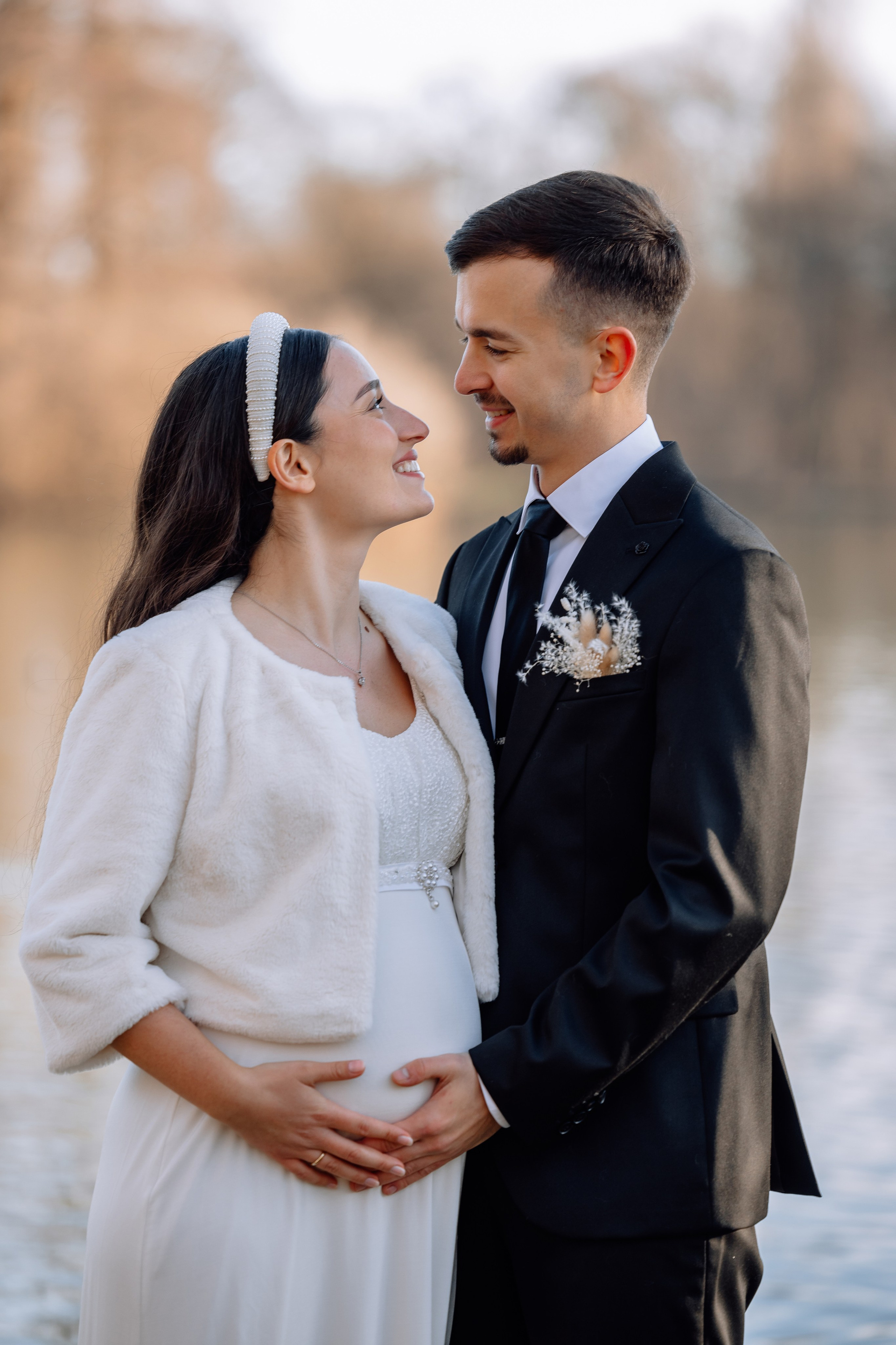 Herbst in Schwabing: Diese Hochzeit im Standesamt Mandlstraße in München war etwas ganz Besonderes. Ein junges Brautpaar, eine wunderschöne schwangere Braut und eine intime Zeremonie in einem der beliebtesten Standesämter Münchens. Nach dem Ja-Wort entstanden romantische Hochzeitsfotos im Englischen Garten – sogar mit eleganten weißen Schwänen, die diesem Tag eine märchenhafte Note verliehen.