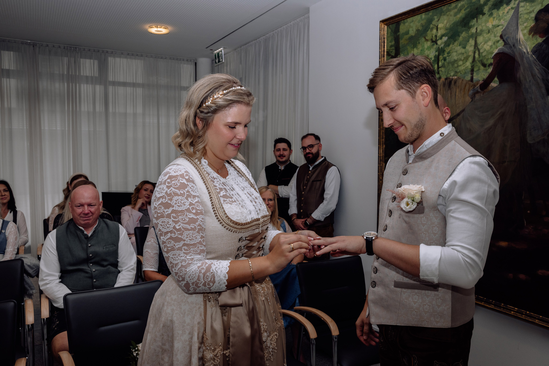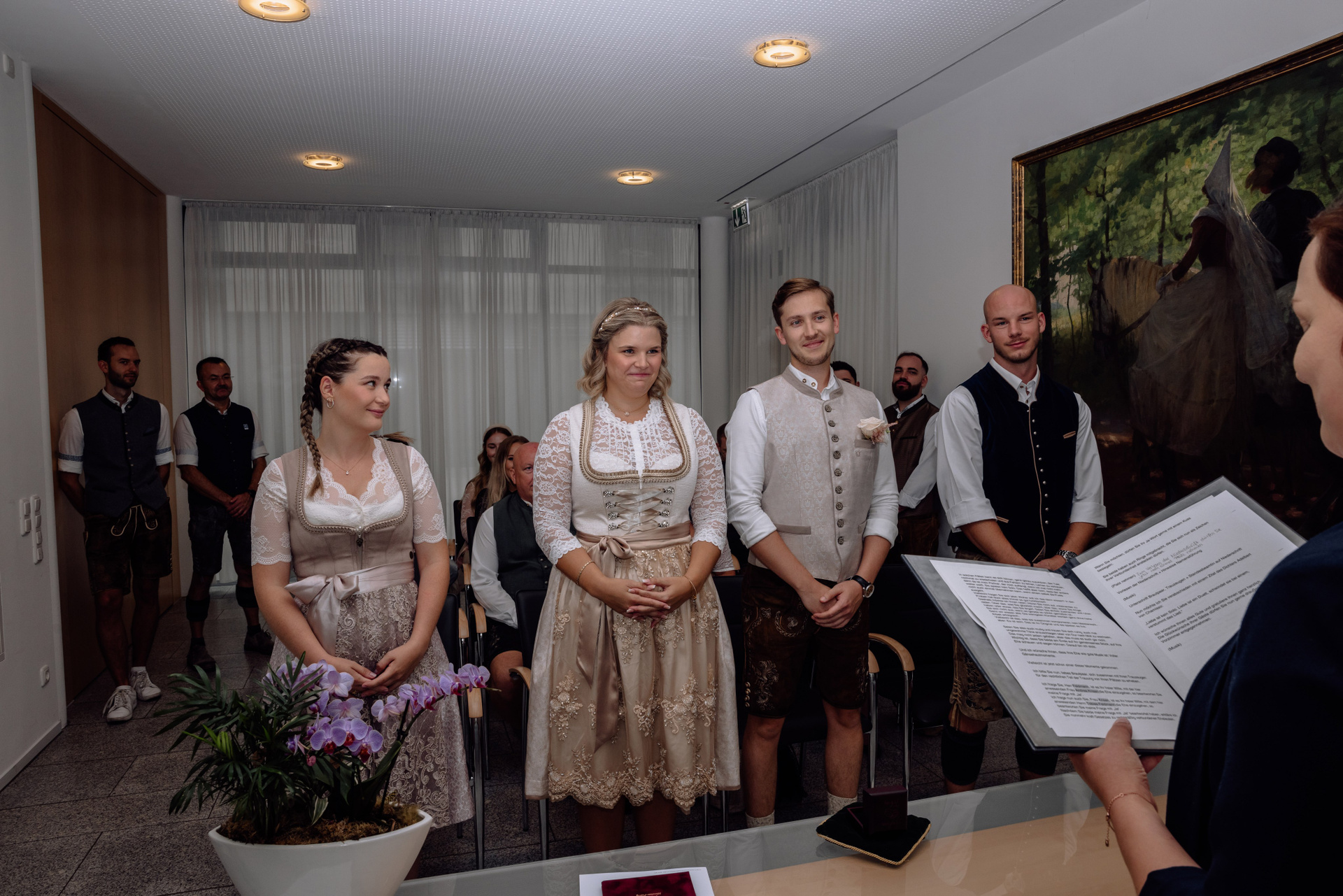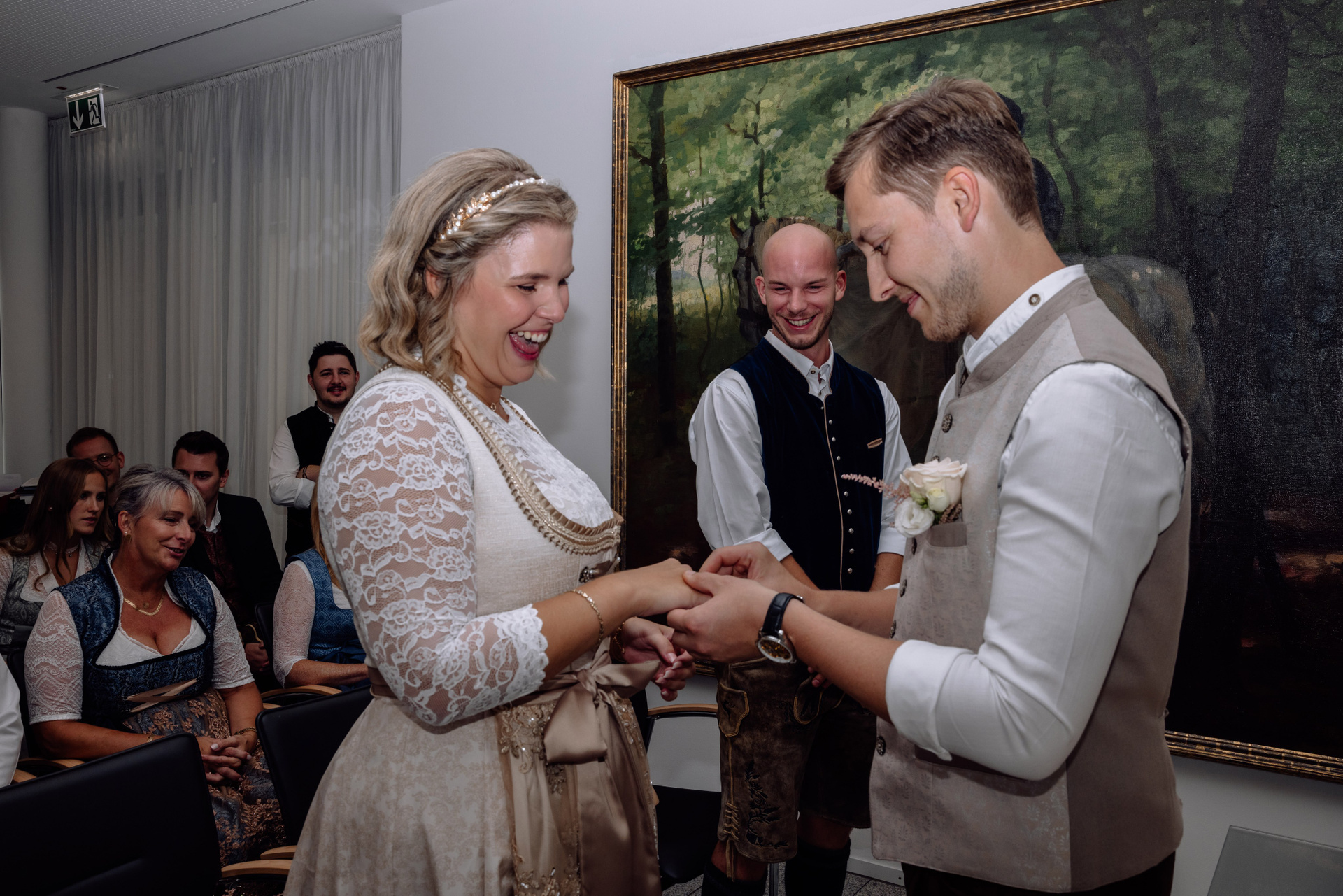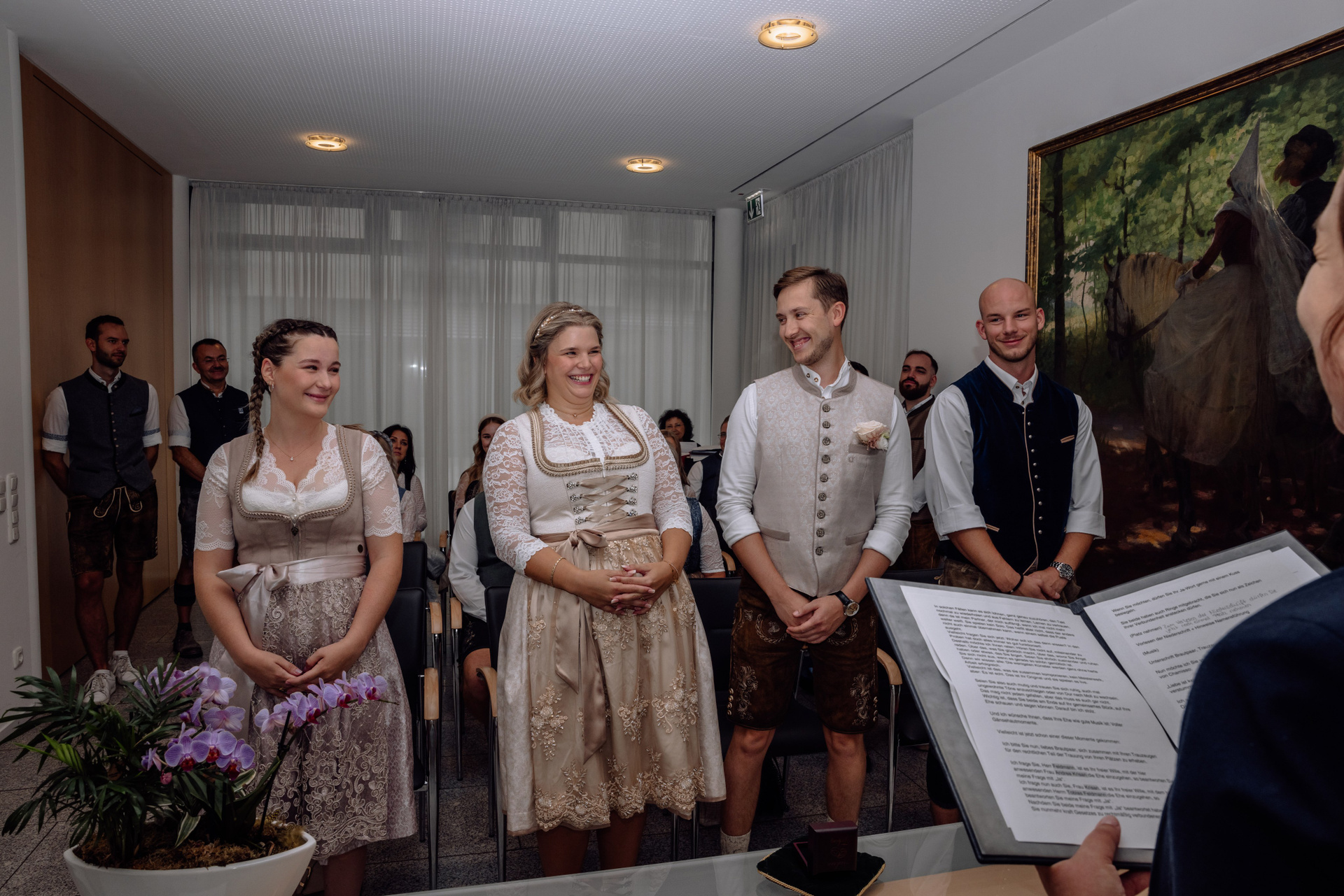 Diese Kombination gehört zu meinen absoluten Favoriten. Bei diesem Shooting begann der Tag mit der standesamtlichen Trauung im schönen Standesamt Pasing – ein stilvoller, heller Ort mit persönlicher Atmosphäre.