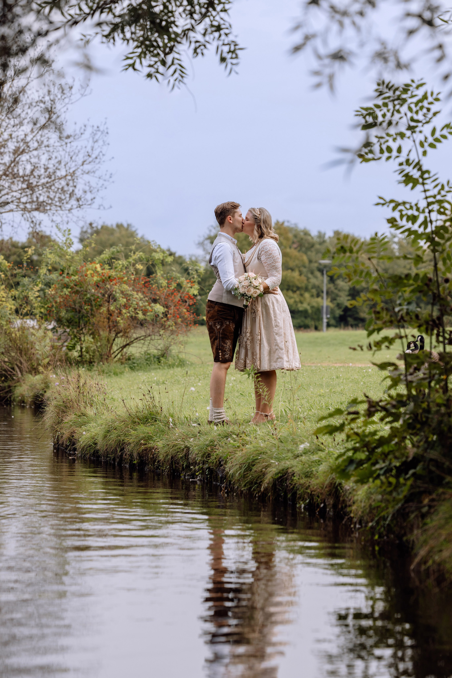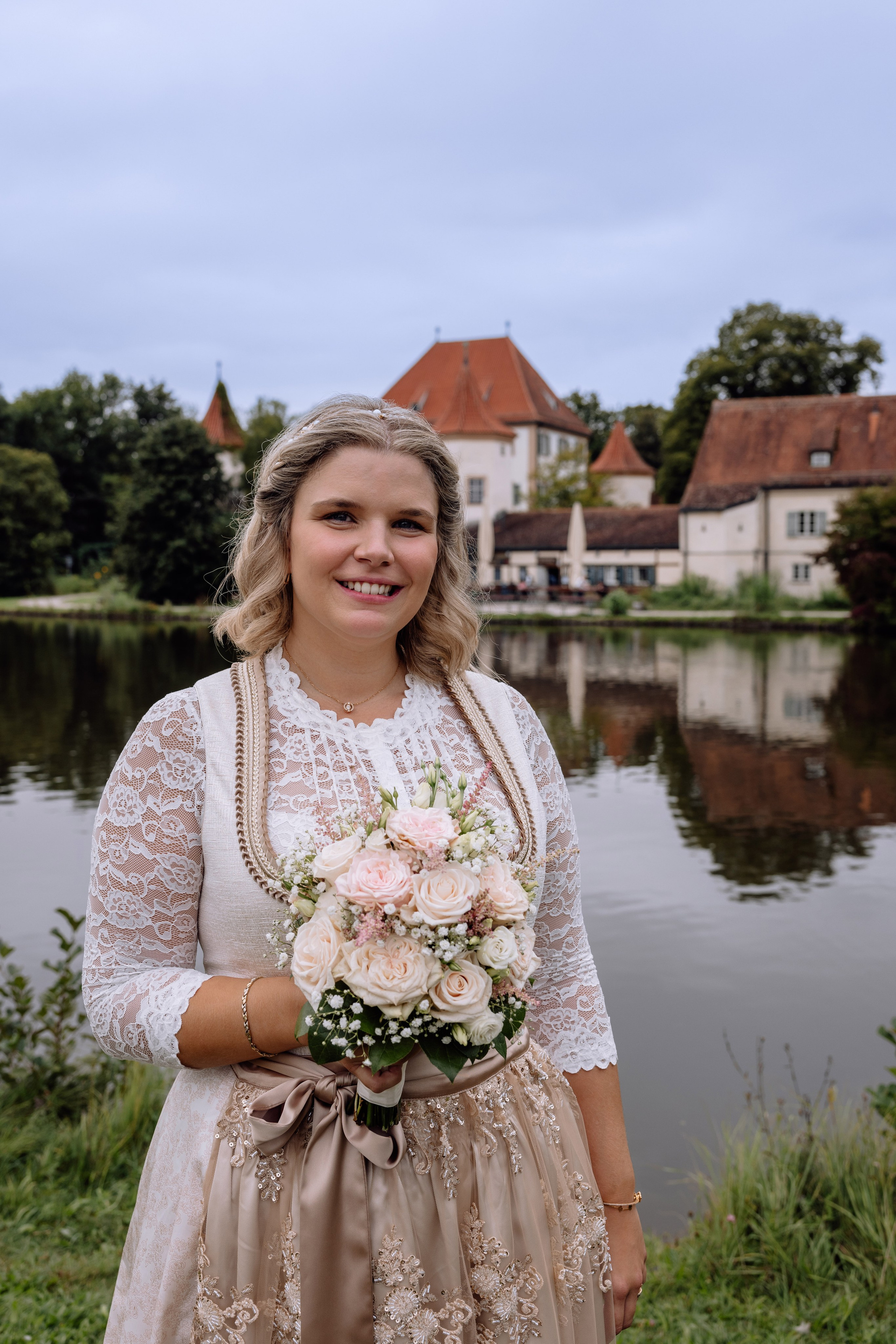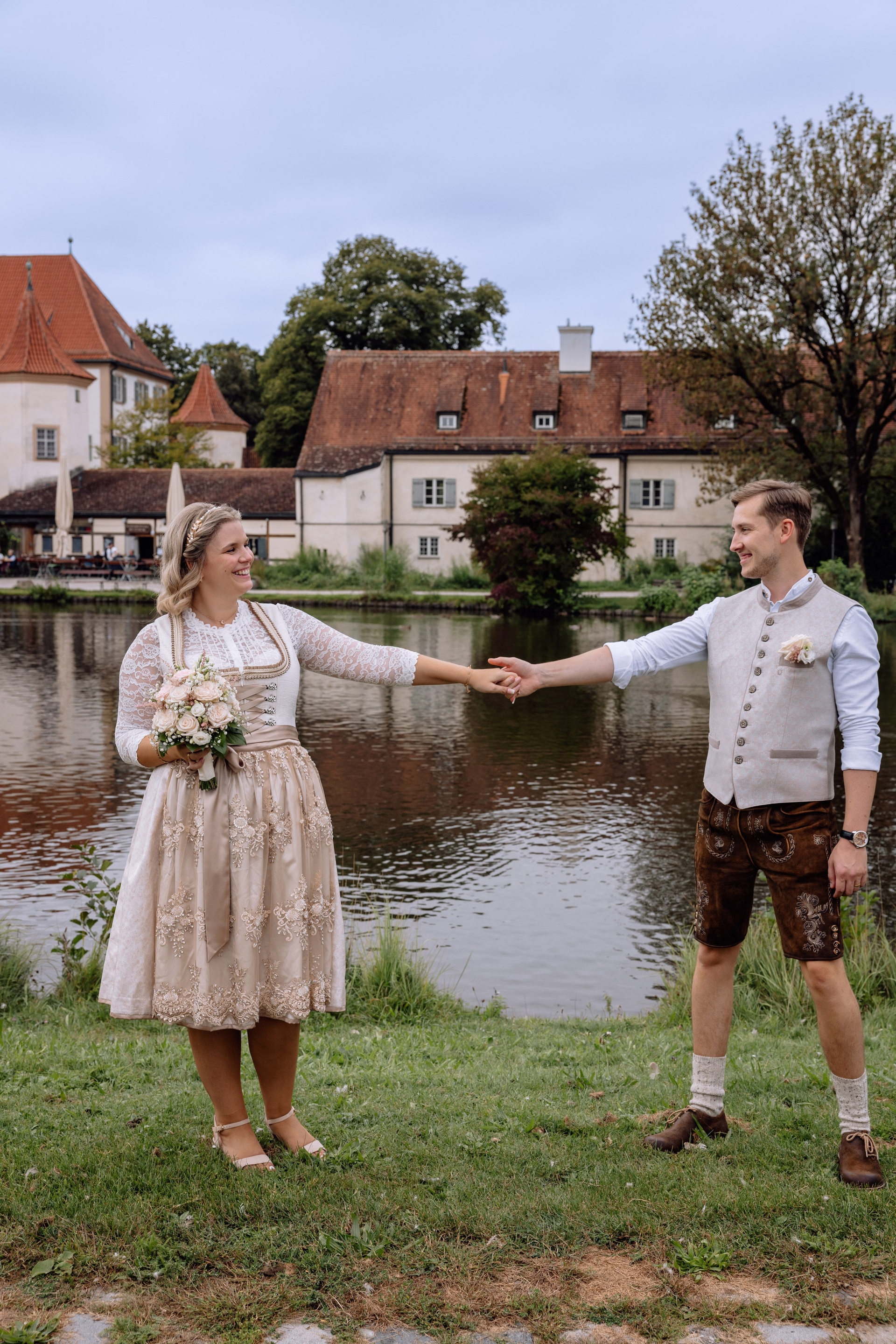 Für das anschließende Paarfotoshooting entschieden wir uns für das nahegelegene Schloss Blutenburg – eine traumhafte Location, ruhig im Grünen gelegen. Die historische Kulisse, die kleine Brücke, der See und die verwunschenen Wege rund um das Schloss bieten unzählige Möglichkeiten für malerische, romantische Aufnahmen.