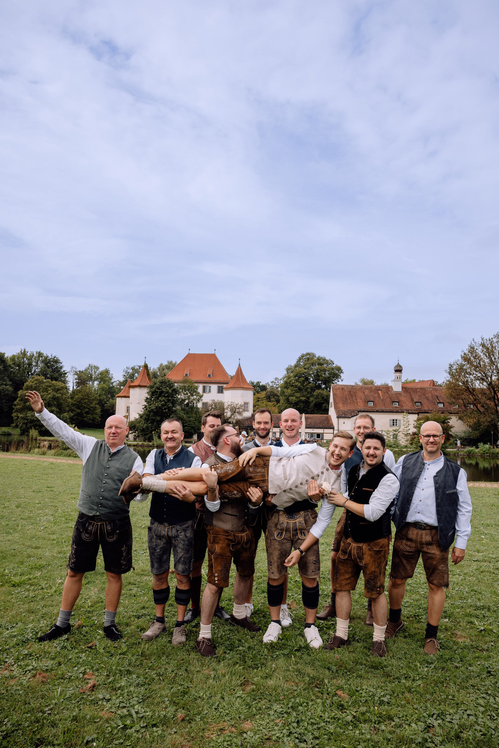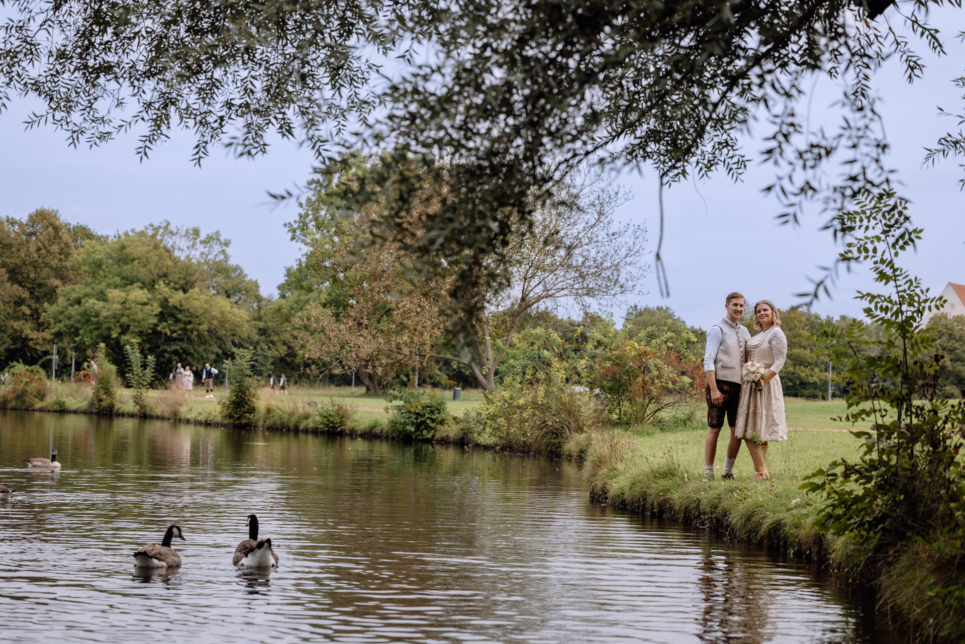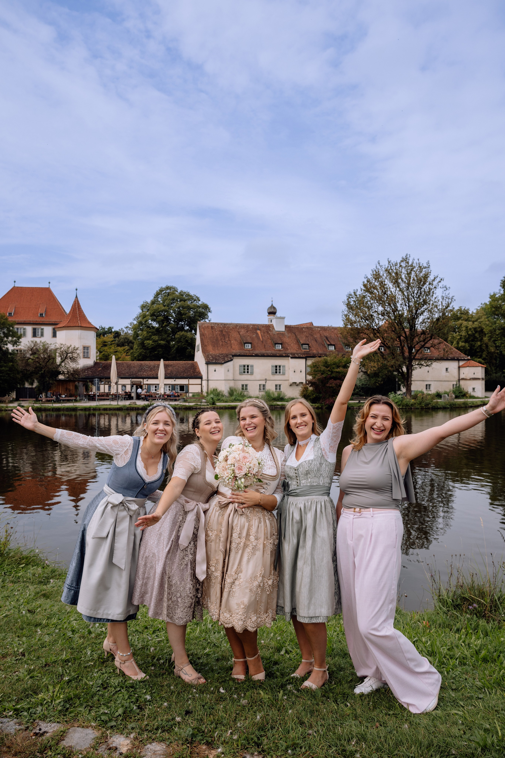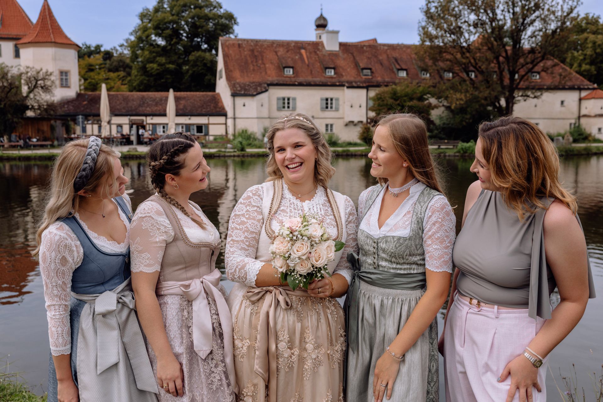 Für das anschließende Paarfotoshooting entschieden wir uns für das nahegelegene Schloss Blutenburg – eine traumhafte Location, ruhig im Grünen gelegen. Die historische Kulisse, die kleine Brücke, der See und die verwunschenen Wege rund um das Schloss bieten unzählige Möglichkeiten für malerische, romantische Aufnahmen.