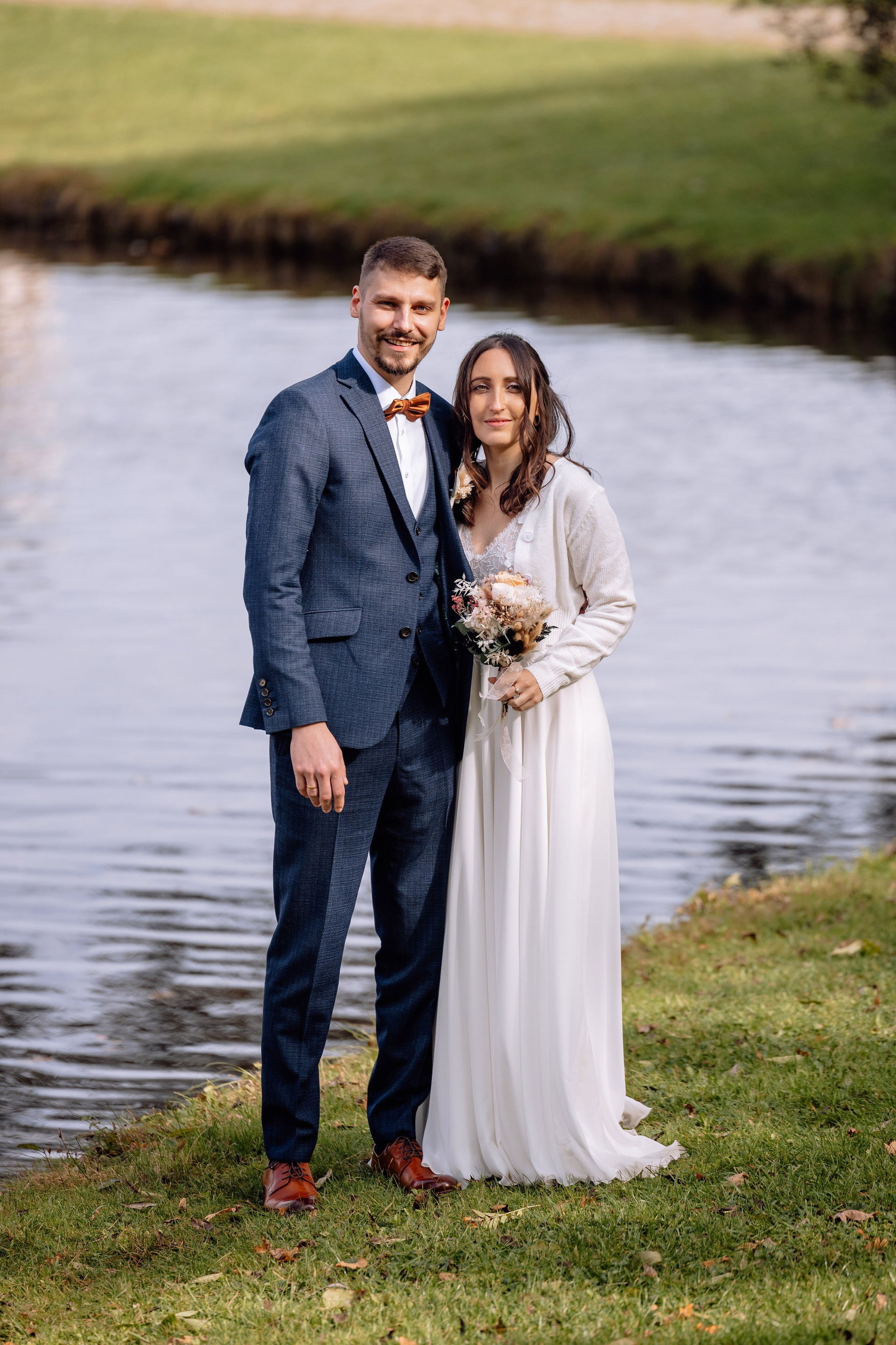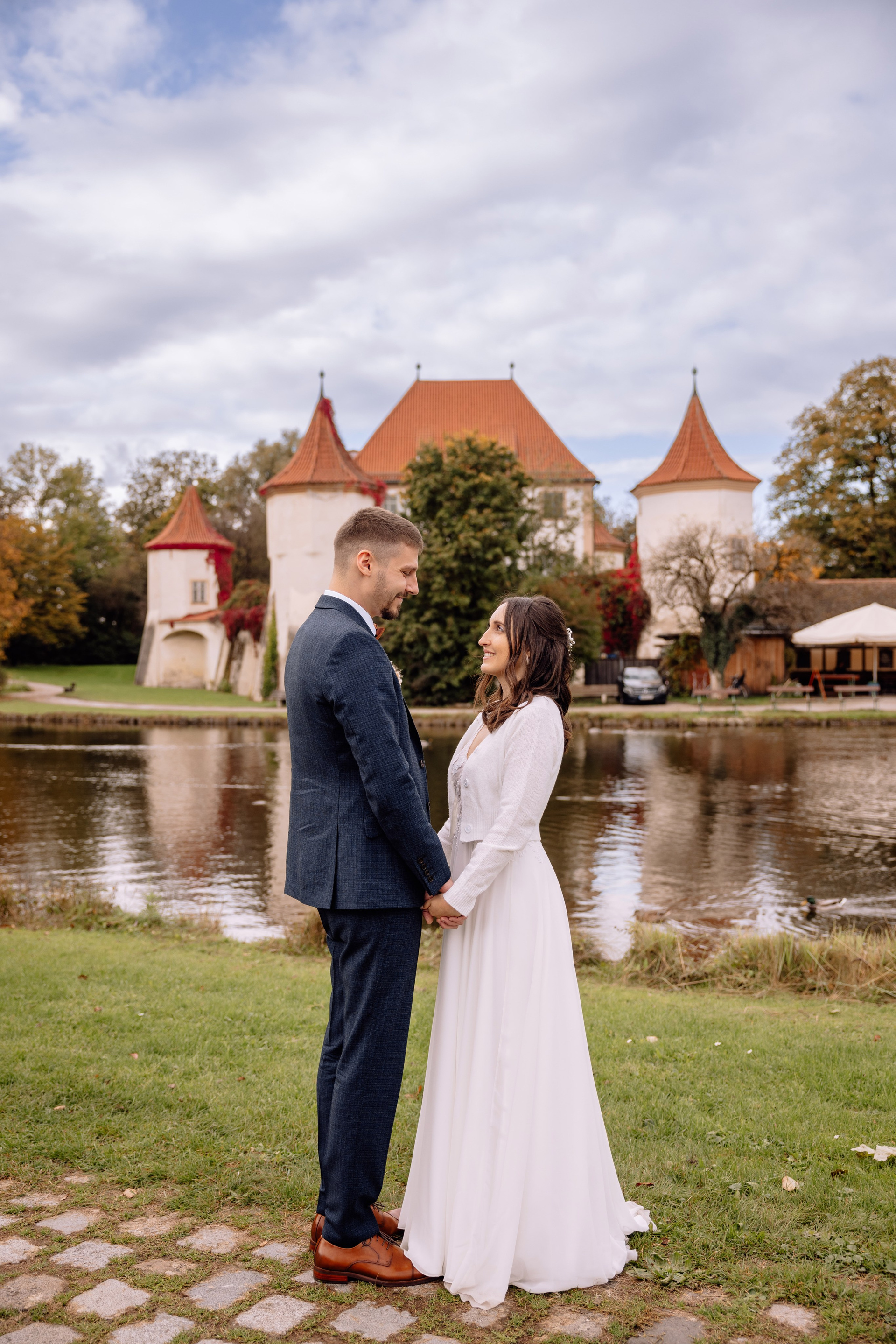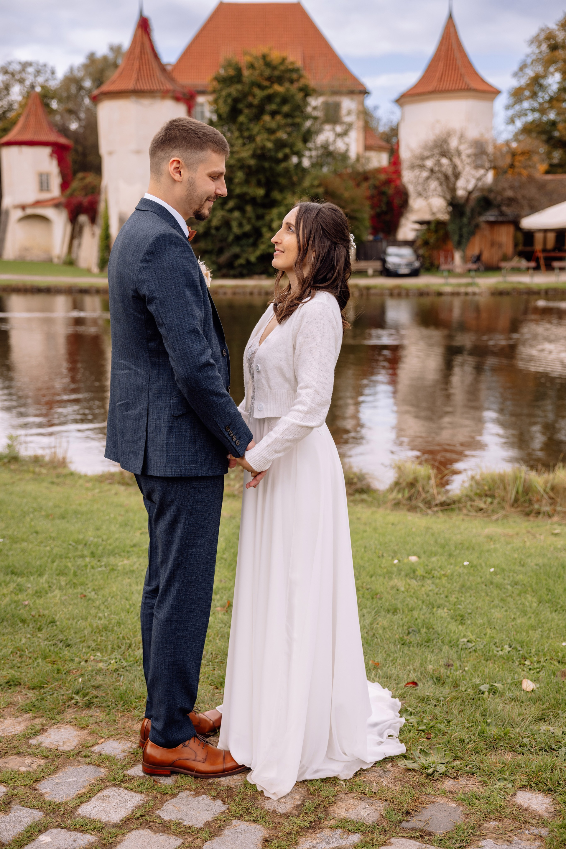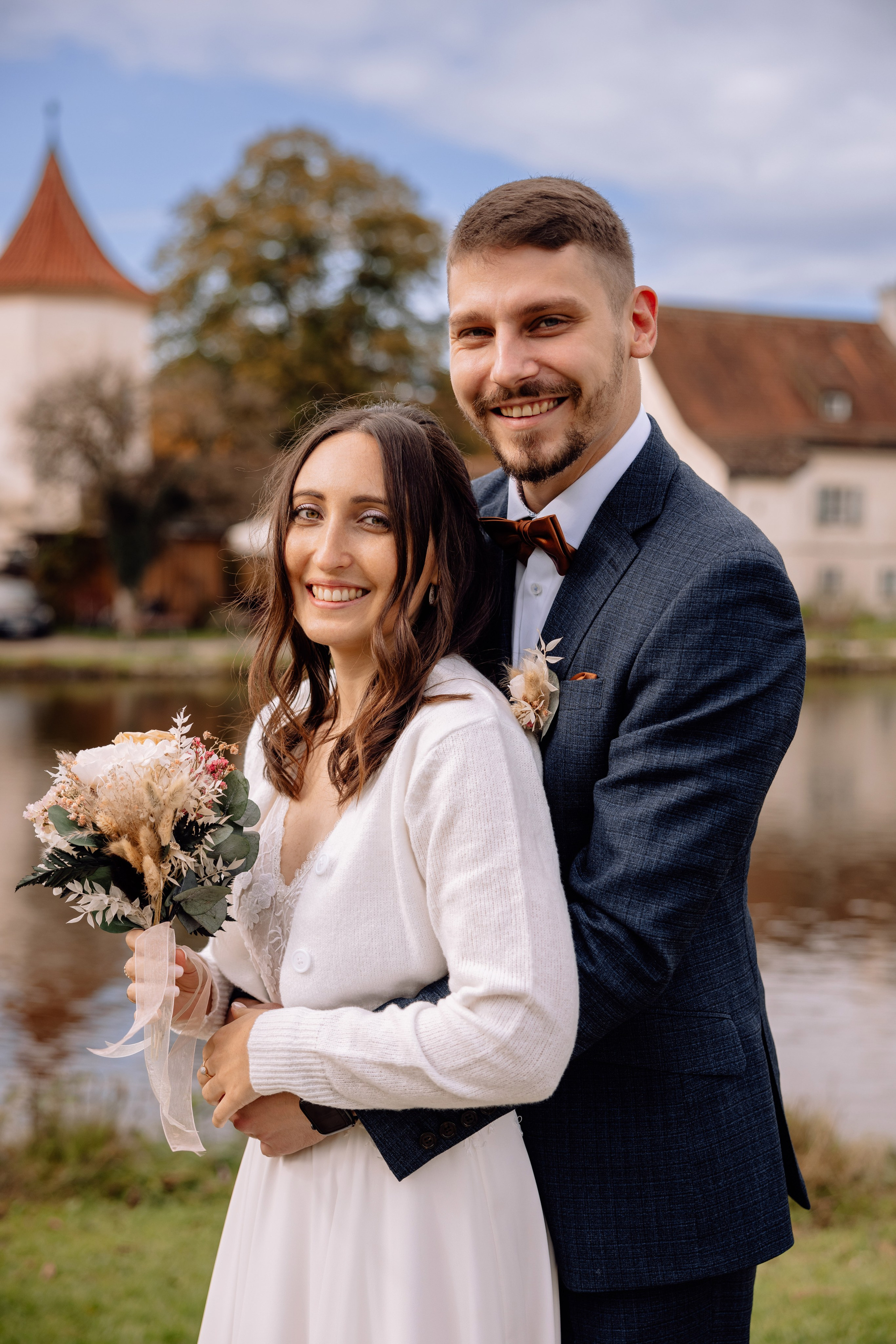Nach der standesamtlichen Trauung ging es weiter zum Schloss Blutenburg. Dort entstand eine romantische Paarfotografie am See mit dem malerischen Schloss im Hintergrund. Das natürliche Licht war perfekt, weich und stimmungsvoll, sodass jede Aufnahme die besondere Verbindung und die Schönheit dieses Tages einfing.