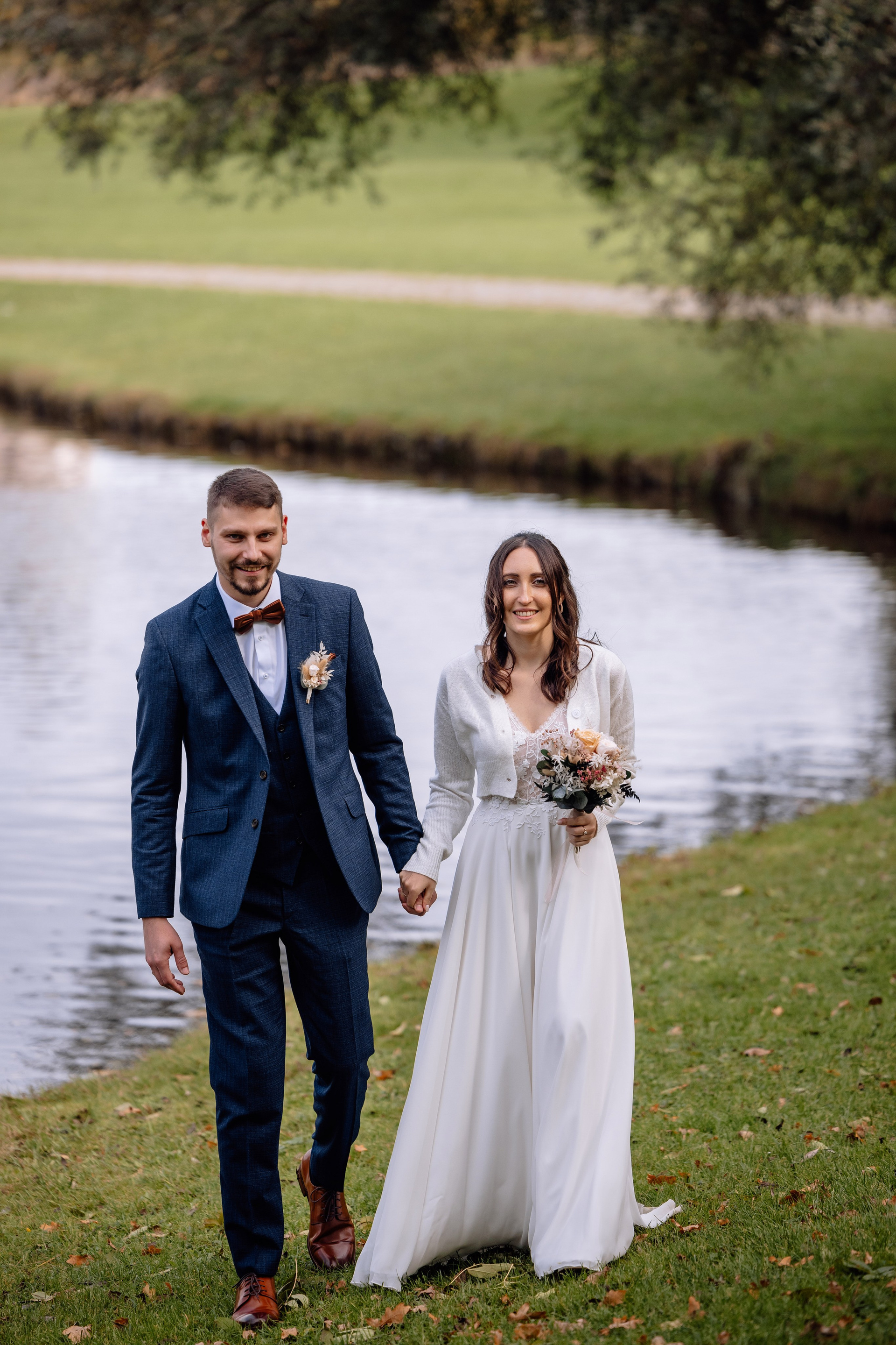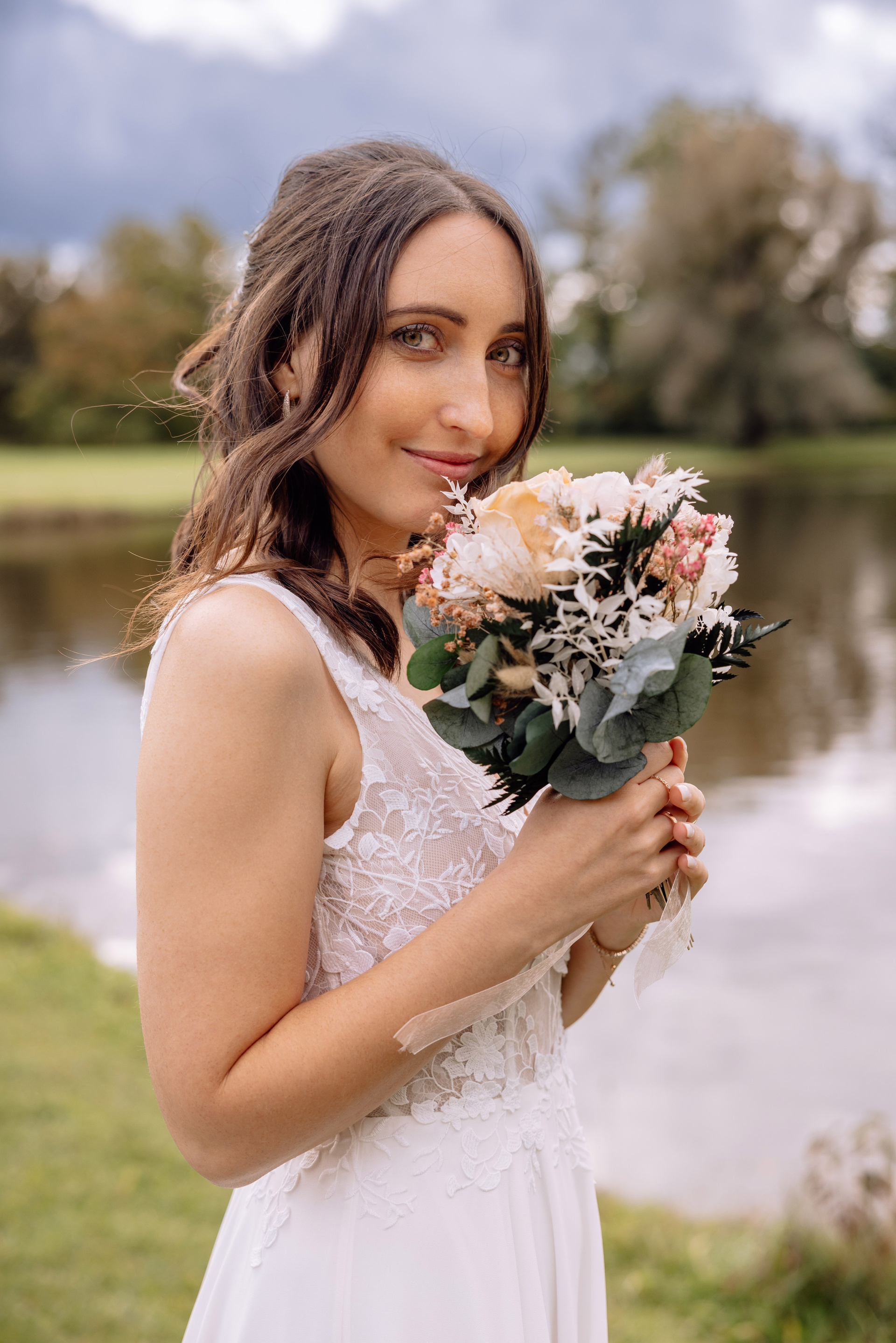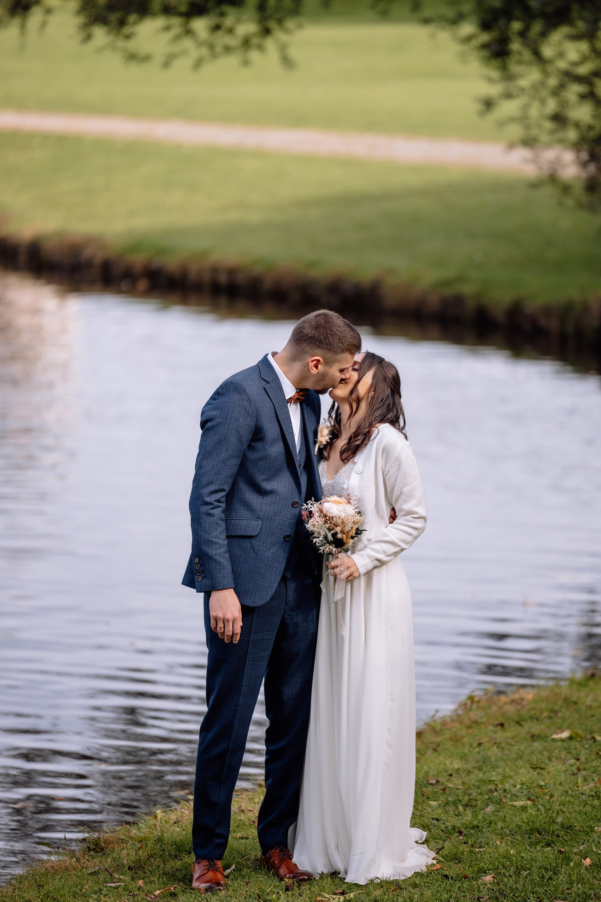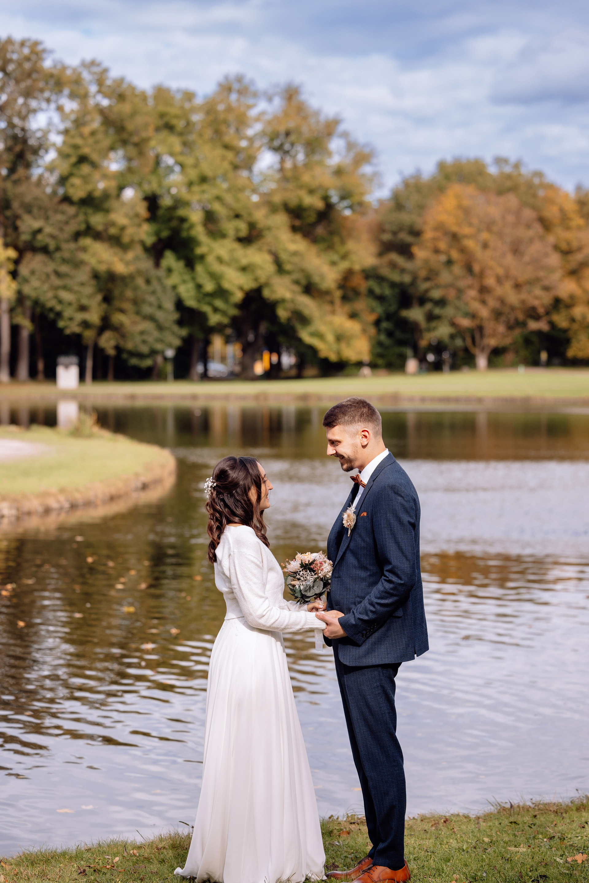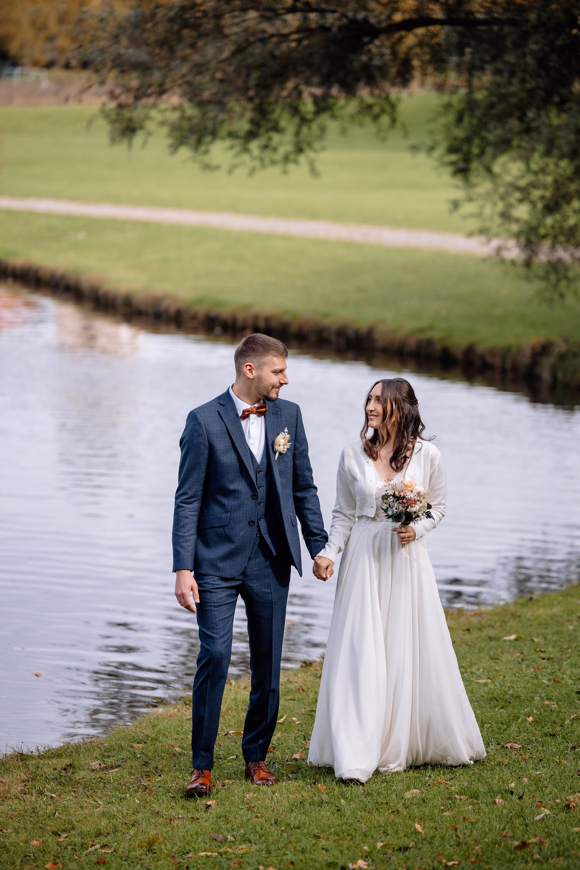 Nach der standesamtlichen Trauung ging es weiter zum Schloss Blutenburg. Dort entstand eine romantische Paarfotografie am See mit dem malerischen Schloss im Hintergrund. Das natürliche Licht war perfekt, weich und stimmungsvoll, sodass jede Aufnahme die besondere Verbindung und die Schönheit dieses Tages einfing.