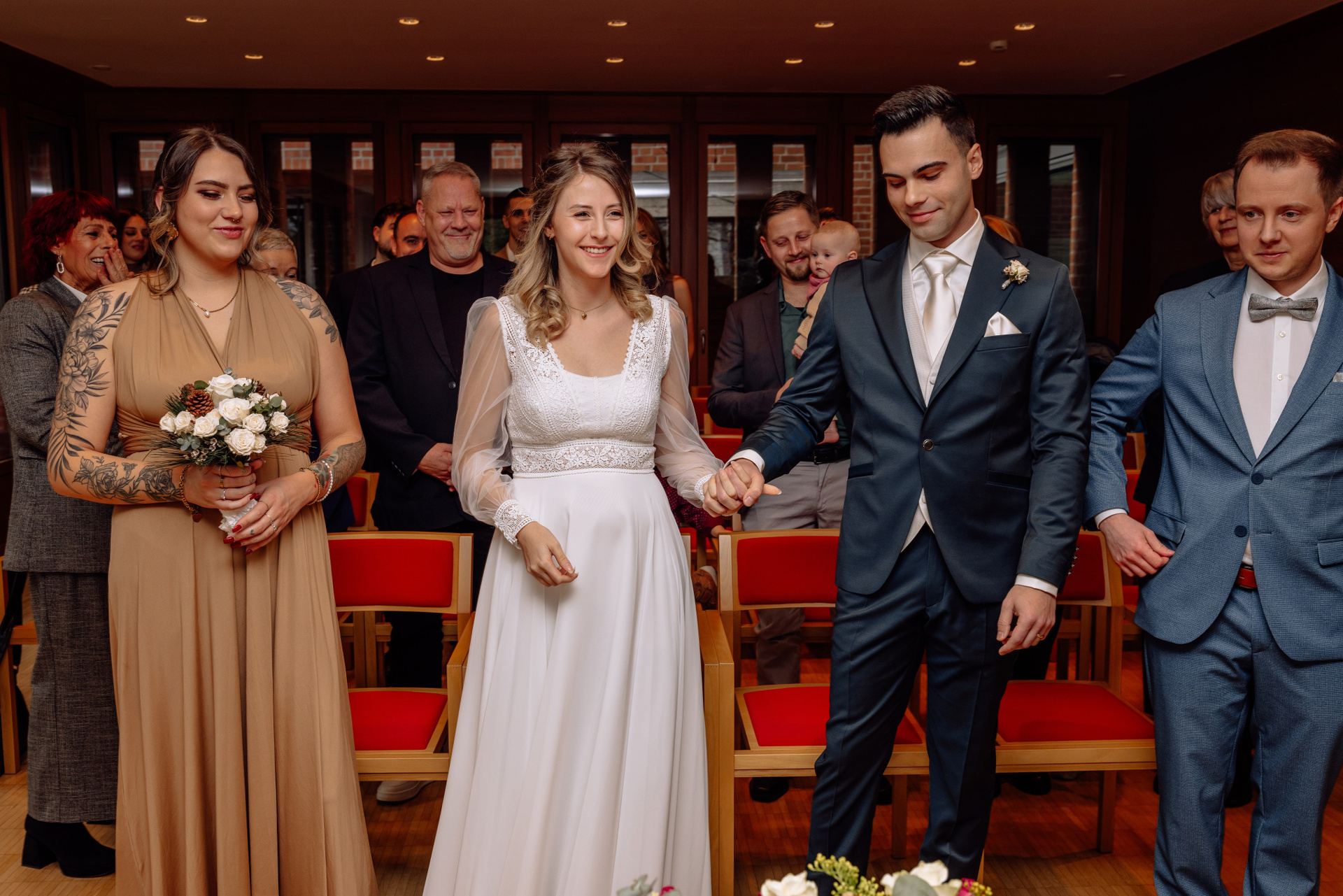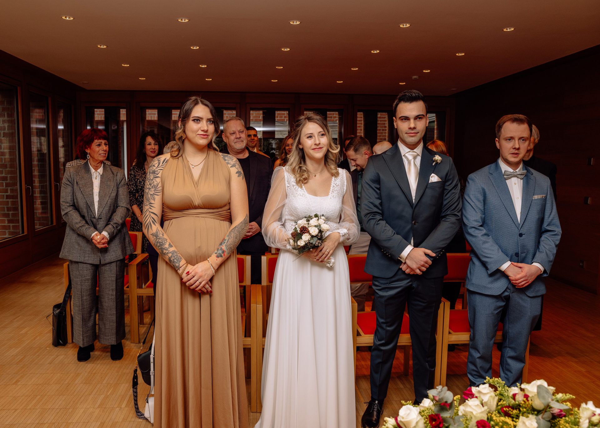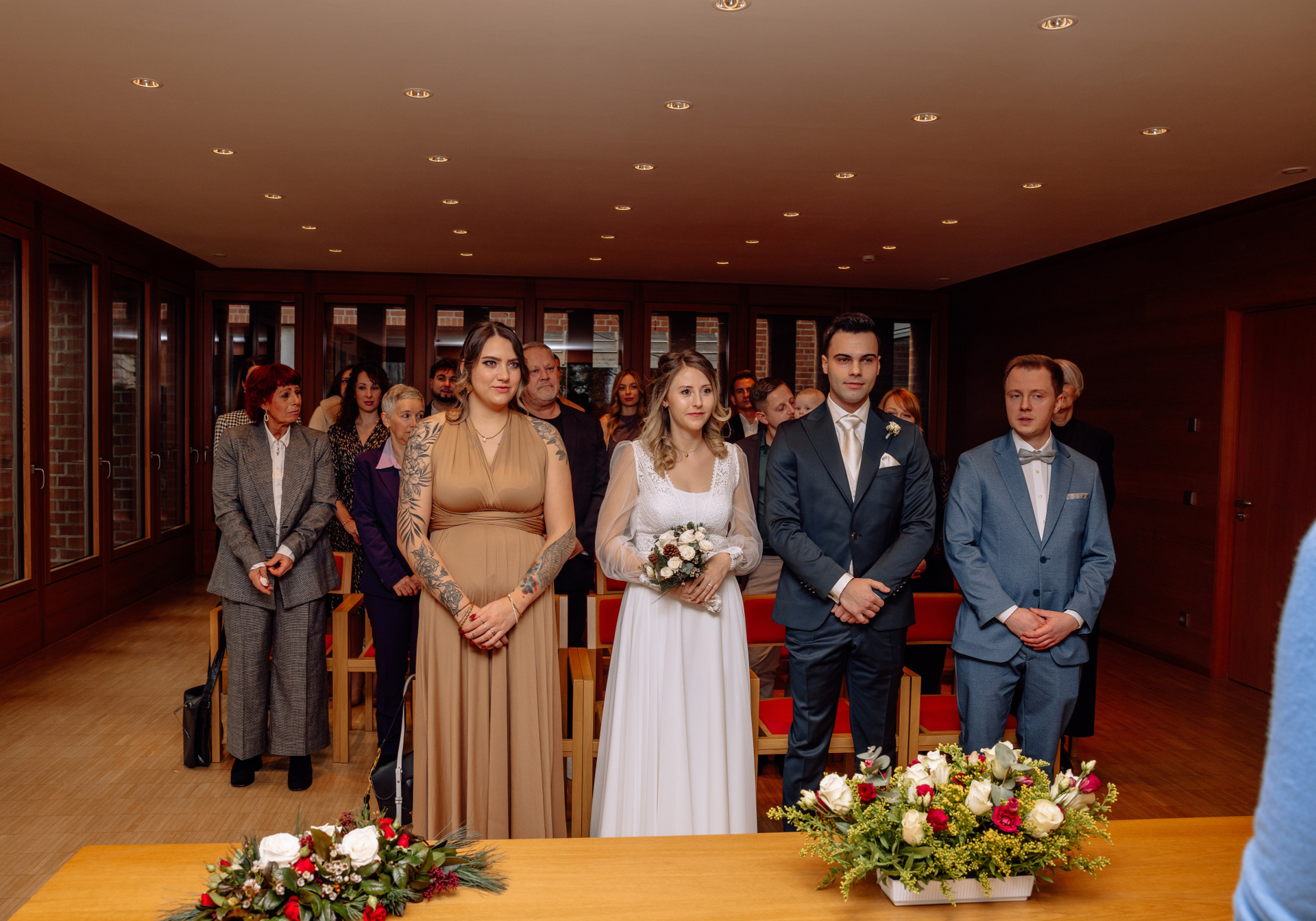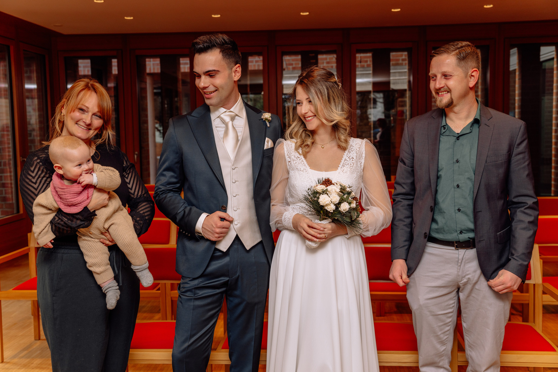 Diese Trauung war klein, aber voller Nähe. In einem charmanten, ruhigen Standesamt gaben sich zwei Menschen das Ja-Wort – umgeben von ihren engsten Herzensmenschen.