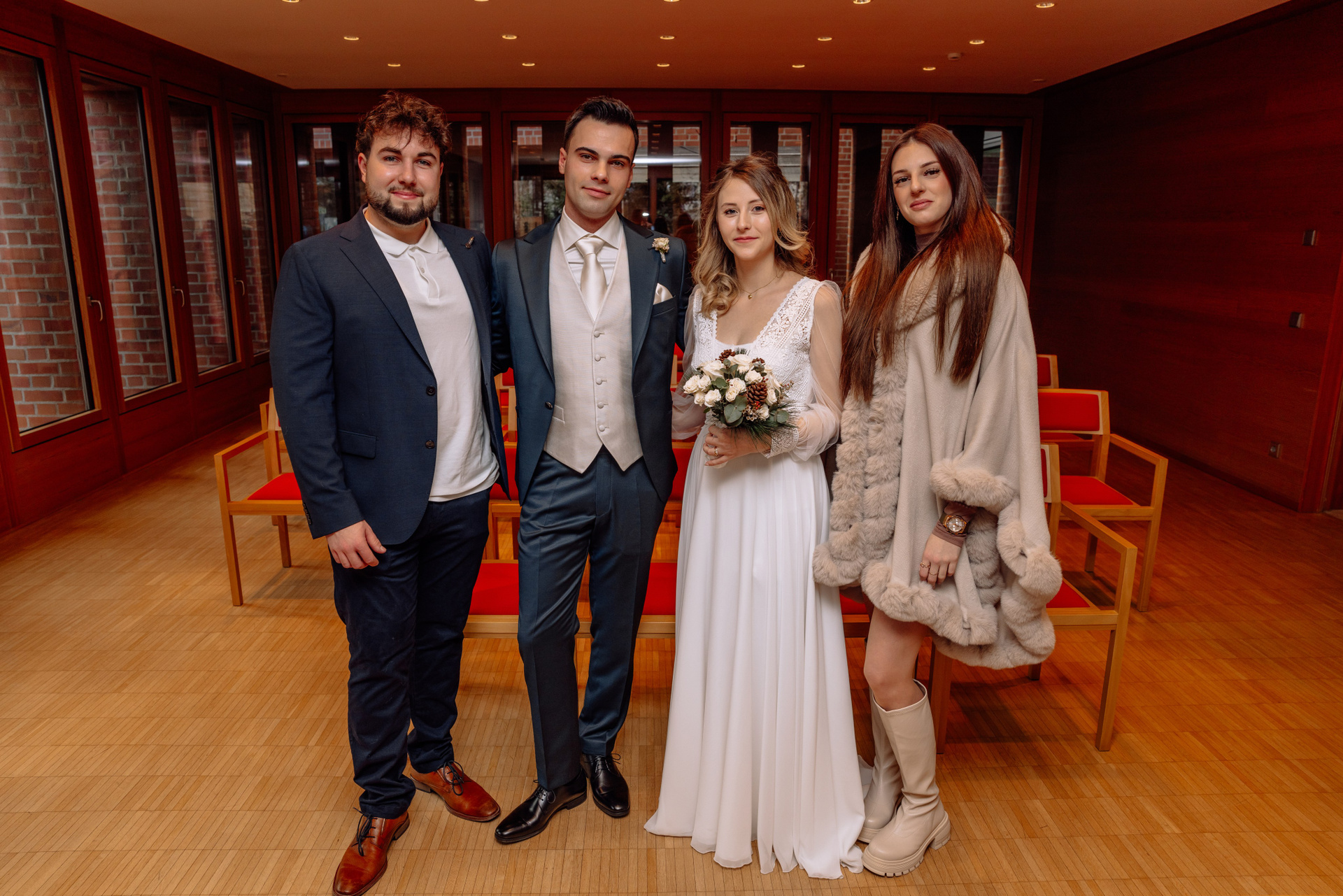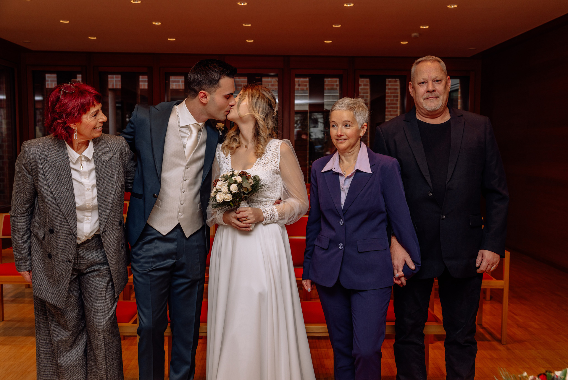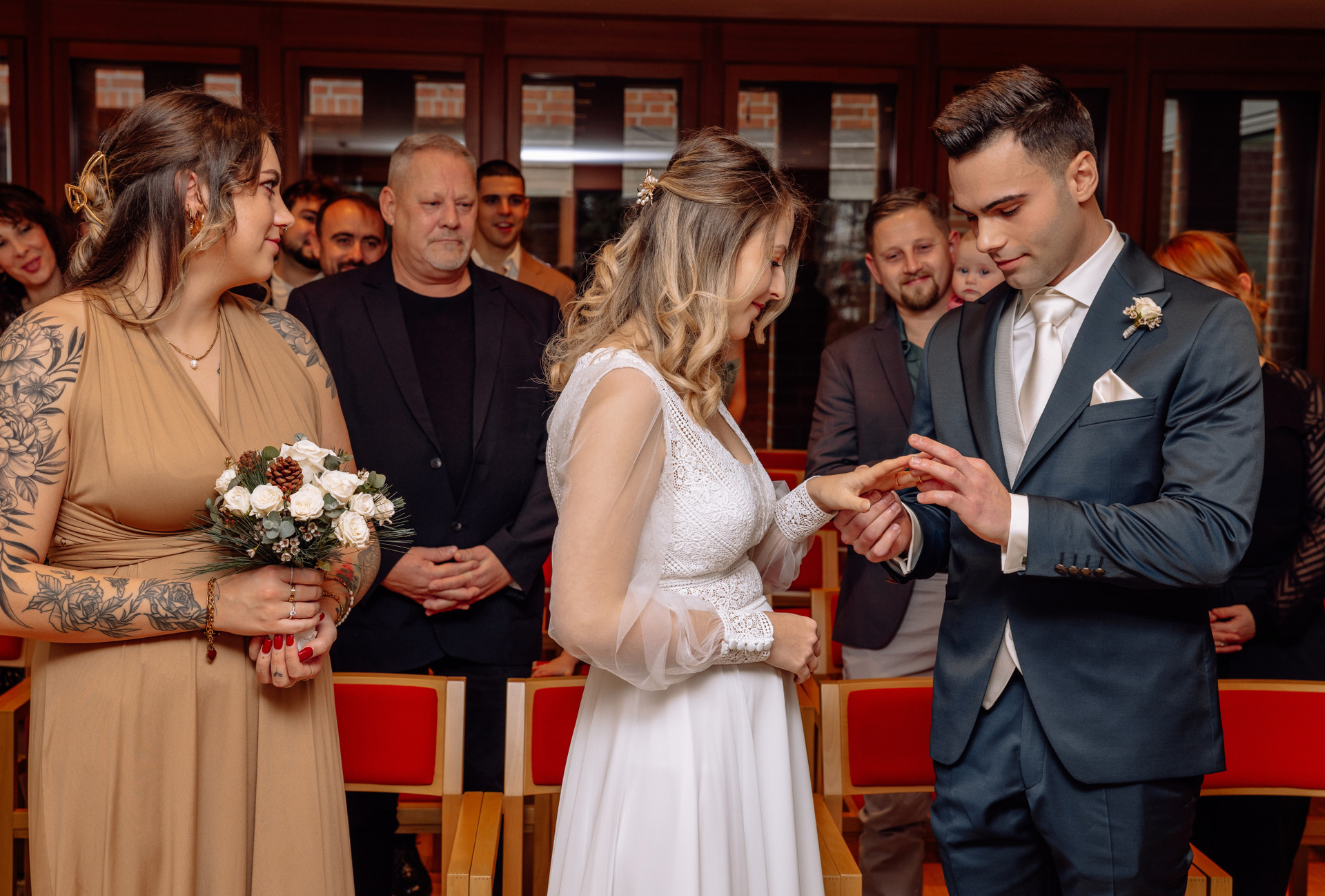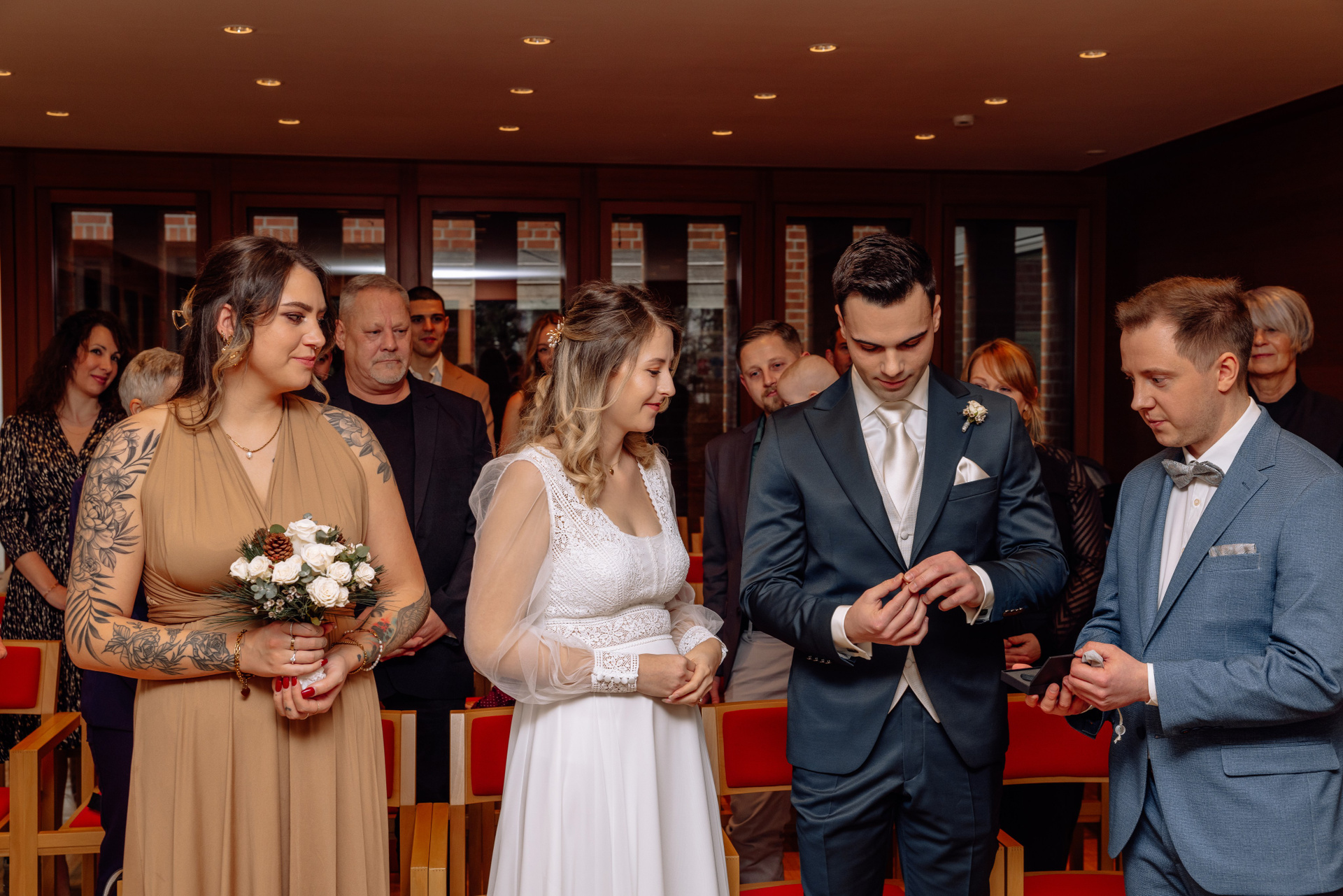 Diese Trauung war klein, aber voller Nähe. In einem charmanten, ruhigen Standesamt gaben sich zwei Menschen das Ja-Wort – umgeben von ihren engsten Herzensmenschen.
