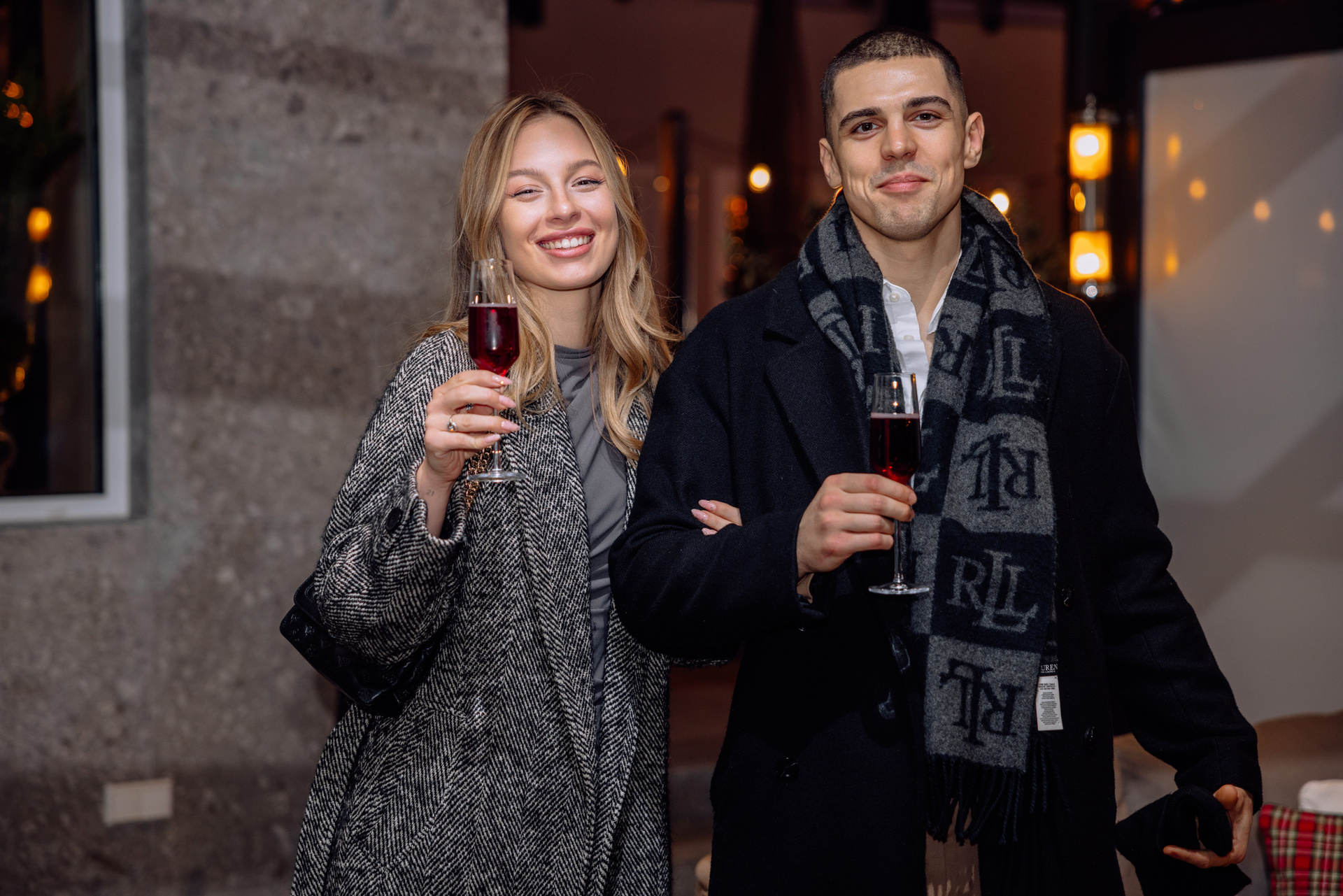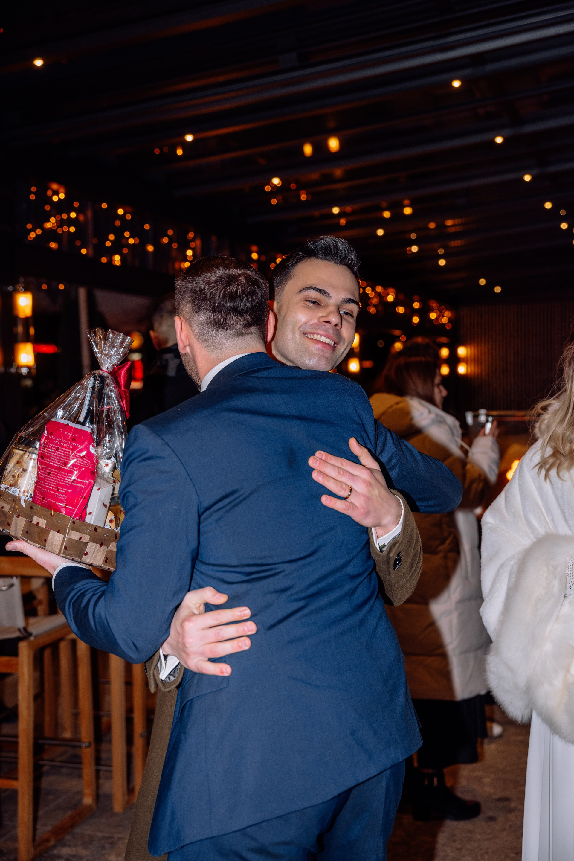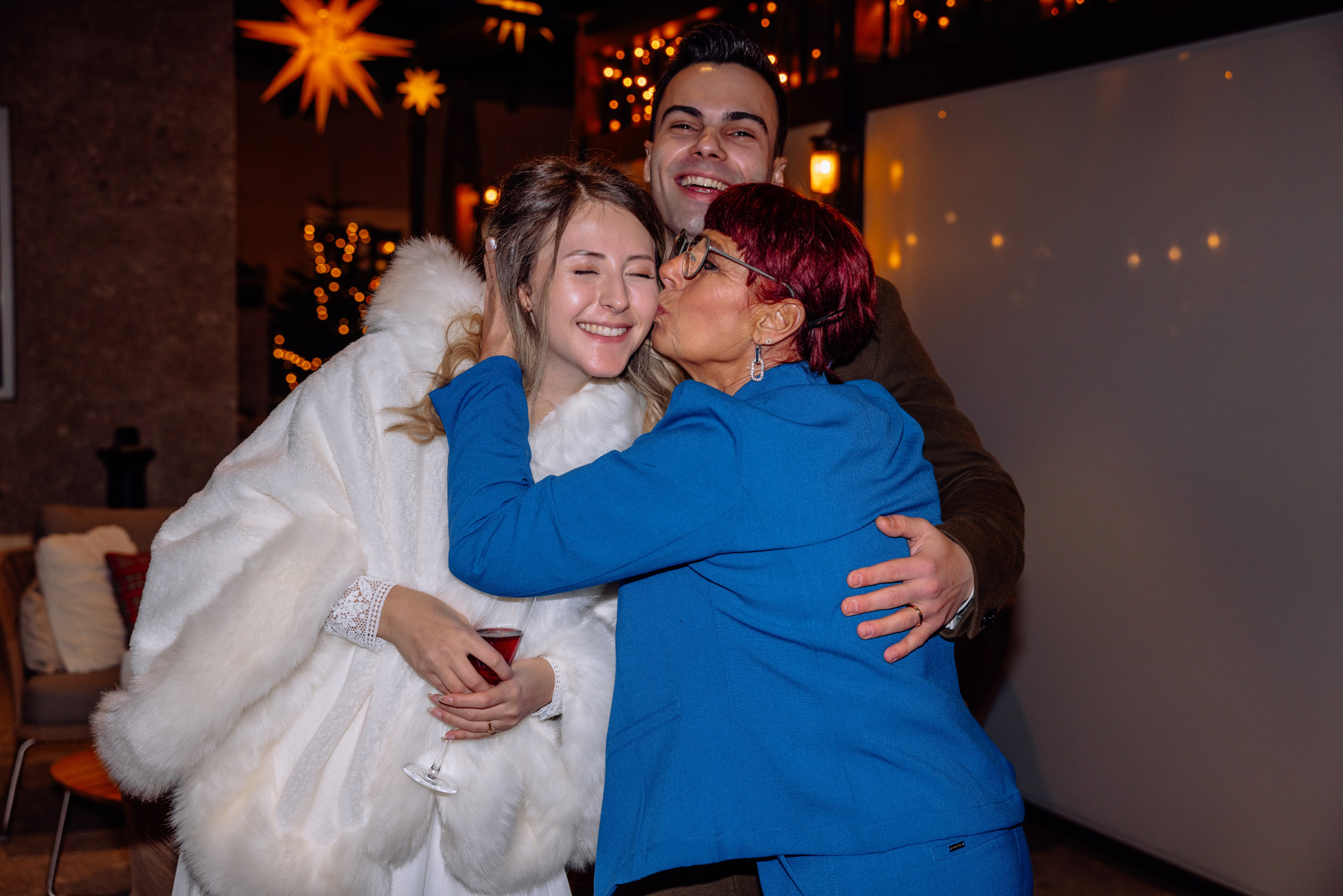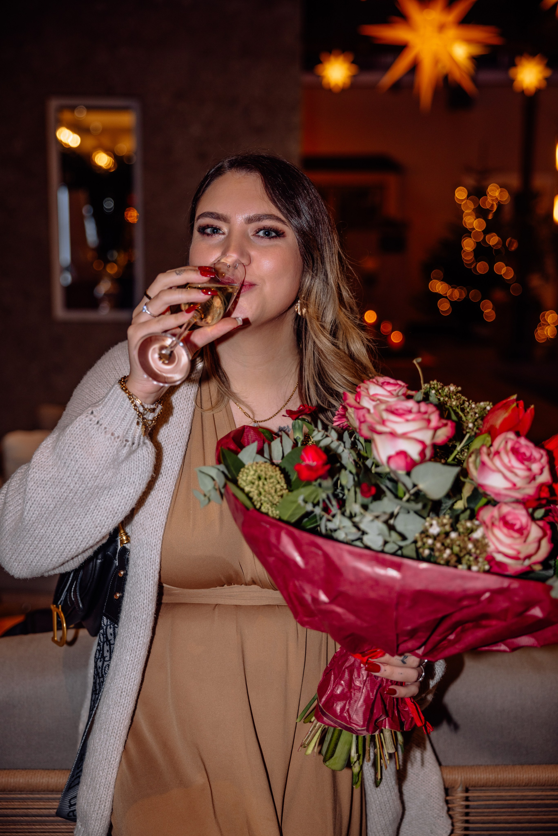 In einem liebevoll gestalteten Raum kamen Familie und Freunde zusammen, um auf das Brautpaar anzustoßen.